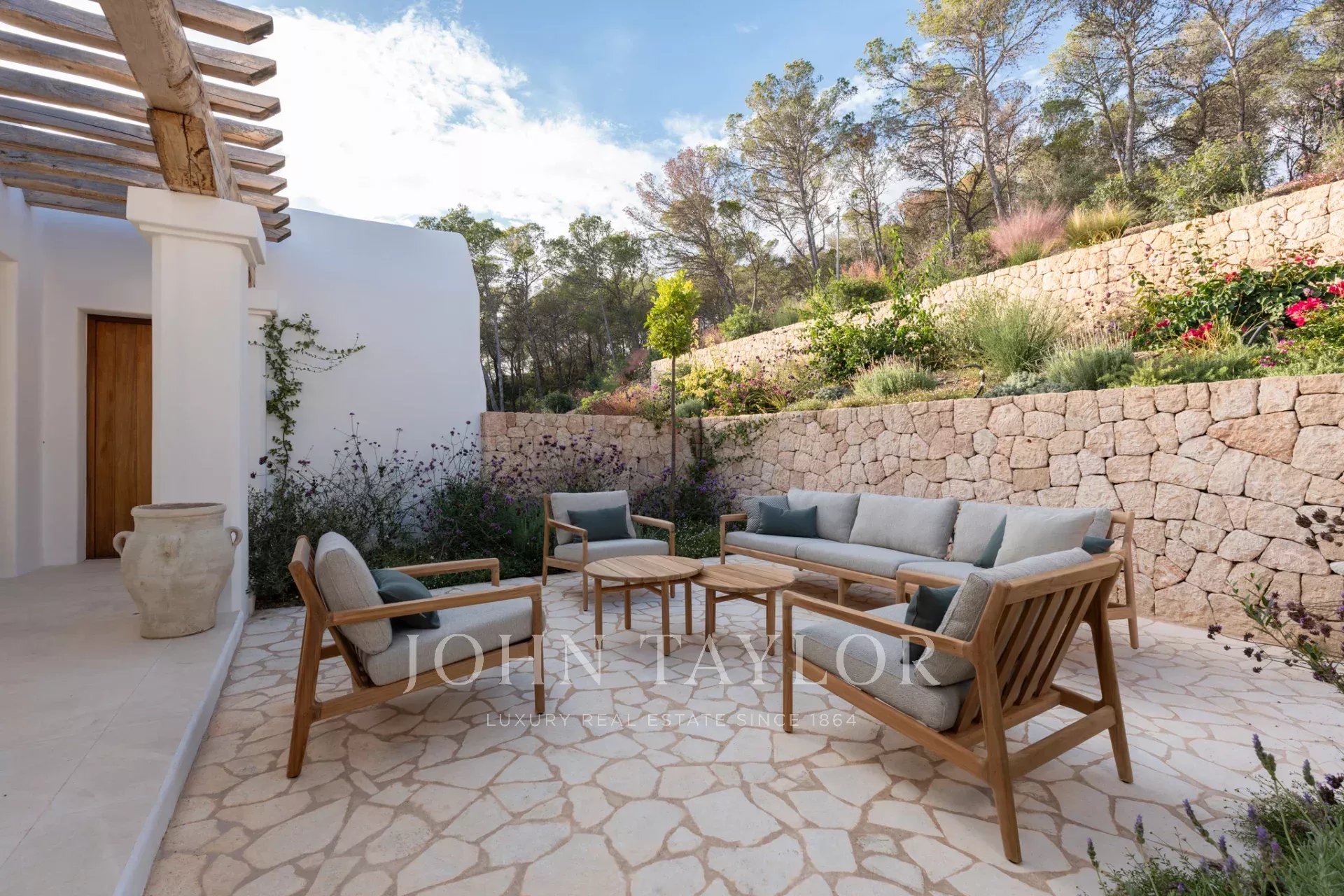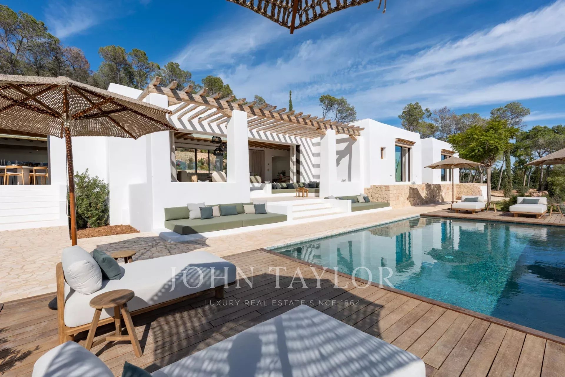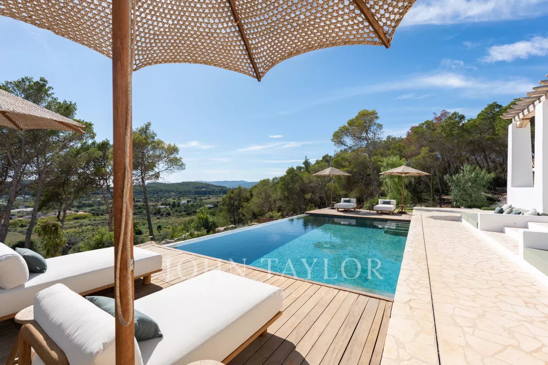 Imaginez vos journées passées à vous prélasser sous le chaud soleil d'Ibiza au bord d'une piscine privée de 70 m², entourée de jardins luxuriants et soigneusement aménagés. Ce sanctuaire est entièrement meublé, avec une sélection de meubles alliant l'élégance moderne à l'essence méditerranéenne.