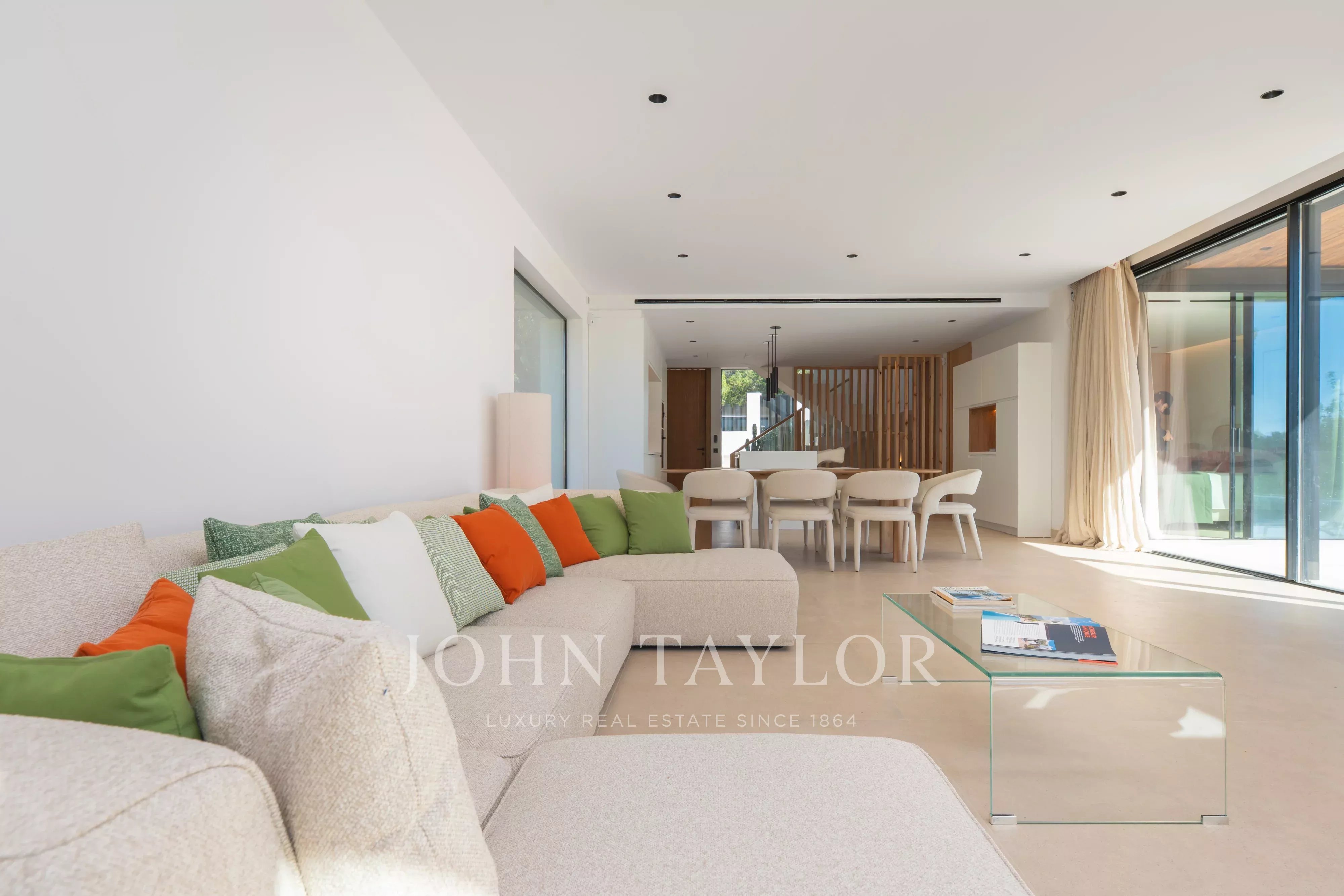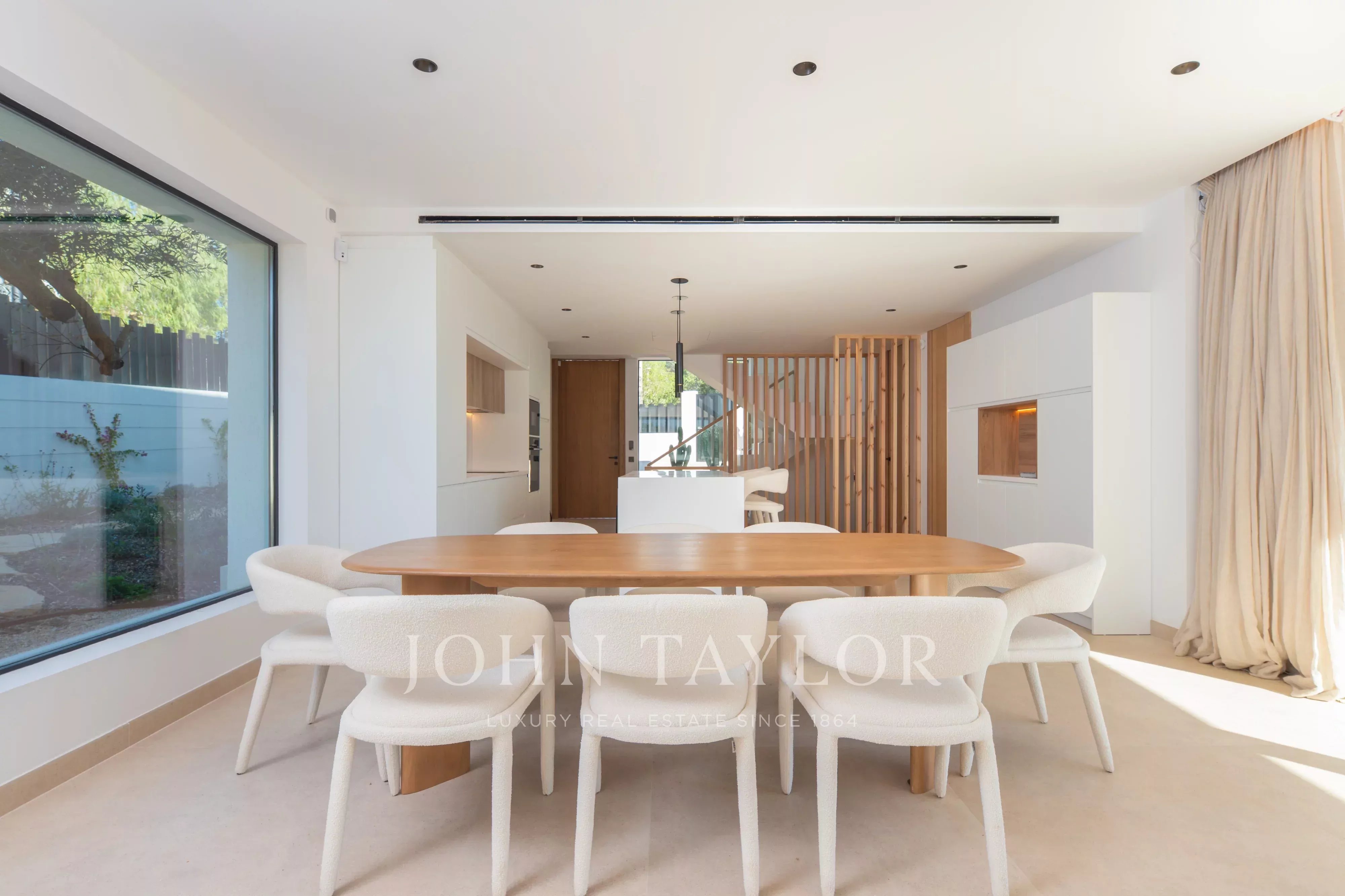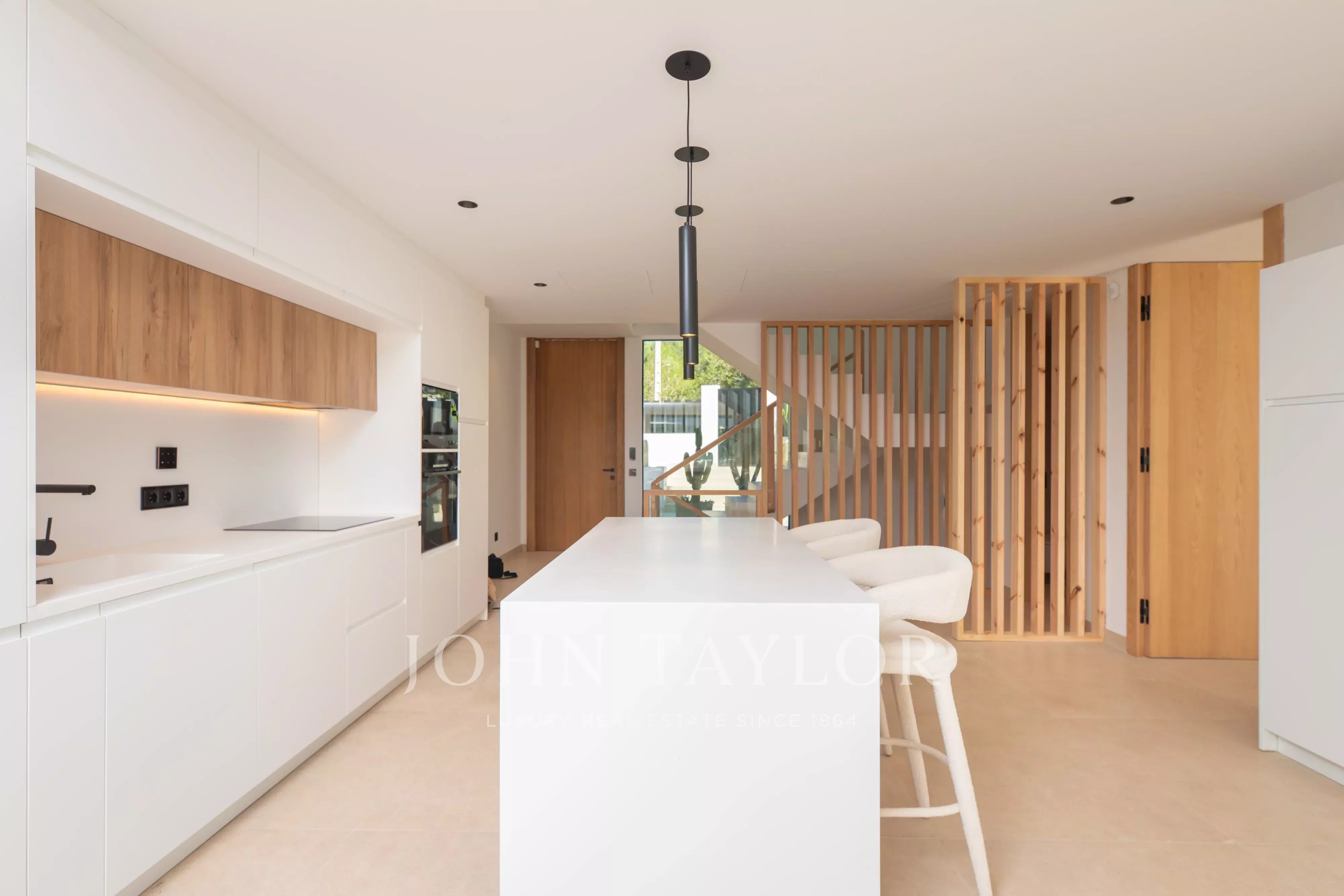 Située dans le quartier paisible de Cala Llenya, cette élégante villa à vendre allie design contemporain, volumes généreux et connexion avec la nature, à seulement quelques minutes de la mer et entourée de paysage méditerranéen.