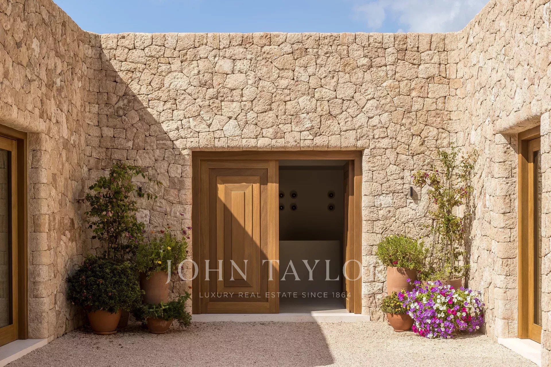 À quelques pas de Cala Mastella et à proximité du village traditionnel de San Carlos, cette maison est située sur un grand terrain avec une vue lointaine sur la mer. La propriété est en parfaite harmonie avec le paysage environnant. La manière dont la maison a été construite, mêlant design et architecture traditionnels avec une subtile touche contemporaine, est unique.