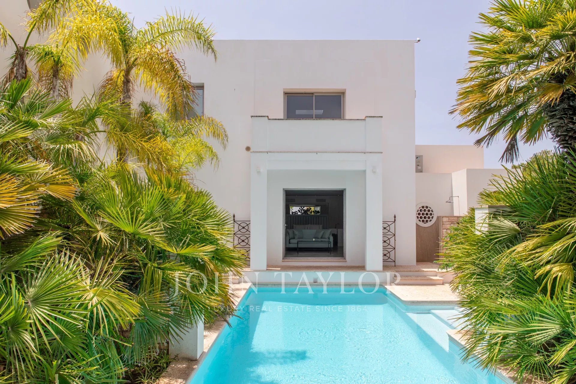 L'intérieur comprend un grand salon panoramique, des espaces de vie élégants, deux salles à manger raffinées, une salle de télévision, une cave privée et un piano à queue. Deux cuisines entièrement équipées, l'une domestique et l'autre professionnelle, complètent cet espace. La villa principale abrite six chambres en suite avec dressings et salles de bains privatives. La suite principale bénéficie d'un accès direct à la piscine, d’un hammam et d’un dressing. Il y a également une salle de cinéma avec cuisine indépendante et une zone de service comprenant deux chambres pour le personnel