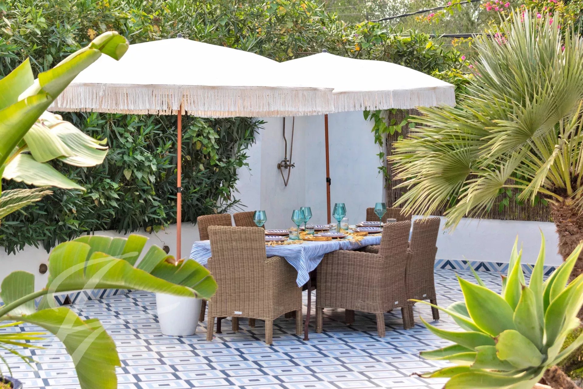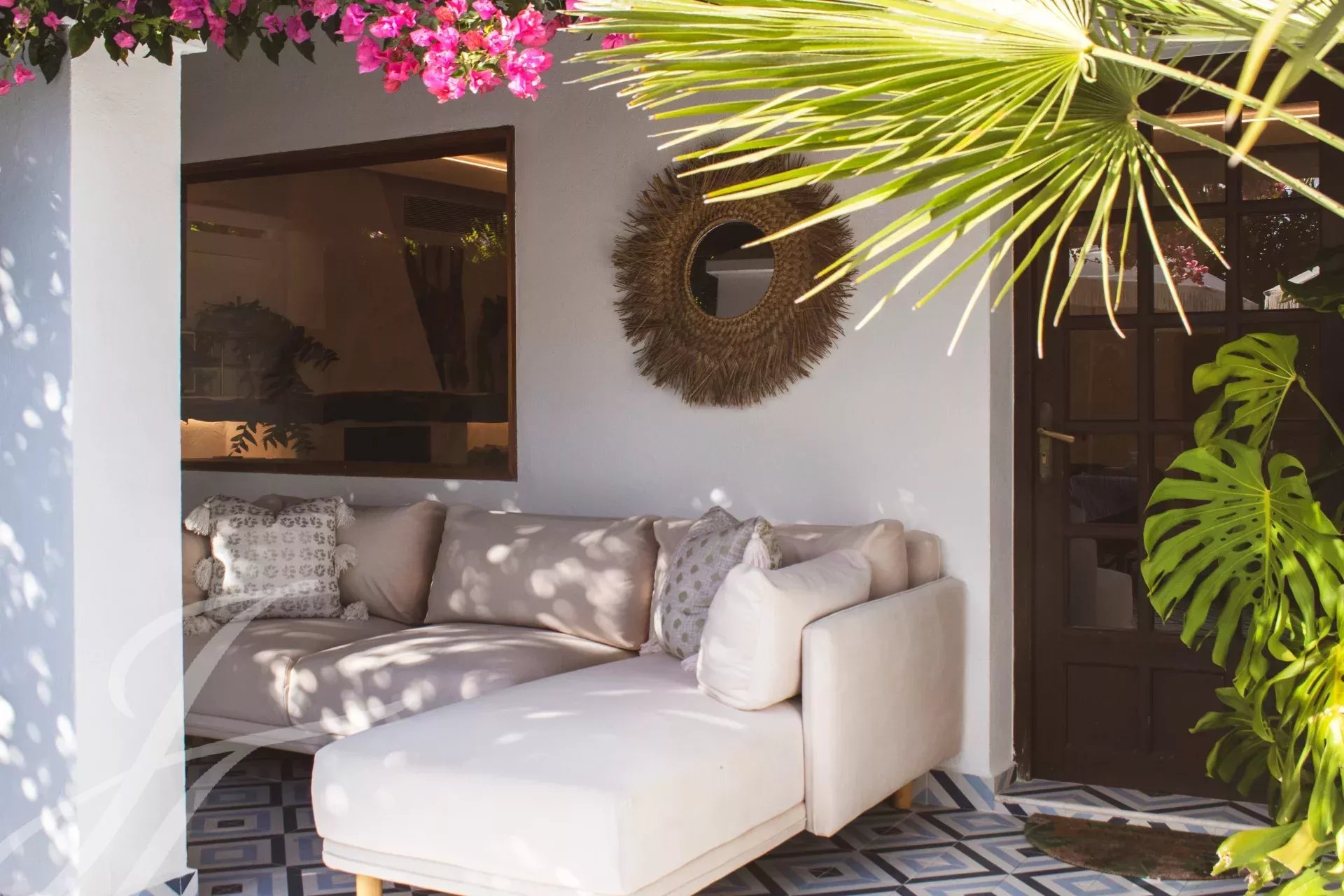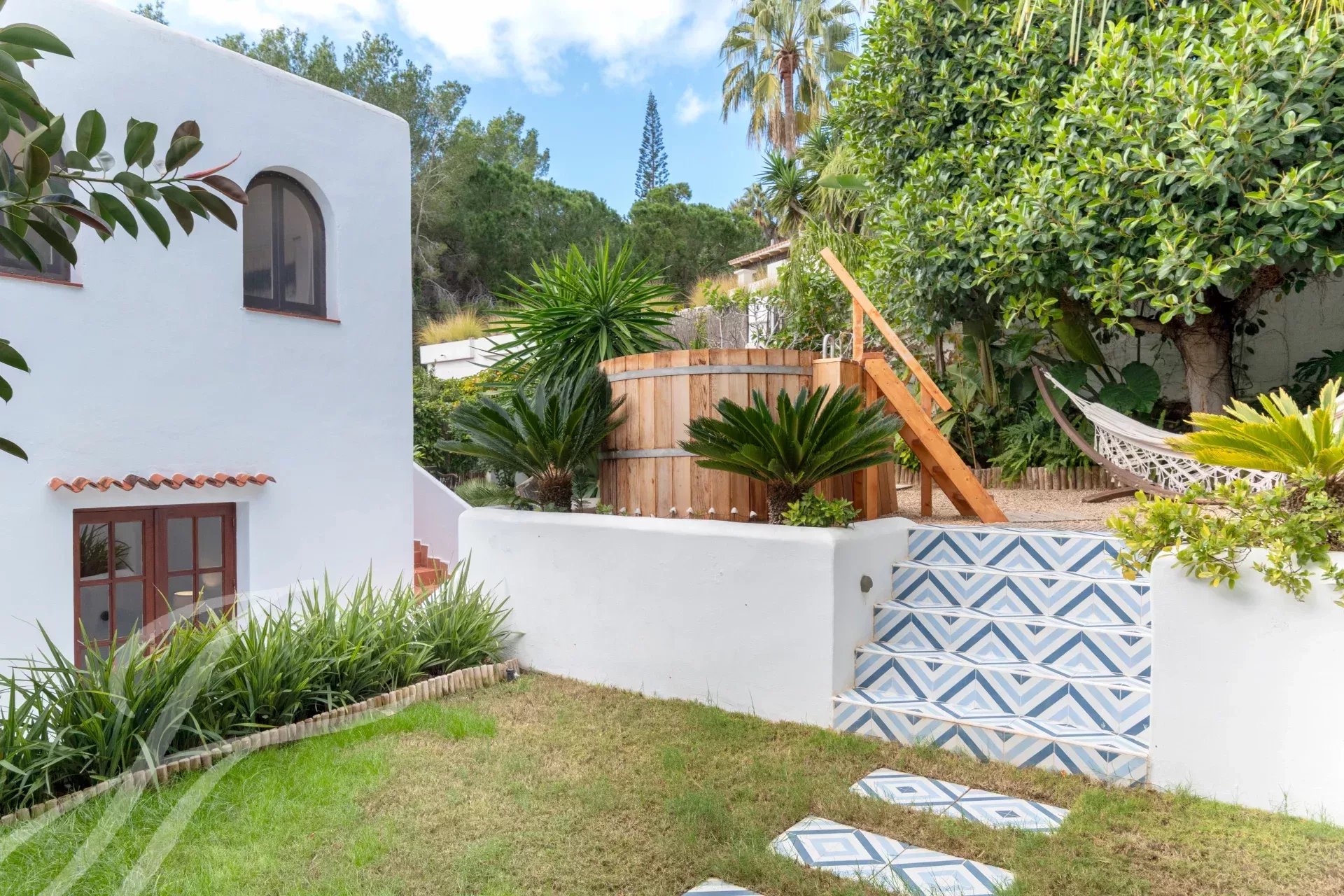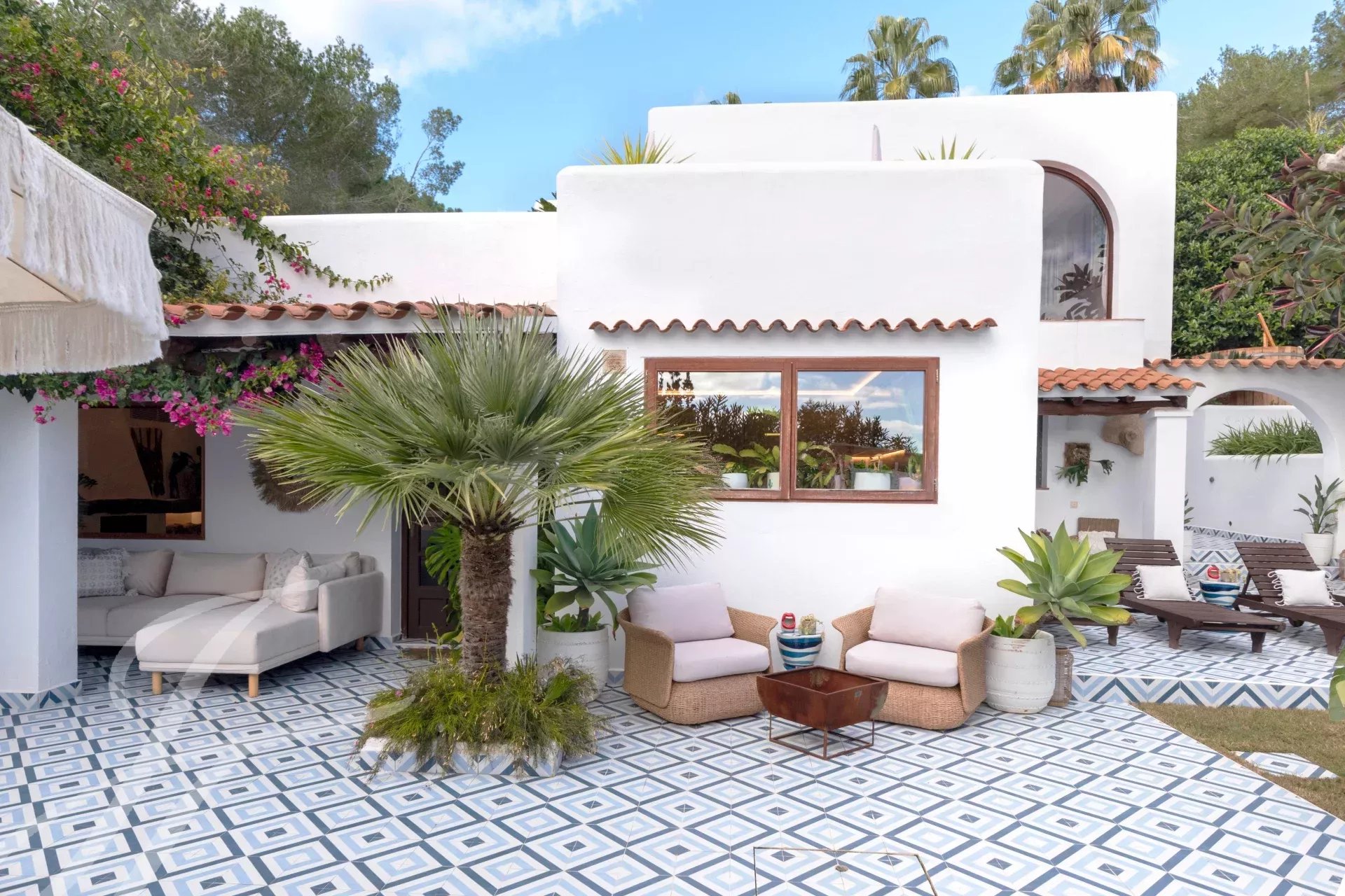 Cachée à Cala Llonga, cette propriété de 193 m² allie luxe moderne, design durable et cadre privé avec vue sur la mer. Le jardin, avec des arbres fruitiers et des terrasses tropicales, a été transformé en oasis grâce à un système d'irrigation avancé et une citerne de collecte des eaux pluviales.