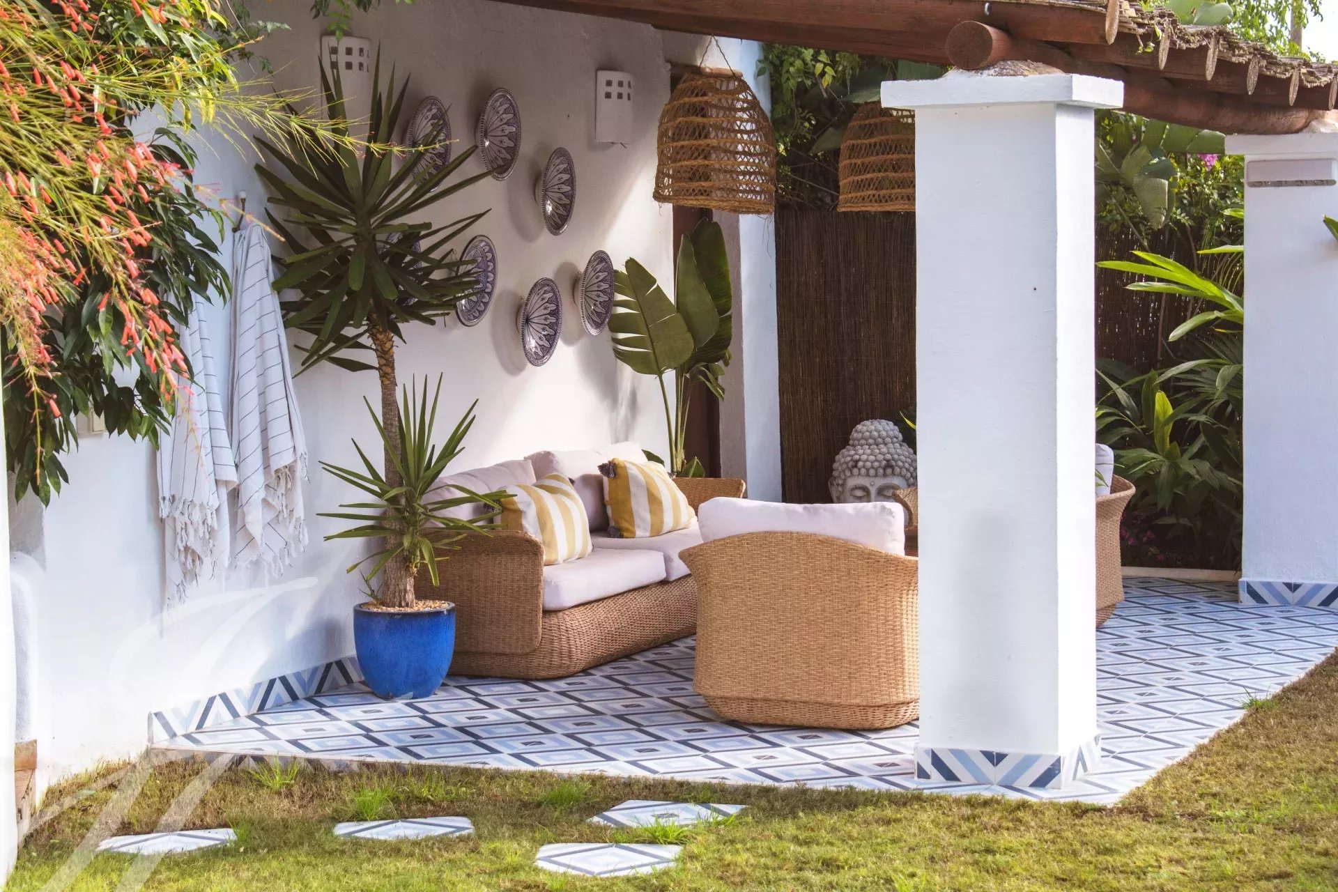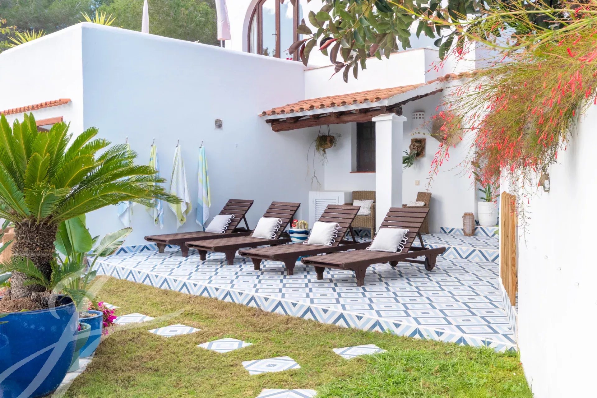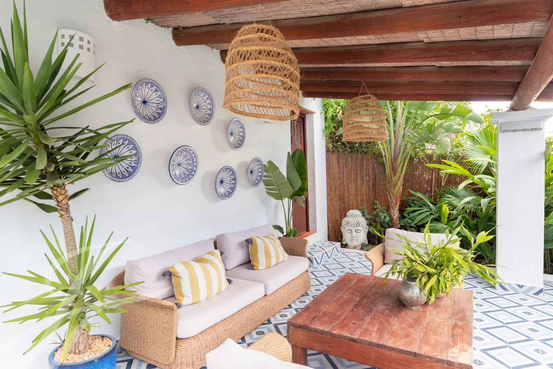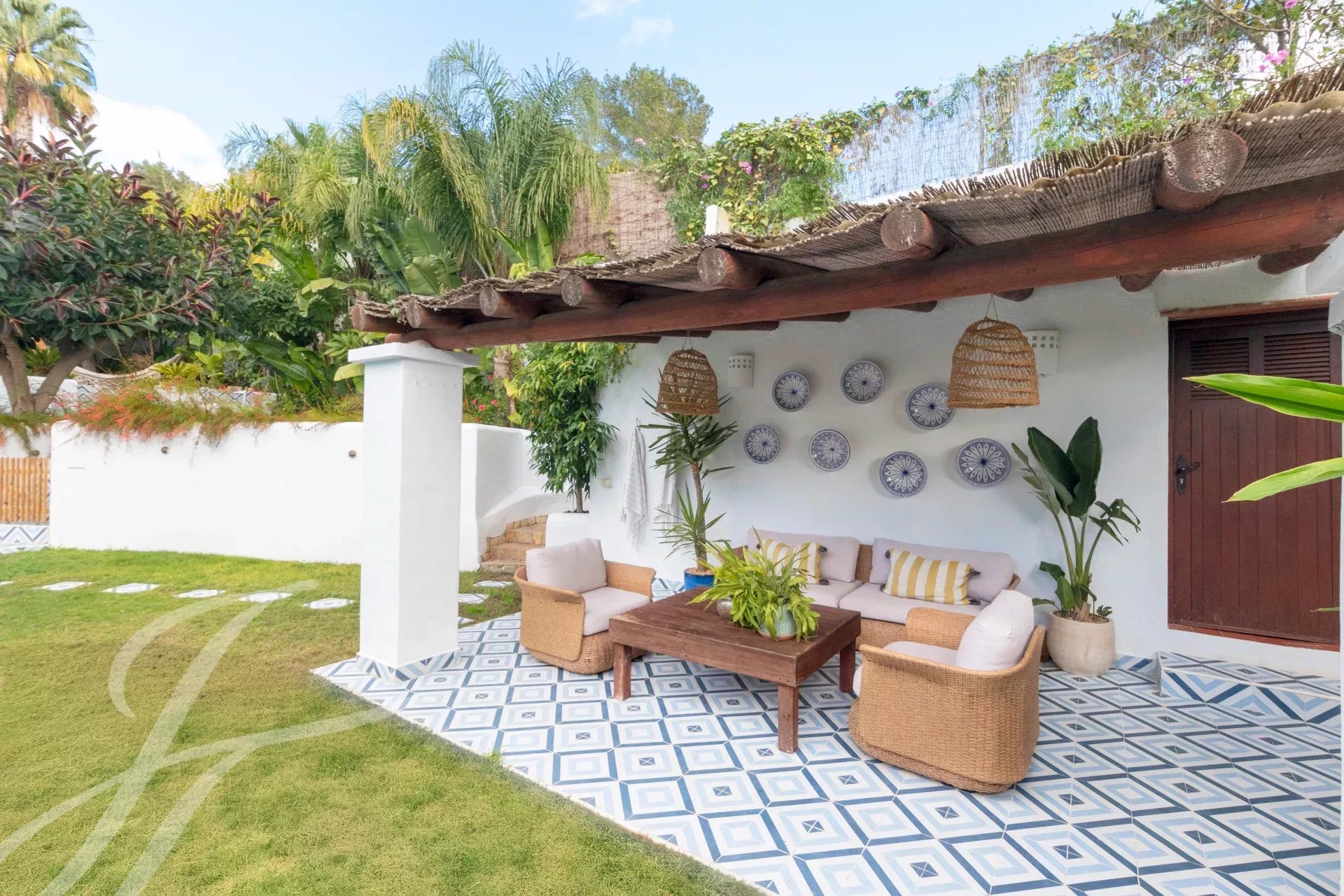 Cachée à Cala Llonga, cette propriété de 193 m² allie luxe moderne, design durable et cadre privé avec vue sur la mer. Le jardin, avec des arbres fruitiers et des terrasses tropicales, a été transformé en oasis grâce à un système d'irrigation avancé et une citerne de collecte des eaux pluviales.