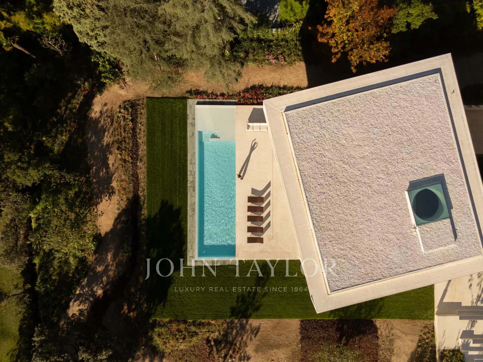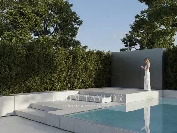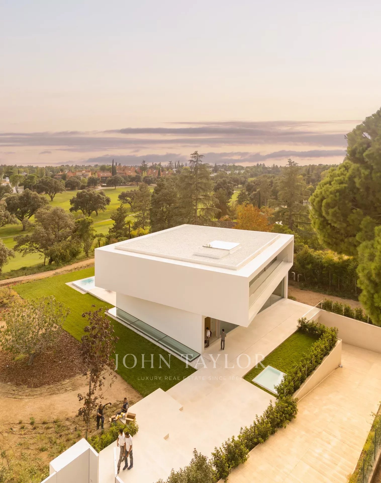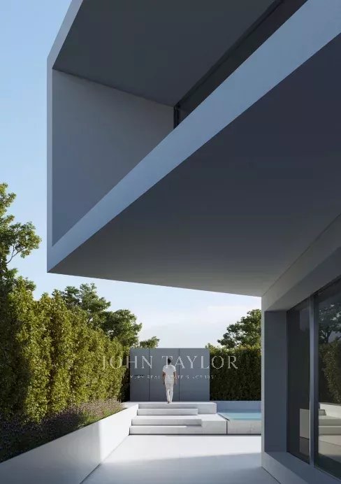 Le terrain possède deux entrées dans l'angle nord-est : une pour les véhicules qui se connecte au sous-sol par une rampe et une autre pour les piétons qui dirige les utilisateurs vers l'entrée principale de la villa par une série de plates-formes pavées. La maison est située dans la partie supérieure du terrain, ce qui laisse un espace libre pour un grand jardin avec une piscine.
