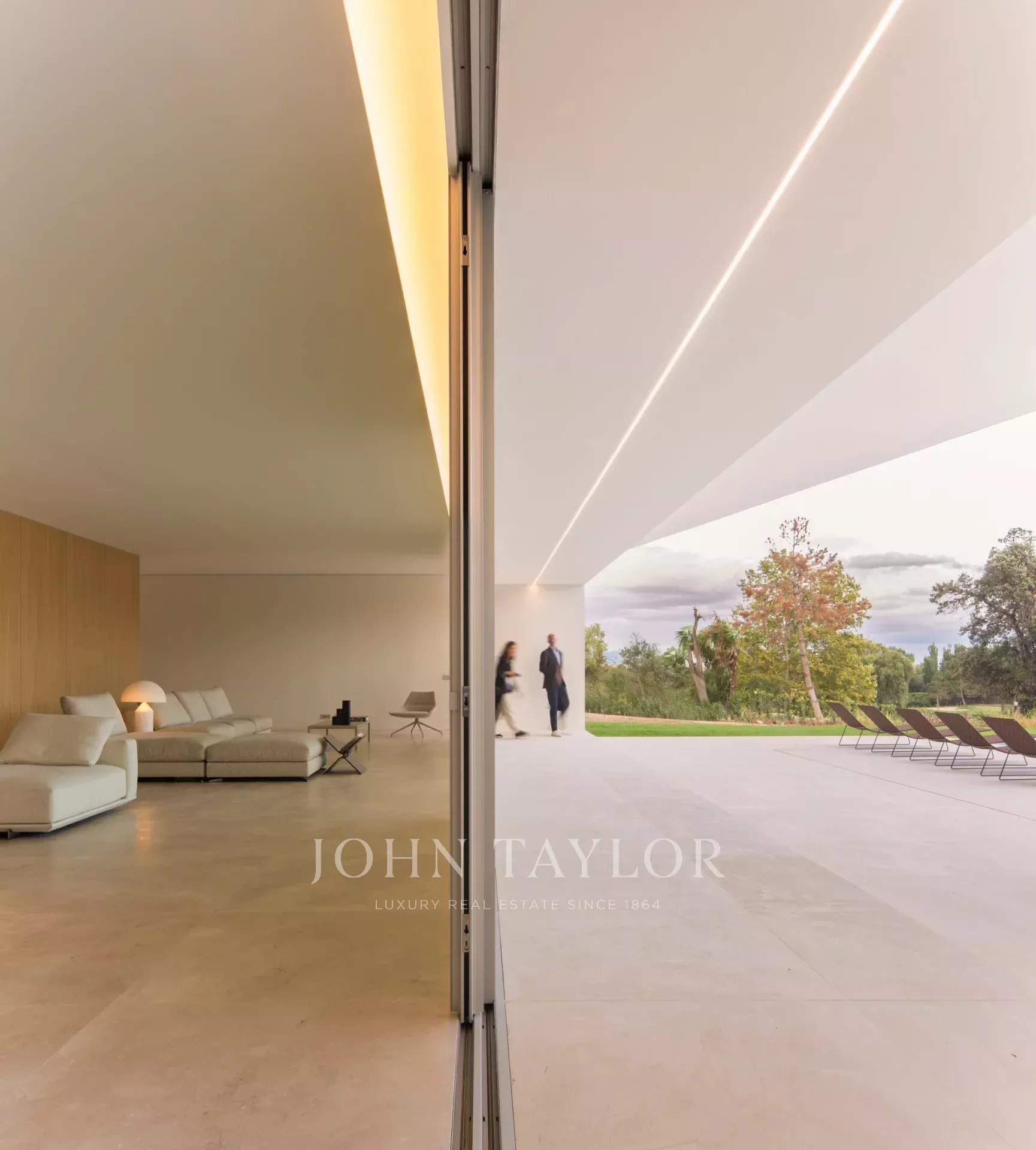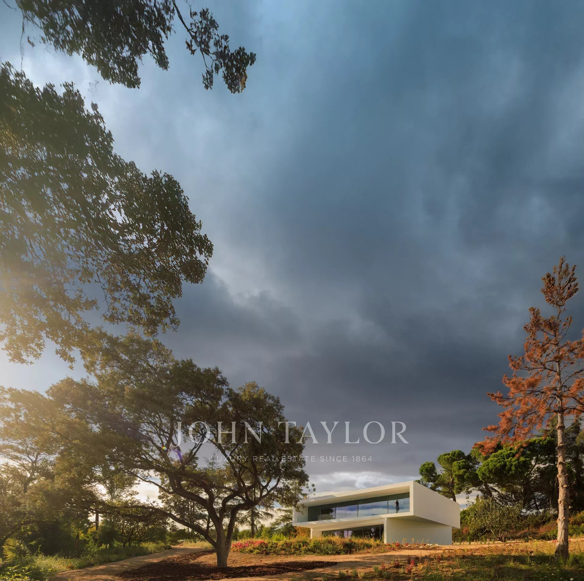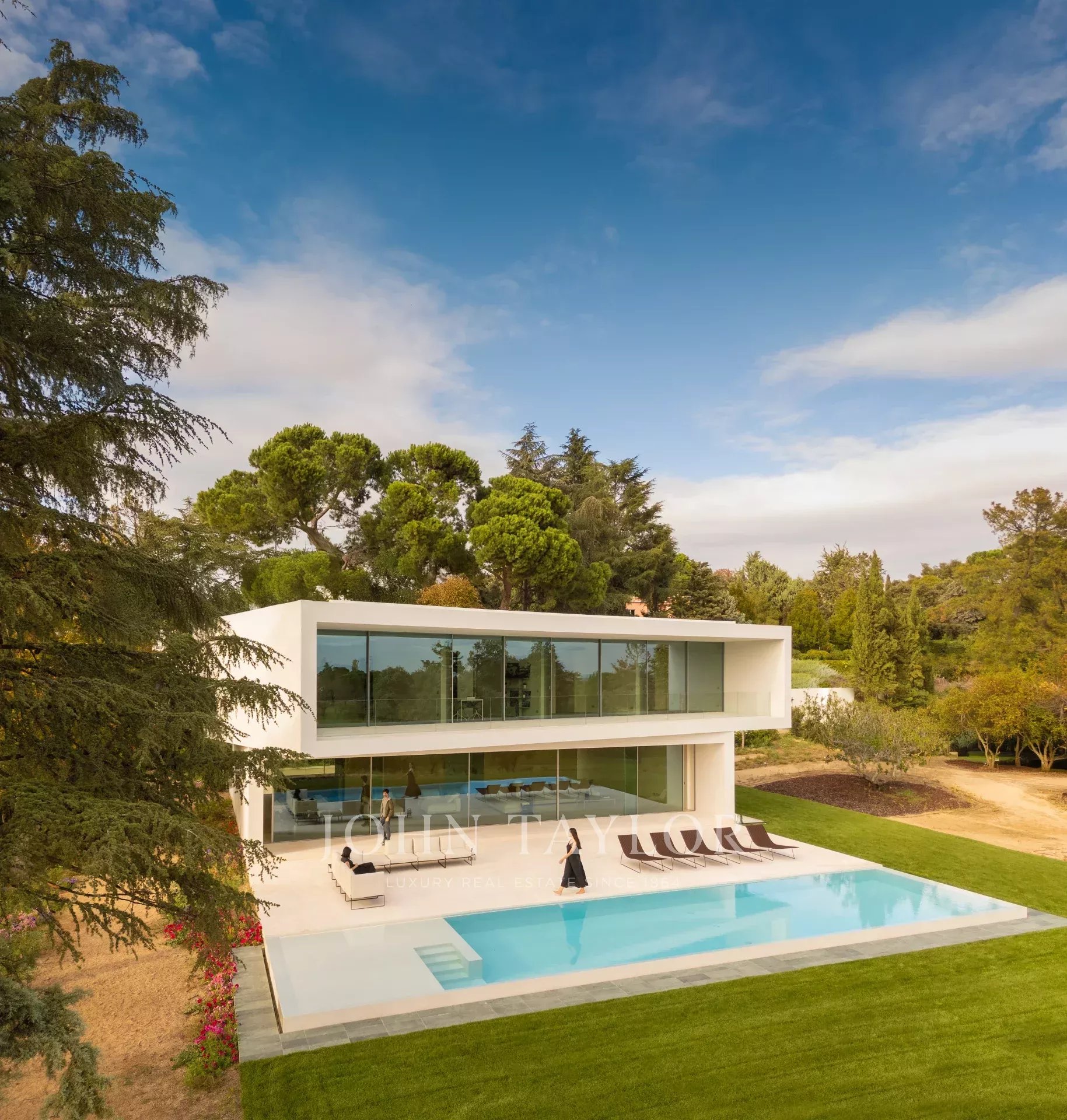 Le terrain possède deux entrées dans l'angle nord-est : une pour les véhicules qui se connecte au sous-sol par une rampe et une autre pour les piétons qui dirige les utilisateurs vers l'entrée principale de la villa par une série de plates-formes pavées. La maison est située dans la partie supérieure du terrain, ce qui laisse un espace libre pour un grand jardin avec une piscine.