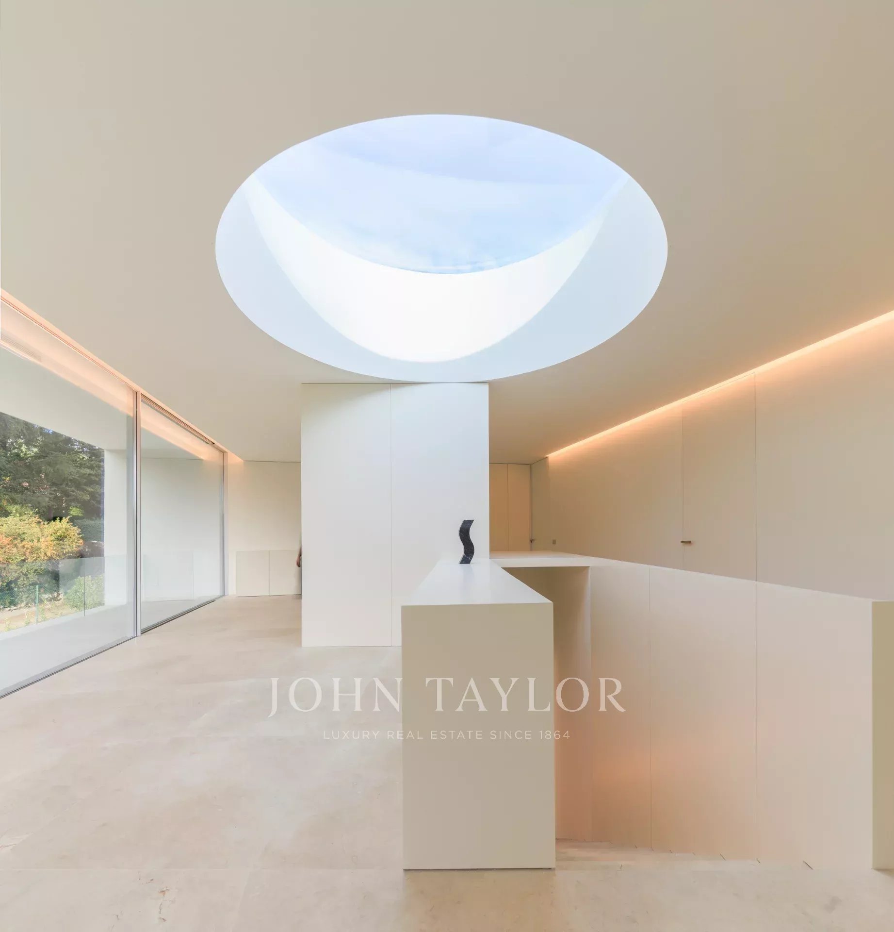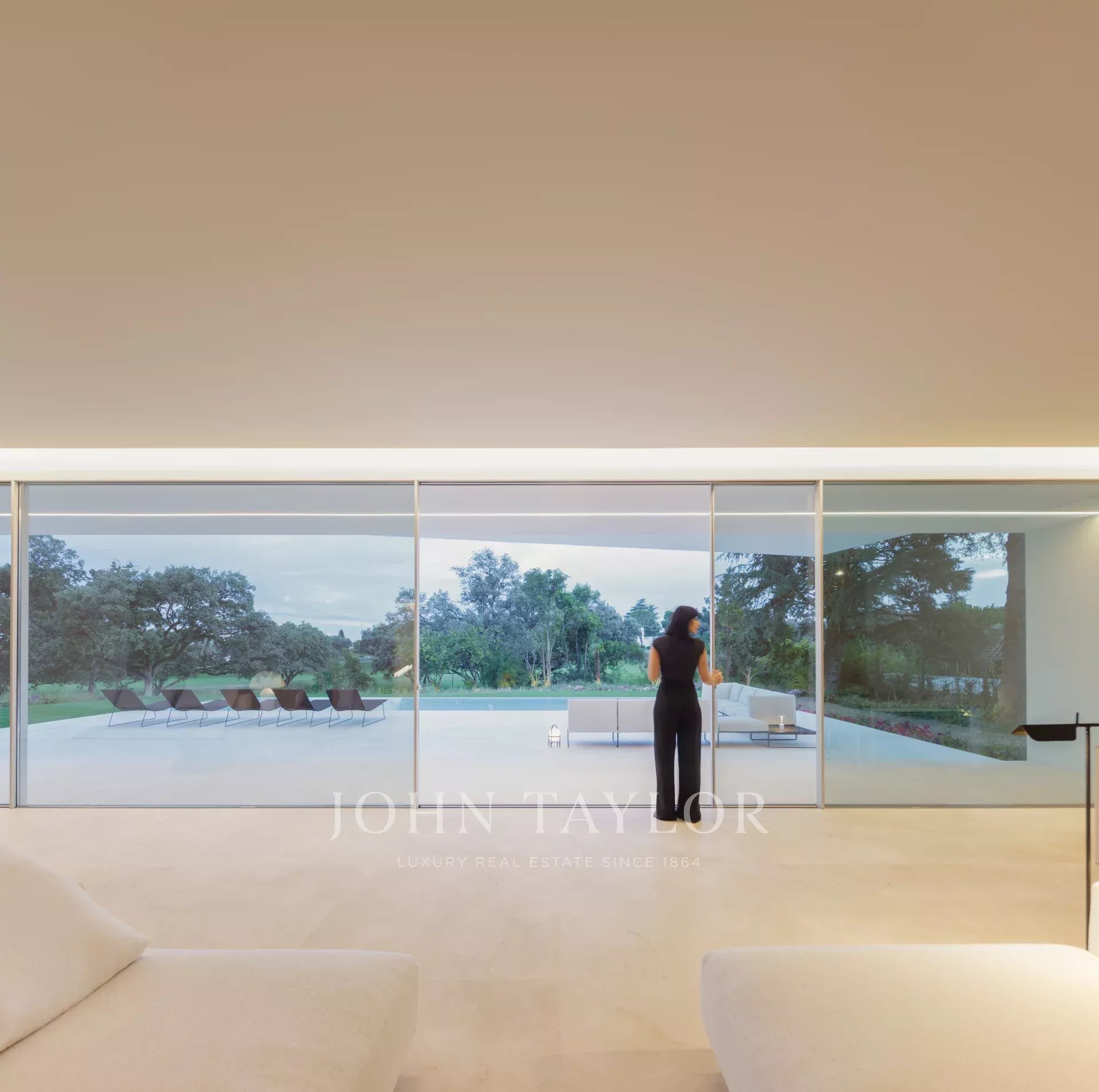 Cette villa se présente comme une superposition de deux volumes très arrondis qui, par le jeu de la rotation entre eux, génèrent des terrasses couvertes et orientent l'étage supérieur en direction des vues lointaines du paysage. Les pièces ont deux côtés solides qui remplissent la fonction structurelle, permettant ainsi aux façades d'être complètement ouvertes par de grandes fenêtres donnant sur le jardin avec une horizontalité marquée. Contrairement à l'extérieur, l'intérieur est composé d'espaces connectés qui contemplent un programme particulier, où chacune des pièces révèle un paysage unique du jardin. Ainsi, dans cette propriété, on fait l'expérience d'une atmosphère immergée dans une poétique d'ombres qui transforment l'intérieur.