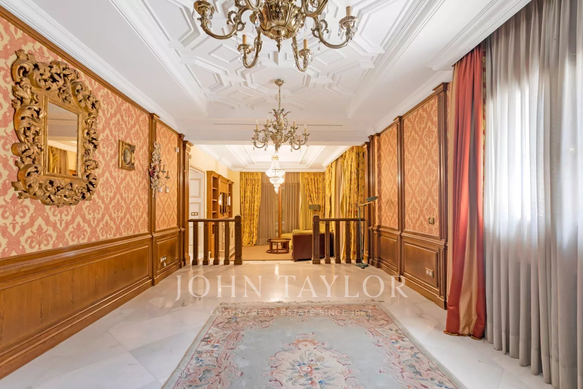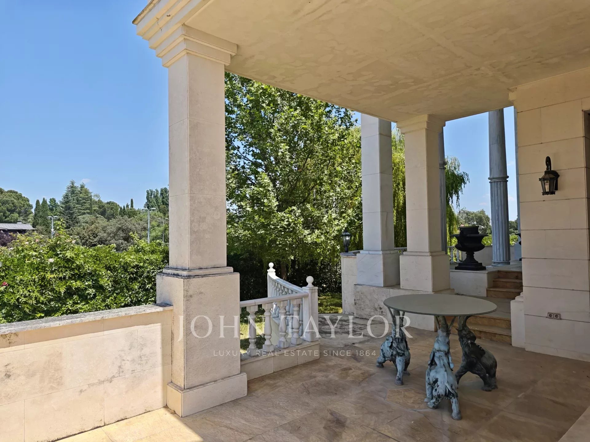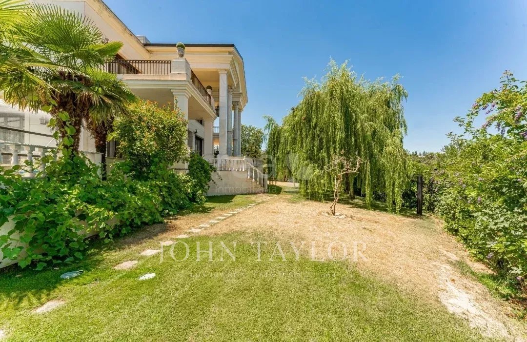 John Taylor présente EXCLUSIVEMENT cette impressionnante demeure néoclassique en face du golf La Moraleja I. Elle dispose de 1.250m2 construits sur un terrain de 2.550m2.