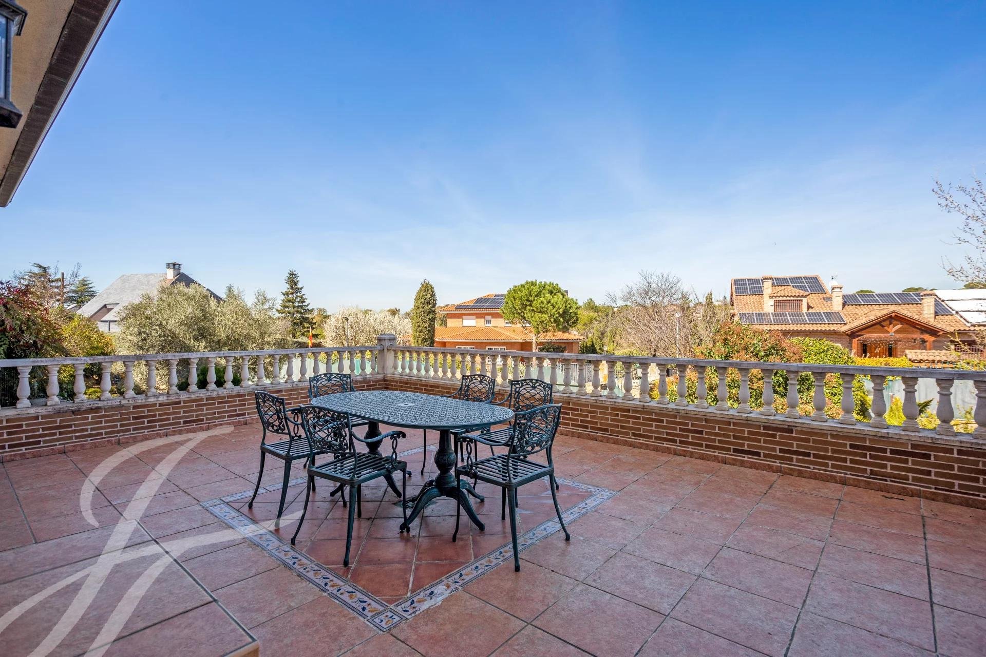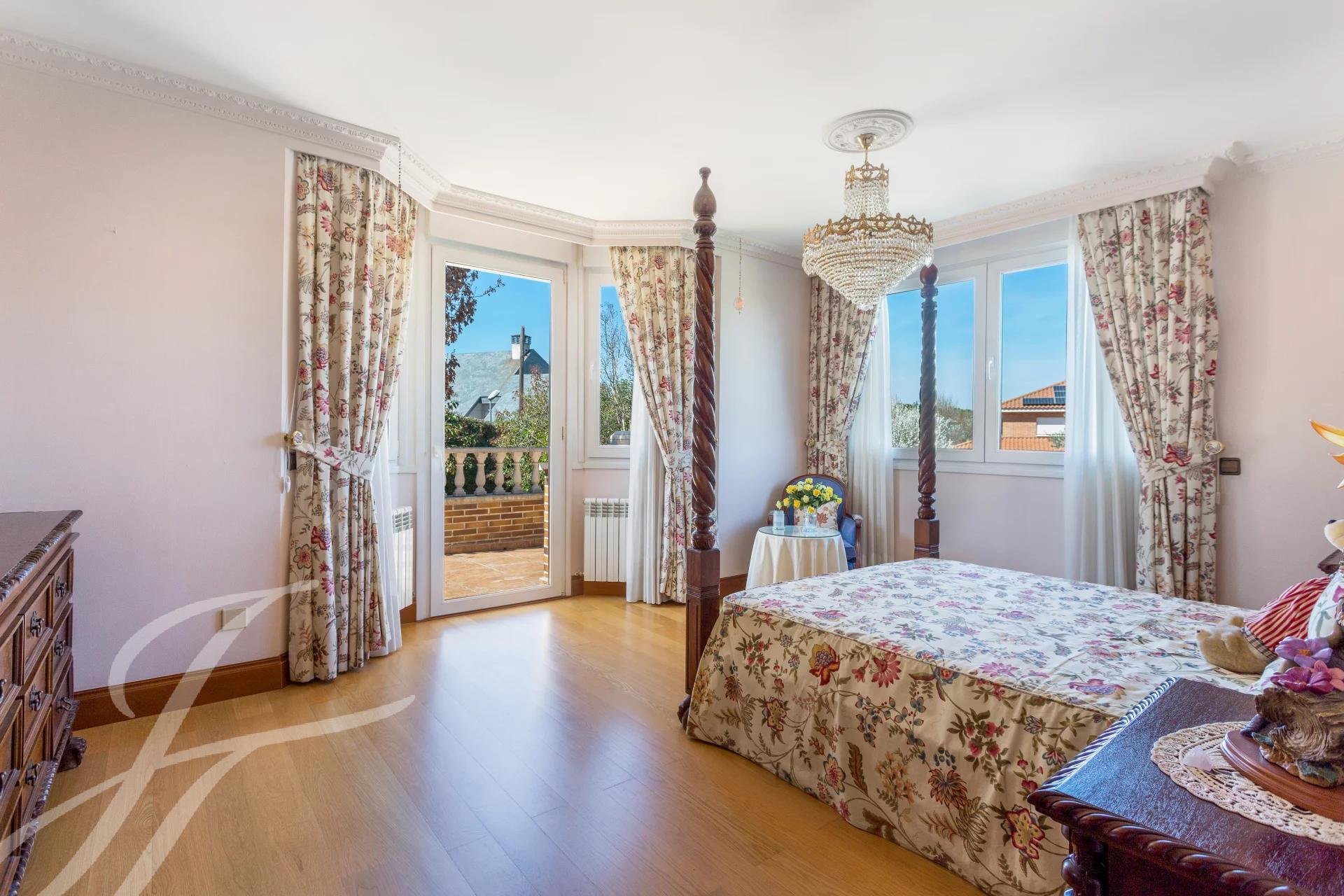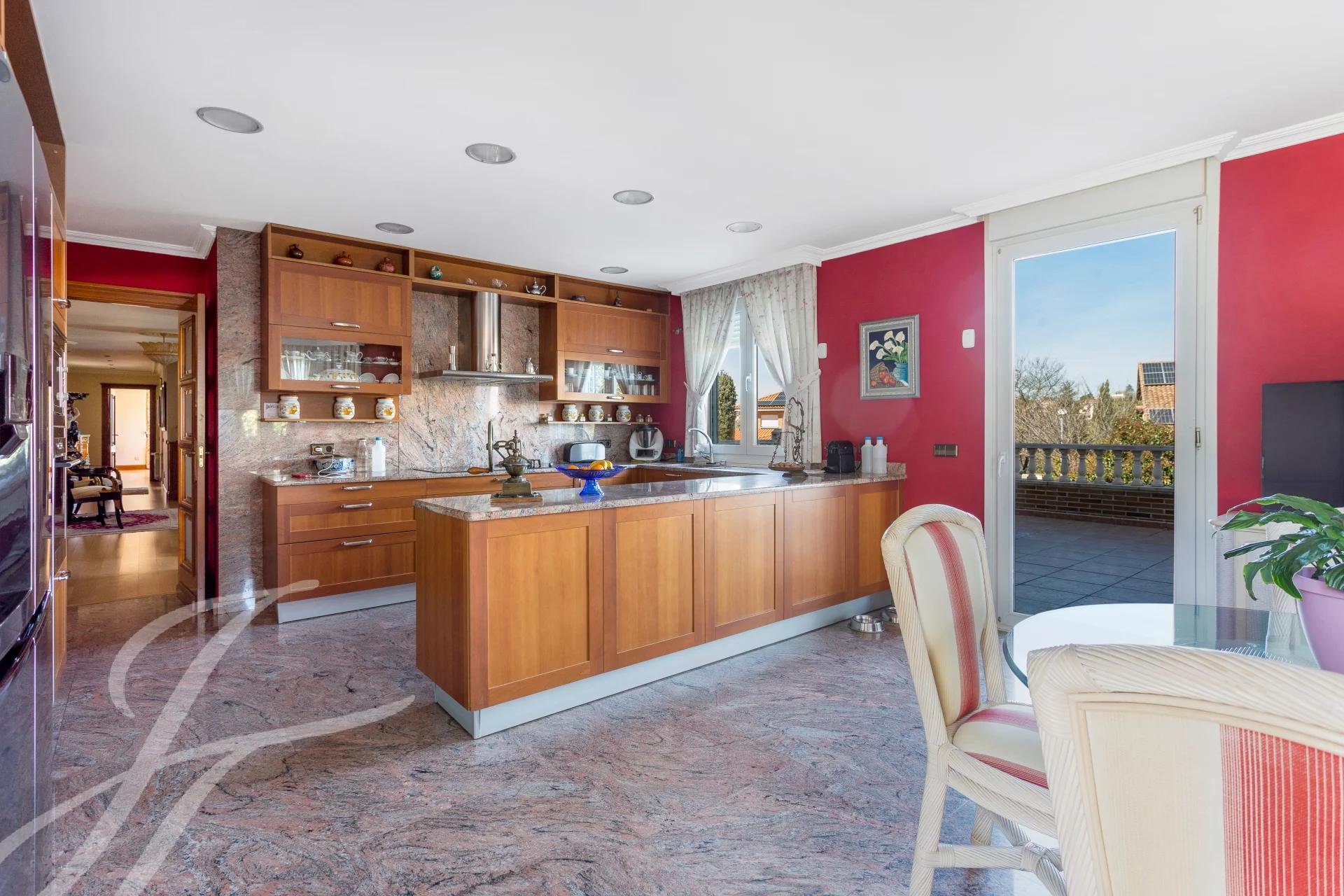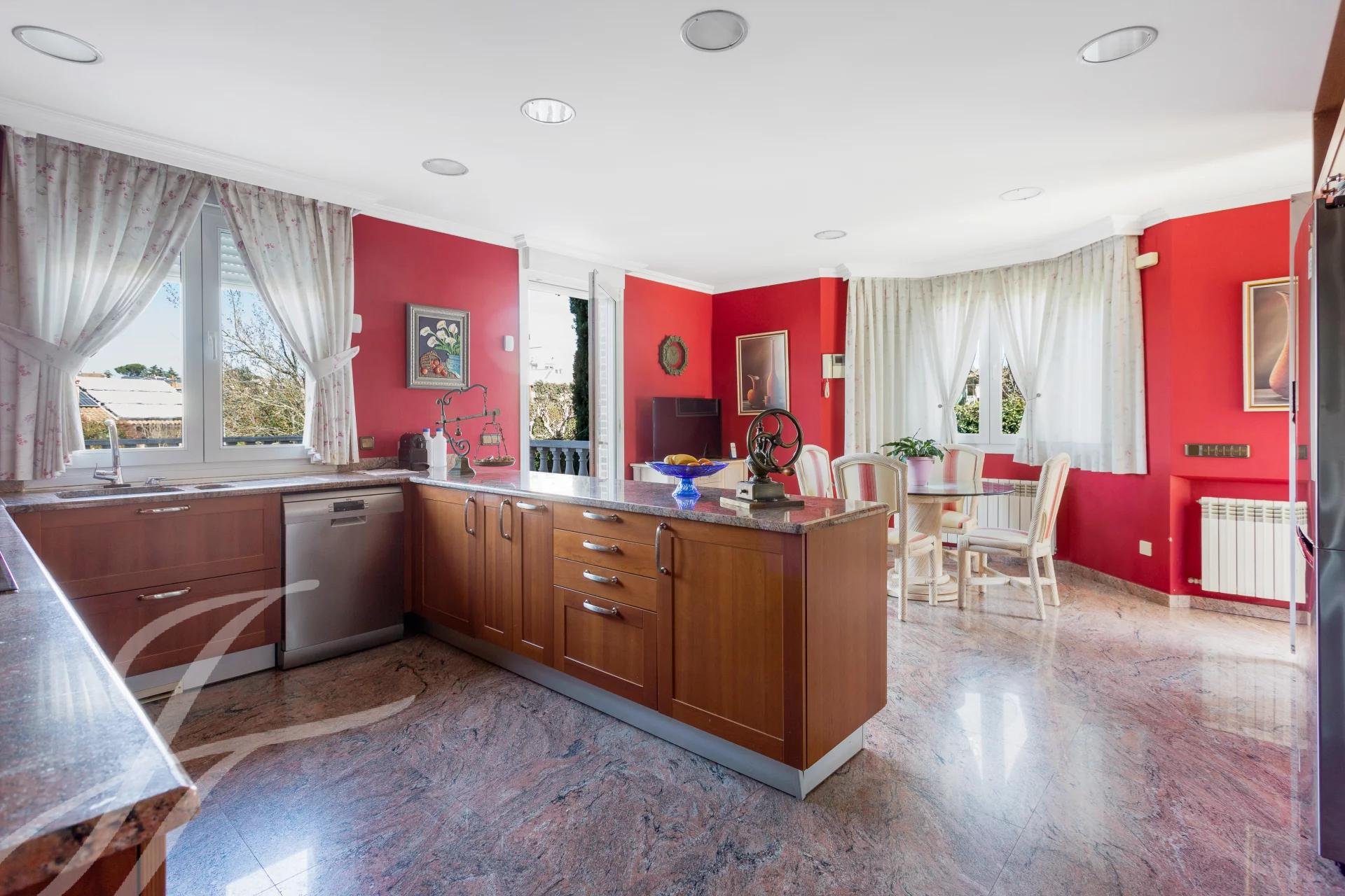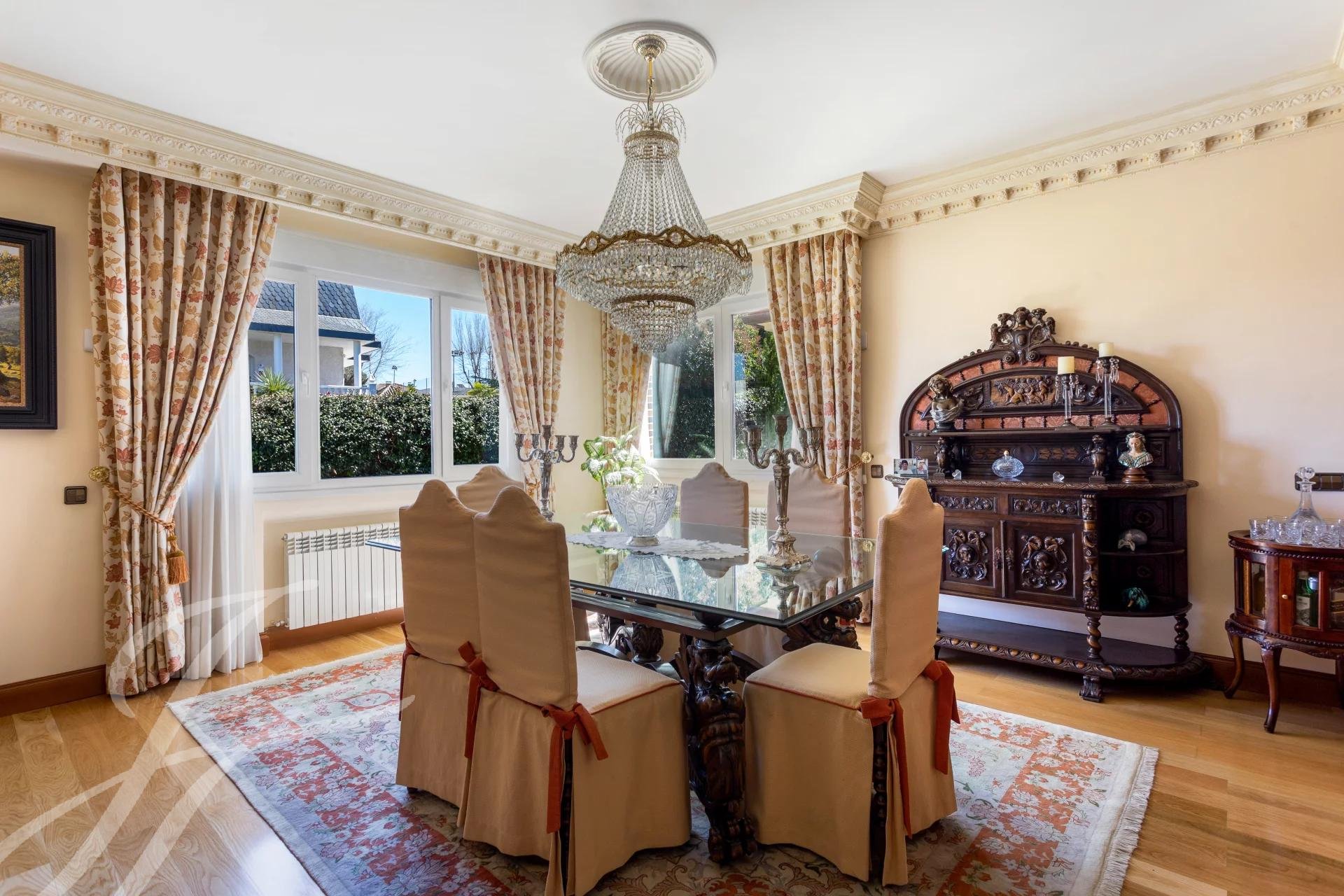 Le rez-de-chaussée a un accès direct au jardin, et la piscine se trouve dans l'espace public, ainsi qu'un magnifique hall d'entrée reliant les deux autres étages. L'immense salon avec cheminée est relié à une grande salle à manger avec accès à l'énorme porche et au jardin, et la salle à manger principale est reliée à la cuisine et dispose d'une immense terrasse d'environ 50 m² avec vue sur les montagnes.