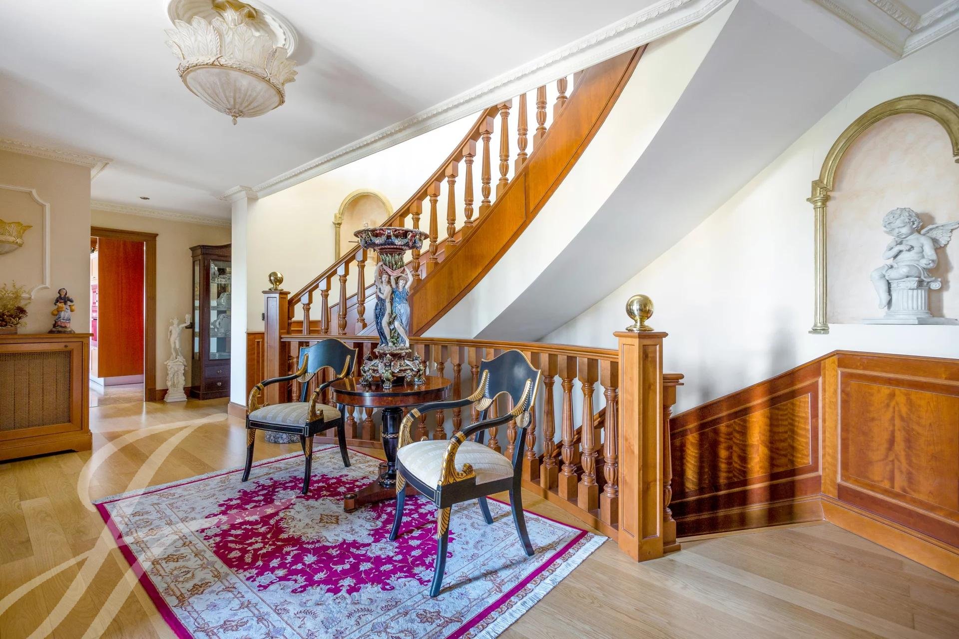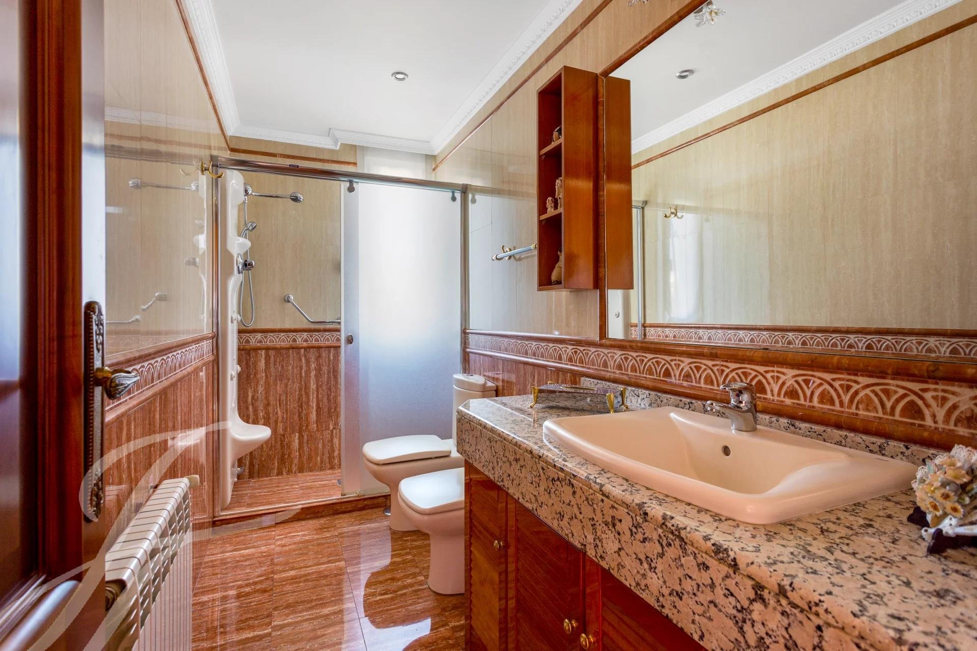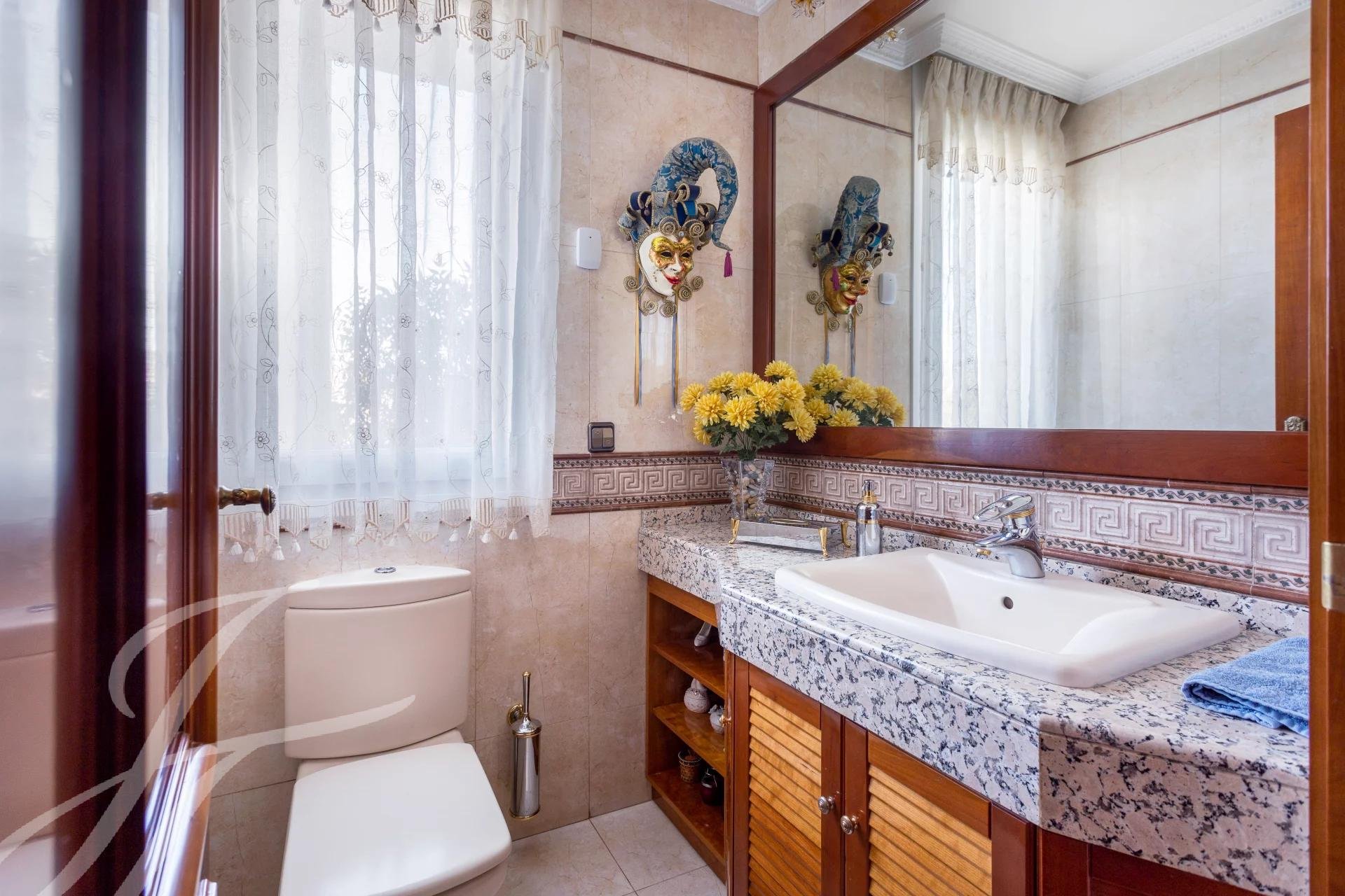 L'étage d'accès comprend un appartement séparé avec un salon, une cuisine, une chambre et une salle de bains. En outre, cet étage comprend un salon avec bar, une cave à vin, un bureau, une chambre d'amis avec salle de bains en suite, une buanderie avec patio, une salle de sport, une salle de stockage et une buanderie (air conditionné et purificateur d'air). Parking couvert pour quatre voitures en parallèle et capacité pour quatre autres à l'extérieur. Cela fait un total de 8 chambres et 7 salles de bains : 4 en suite et 1 toilette.