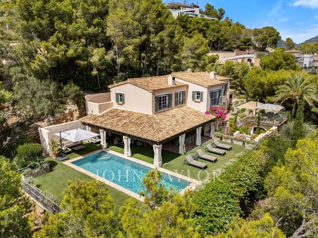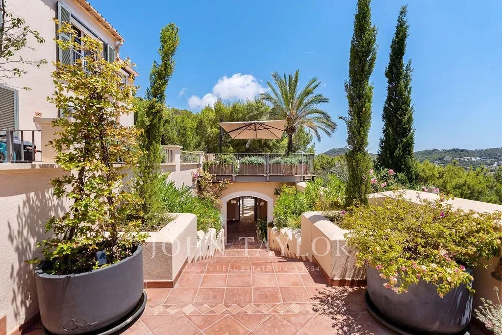 Conçue pour ceux qui recherchent l'exclusivité, cette propriété de Majorque offre également des espaces de bien-être optimisés, notamment un espace de remise en forme, un sauna et une cuisine extérieure, alliant fonctionnalité et luxe. Avec un agencement soigneusement conçu, ce bijou de propriété est l'enclave parfaite pour profiter du climat méditerranéen, avec des vues panoramiques et une intimité totale.