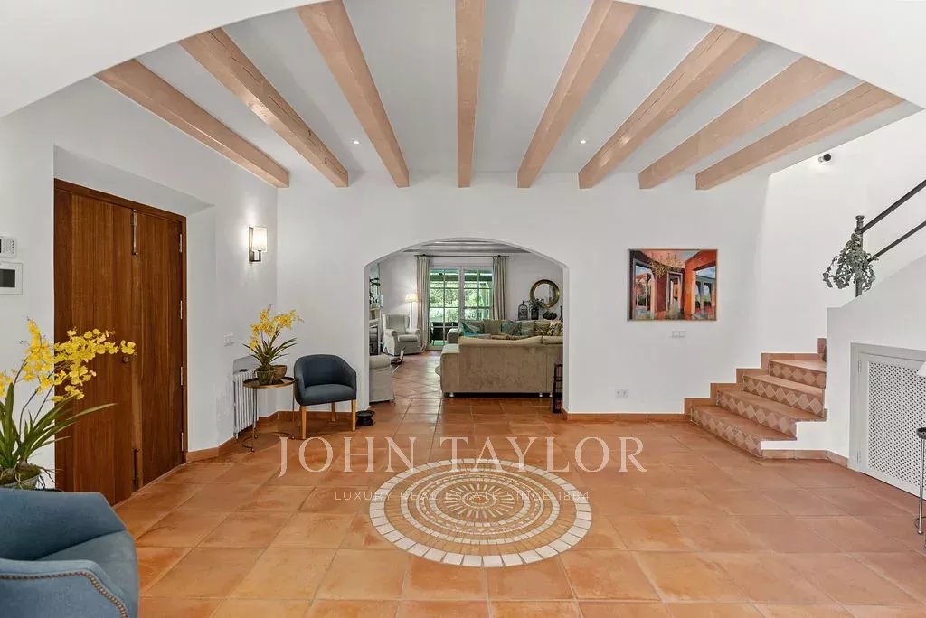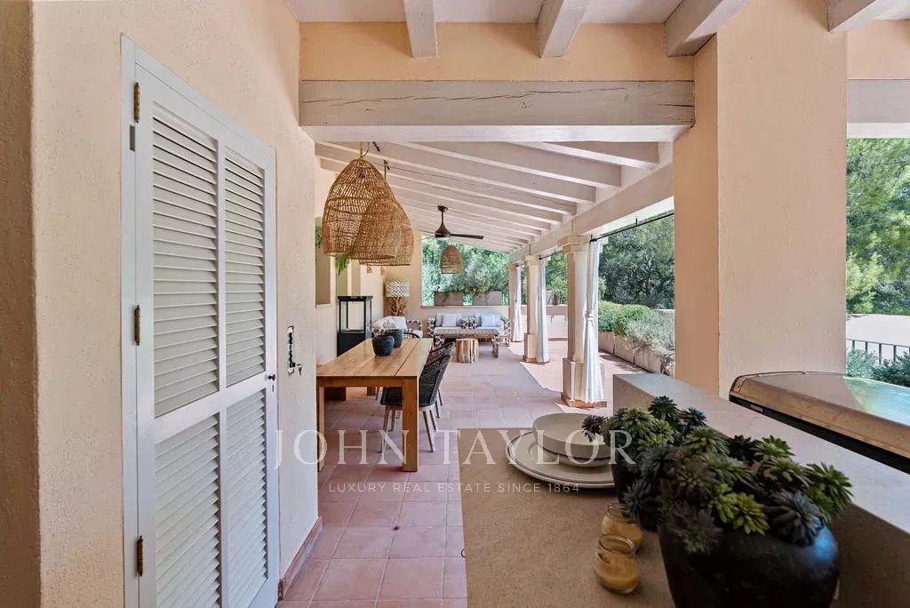 L'élégant salon se prolonge par une terrasse couverte surplombant la mer, tandis que l'extérieur révèle une oasis privée avec une superbe piscine d'eau salée chauffée, un espace barbecue et une cuisine extérieure, vous invitant à vous détendre et à vous relaxer au cœur de la campagne majorquine. Avec plus de 2200 m² de terrain et la particularité d'avoir trois parcelles supplémentaires non constructibles, le domaine allie espace et intimité dans un environnement haut de gamme.