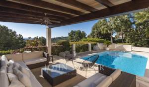 Nous vous proposons cette impressionnante villa méditerranéenne située à proximité du terrain de golf de Bendinat. Elle dispose d'une surface habitable de 350 m² ; répartie sur 2 niveaux. A l'étage supérieur, il y a la cuisine principale avec une salle à manger, le salon avec une cheminée, deux chambres doubles, deux salles de bains et un dressing. Au rez-de-chaussée, un deuxième salon plus spacieux, une autre cuisine entièrement équipée, deux autres chambres et deux salles de bains. De là, toutes les pièces donnent un accès direct à la magnifique piscine extérieure où vous pourrez vous détendre et prendre un bain de soleil dans l'espace spacieux avec des chaises longues et des canapés. Cette propriété de style méditerranéen est idéale pour ceux qui recherchent l'intimité, la tranquillité, de belles vues sur la mer, et qui veulent vivre dans une zone très convoitée, proche des beaux ports et de toutes les commodités. Ne manquez pas l'occasion de venir voir la maison. Contactez-nous dès que possible.