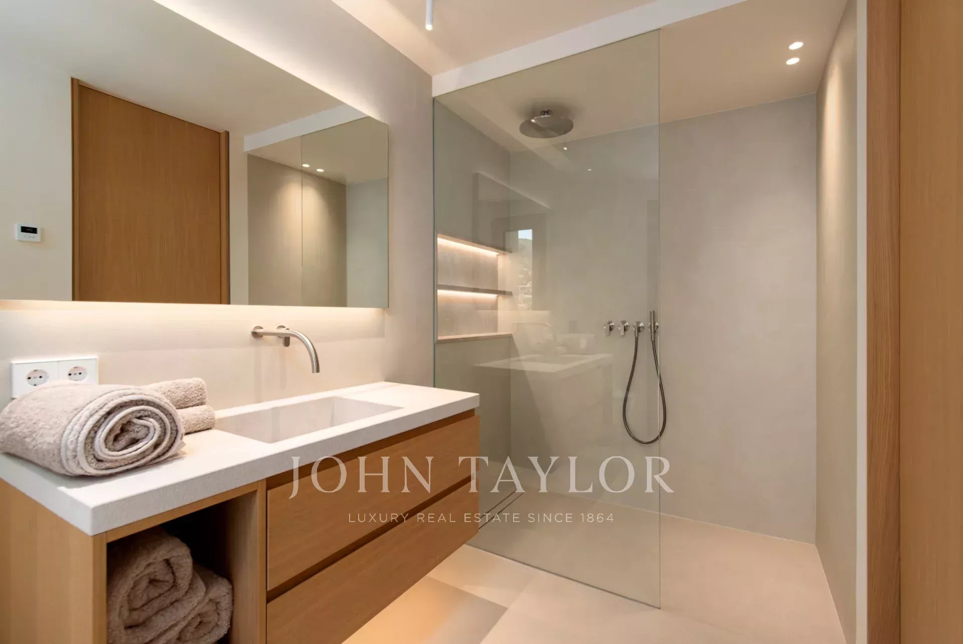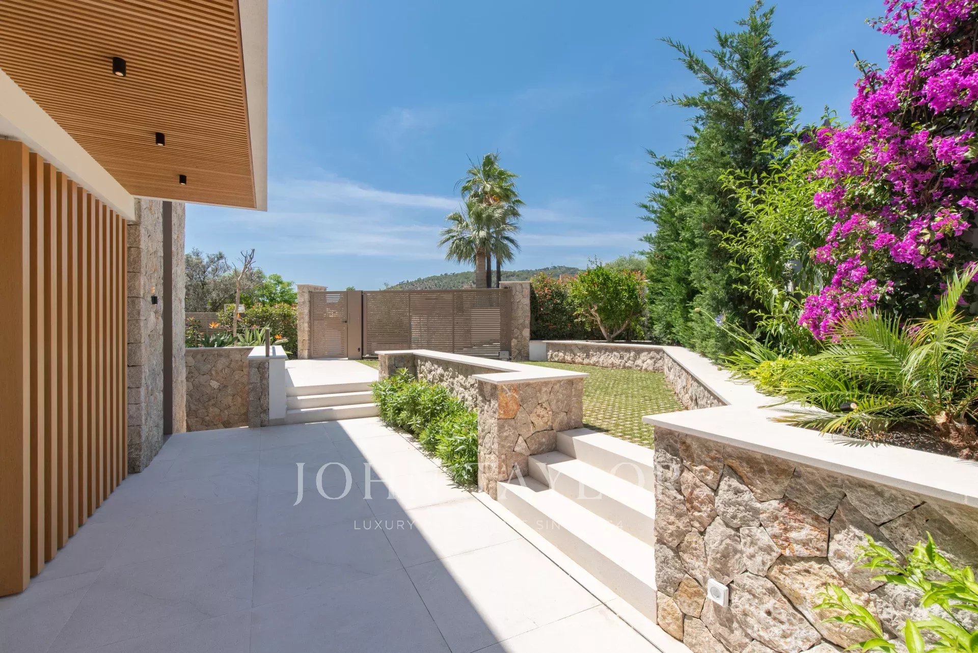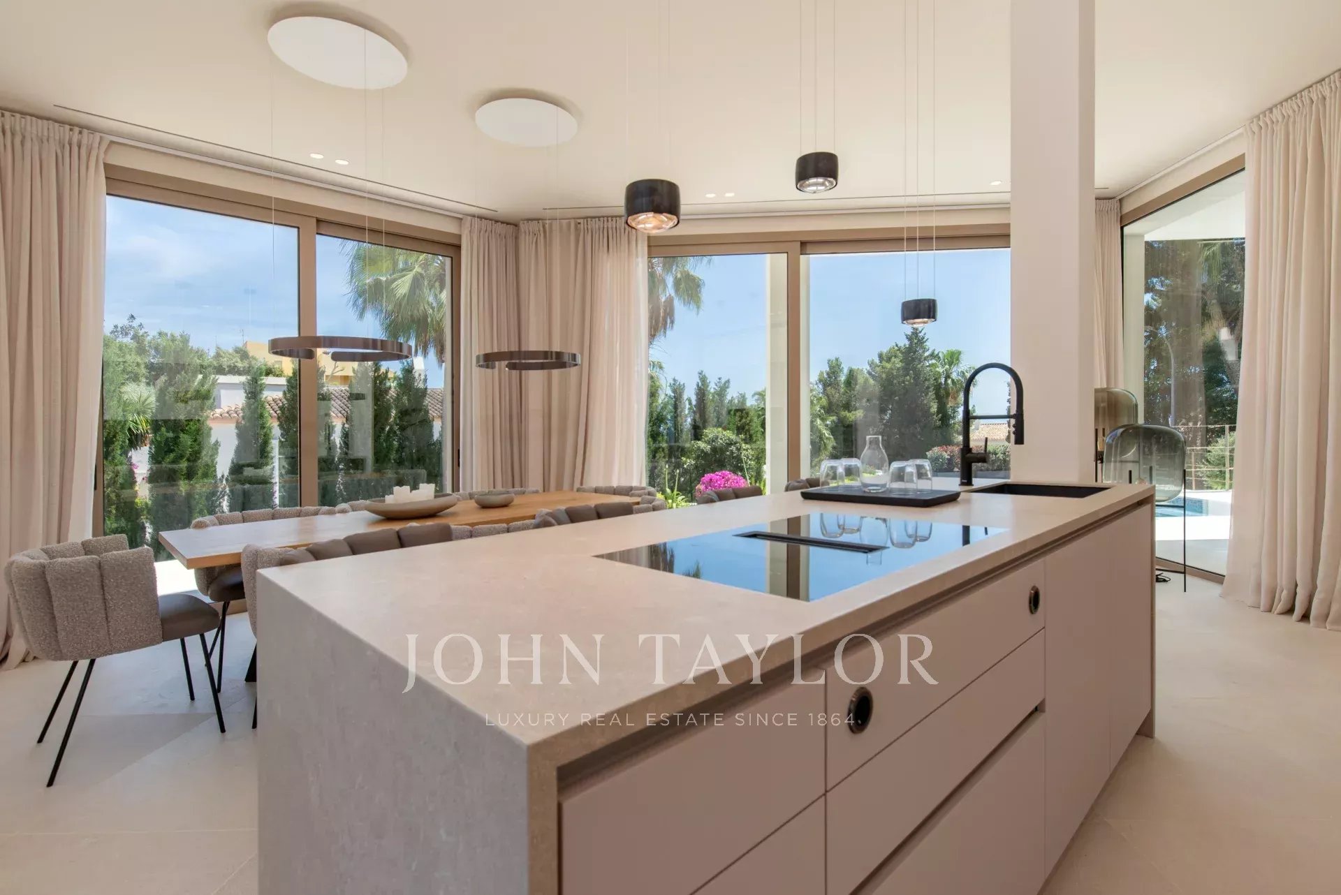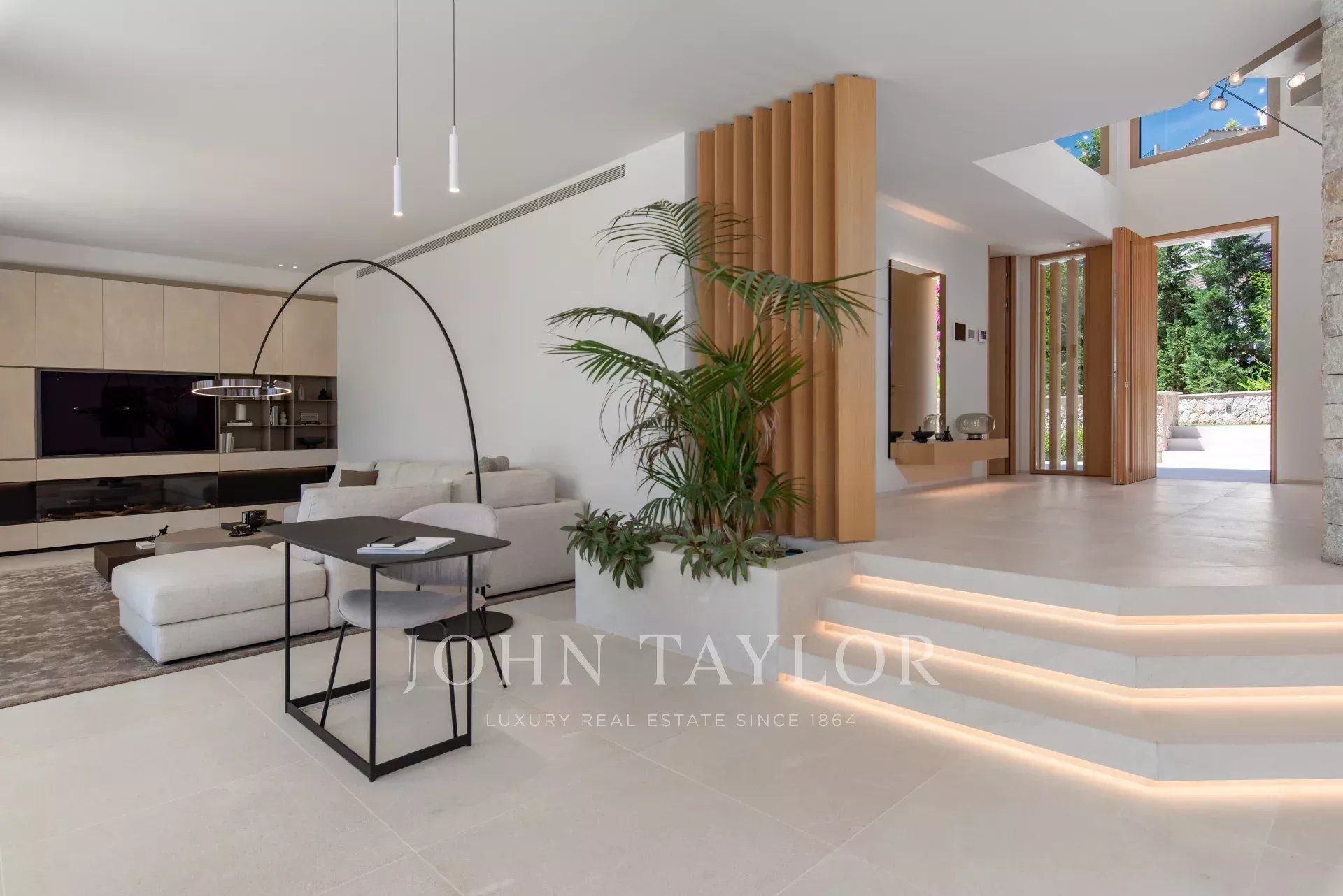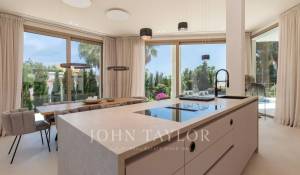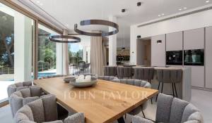 Chaque recoin de cette villa a été conçu avec le souci du détail et la passion de la qualité. Les caractéristiques comprennent des sols en carreaux de porcelaine de grand format, des murs en pierre naturelle, d'élégants détails en bois, une cheminée à gaz et une technologie de pointe (appareils Miele, éclairage Occhio, climatisation intégrale, chauffage par le sol, etc.)