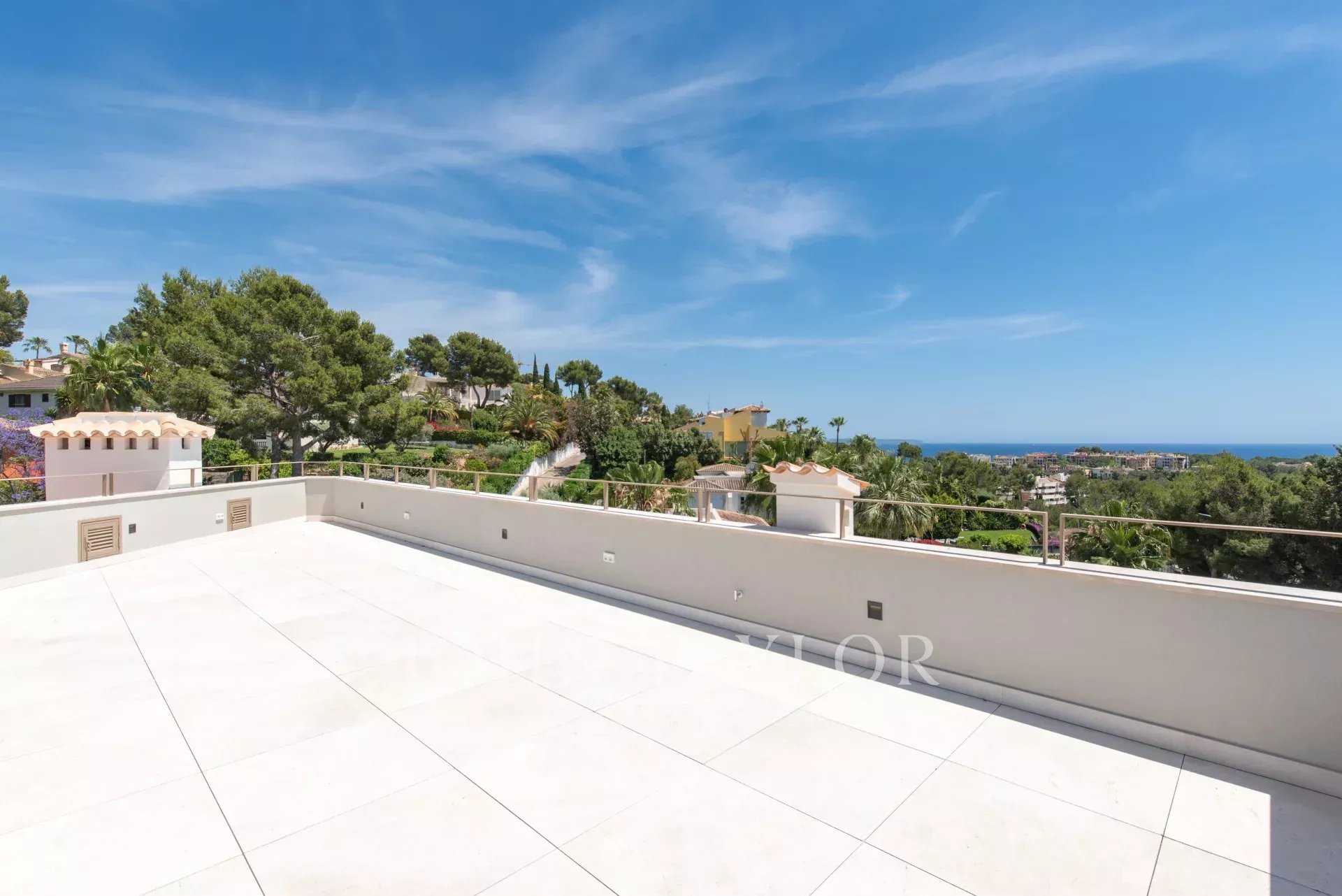 La grande terrasse sur le toit est l'un des points forts de la propriété : elle est préparée pour installer une cuisine extérieure et un jacuzzi, ce qui en fait l'endroit idéal pour profiter du soleil, des vues sur la mer et des couchers de soleil spectaculaires dans un cadre inégalé.