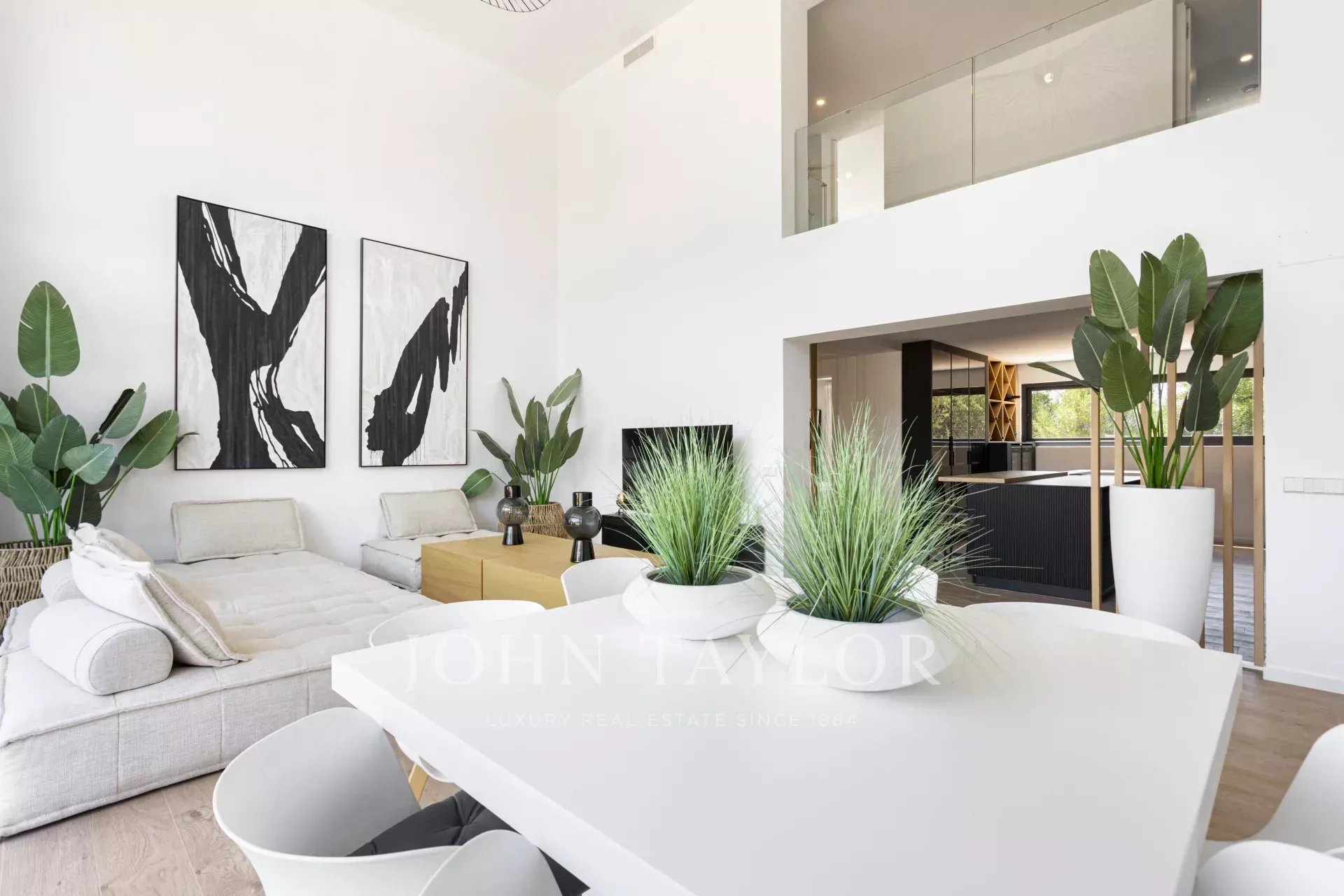 Dans la dépendance, on trouve une salle à manger vitrée et une cuisine d'été à côté de la magnifique piscine de 63 m2 avec jacuzzi intégré. Toute la maison est dotée de parquets et de sols en céramique, de menuiseries en bois naturel, d'une cuisine entièrement équipée, de robinets et de salles de bains en Porcelanosa, d'un système d'eau chaude/froide aérothermique et de l'air conditionné centralisé.