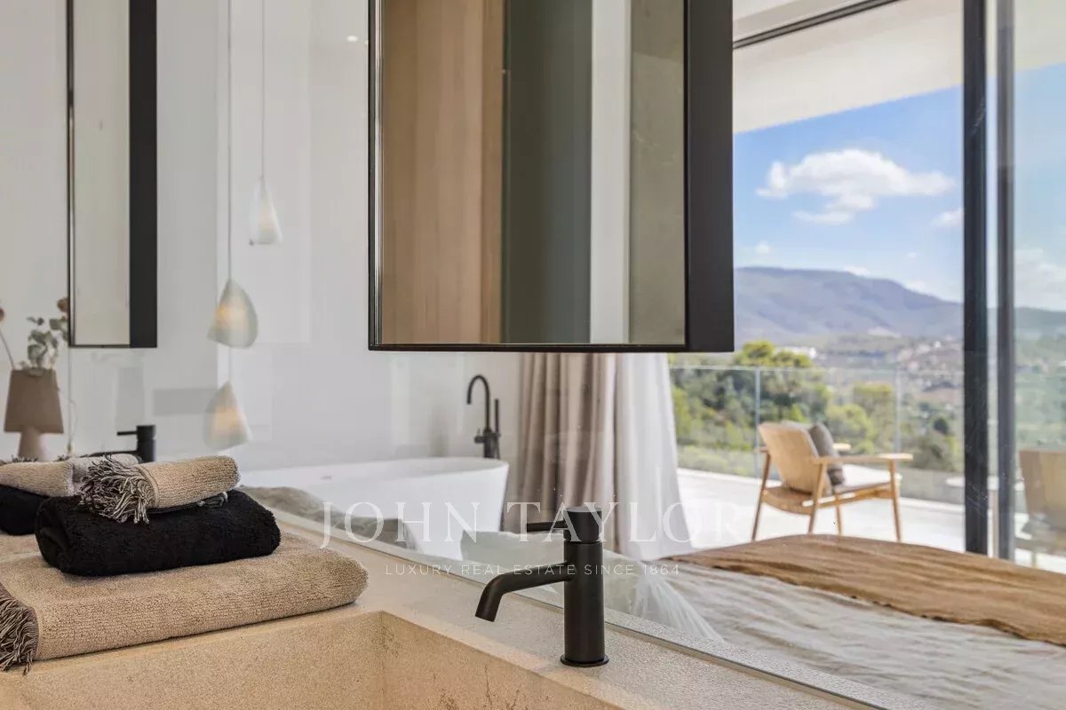 À l'étage, vous trouverez quatre chambres spacieuses avec salle de bains, conçues avec des lignes épurées, des finitions haut de gamme et une attention particulière à l'intimité et au confort. Le niveau inférieur comprend un garage pour plusieurs voitures, de nombreux rangements, une buanderie entièrement équipée et une cave à vin privée, parfaite pour les collectionneurs et les connaisseurs.