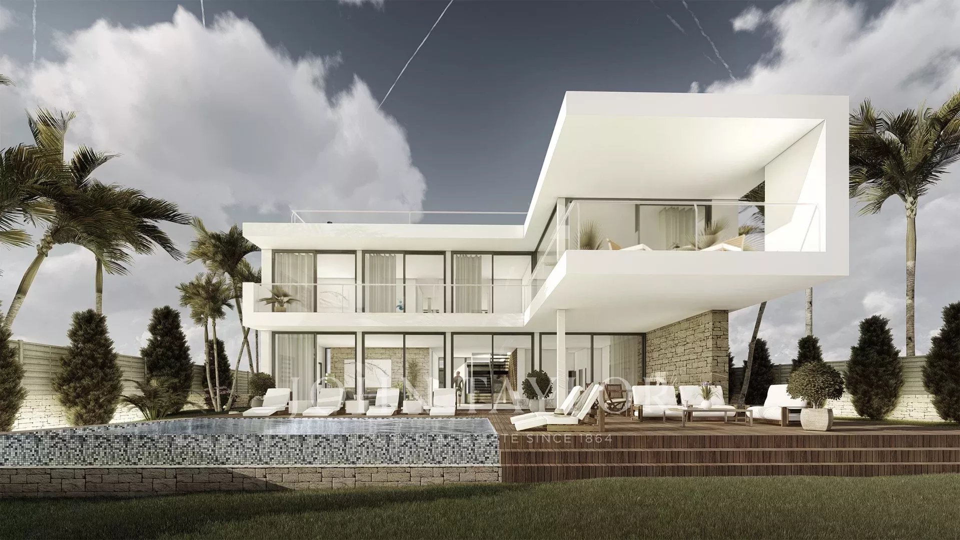 Cette nouvelle villa est proposée sur un beau terrain plat dans un bon emplacement avec une vue partielle sur la mer à Cala Viñyas. Le terrain a une superficie de 1 100 m2 et la villa moderne aux accents méditerranéens aura une surface construite d'environ 385 m2, divisée en 2 étages et une terrasse sur le toit. 4 chambres doubles et 4 salles de bains se trouvent au 1er étage. Au rez-de-chaussée se trouvent le salon et la salle à manger avec une cuisine ouverte. Les hautes fenêtres en verre de la façade donnent à la propriété beaucoup de lumière et une belle vue. Il y a une vue sur la mer depuis le premier étage ainsi que depuis la terrasse sur le toit. Un garage, l'air conditionné, le chauffage au sol par pompe à chaleur, des fenêtres à double vitrage, des appareils Gaggenau et une grande piscine sont quelques-uns des points forts de cette villa nouvellement construite, qui est entourée par la nature.