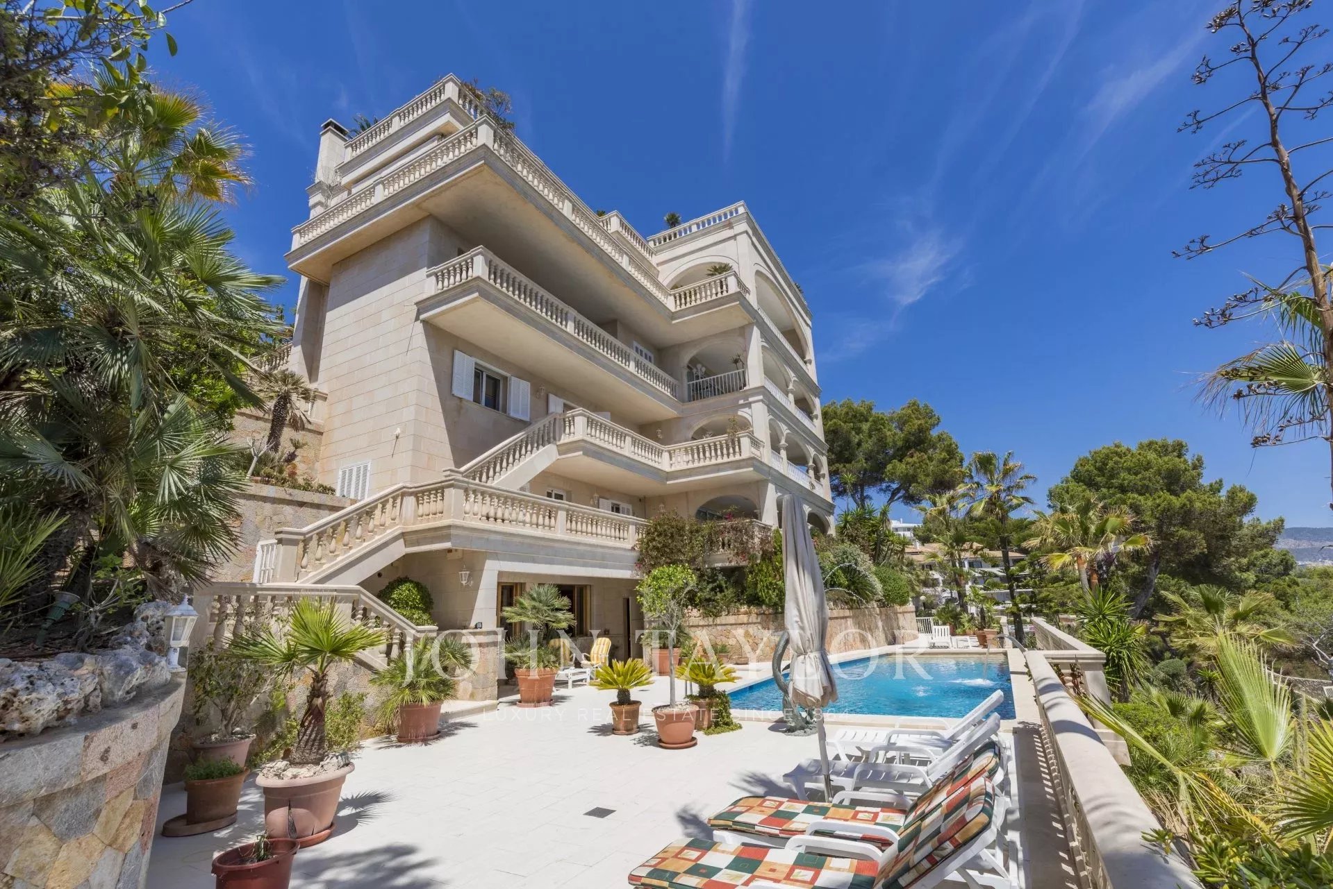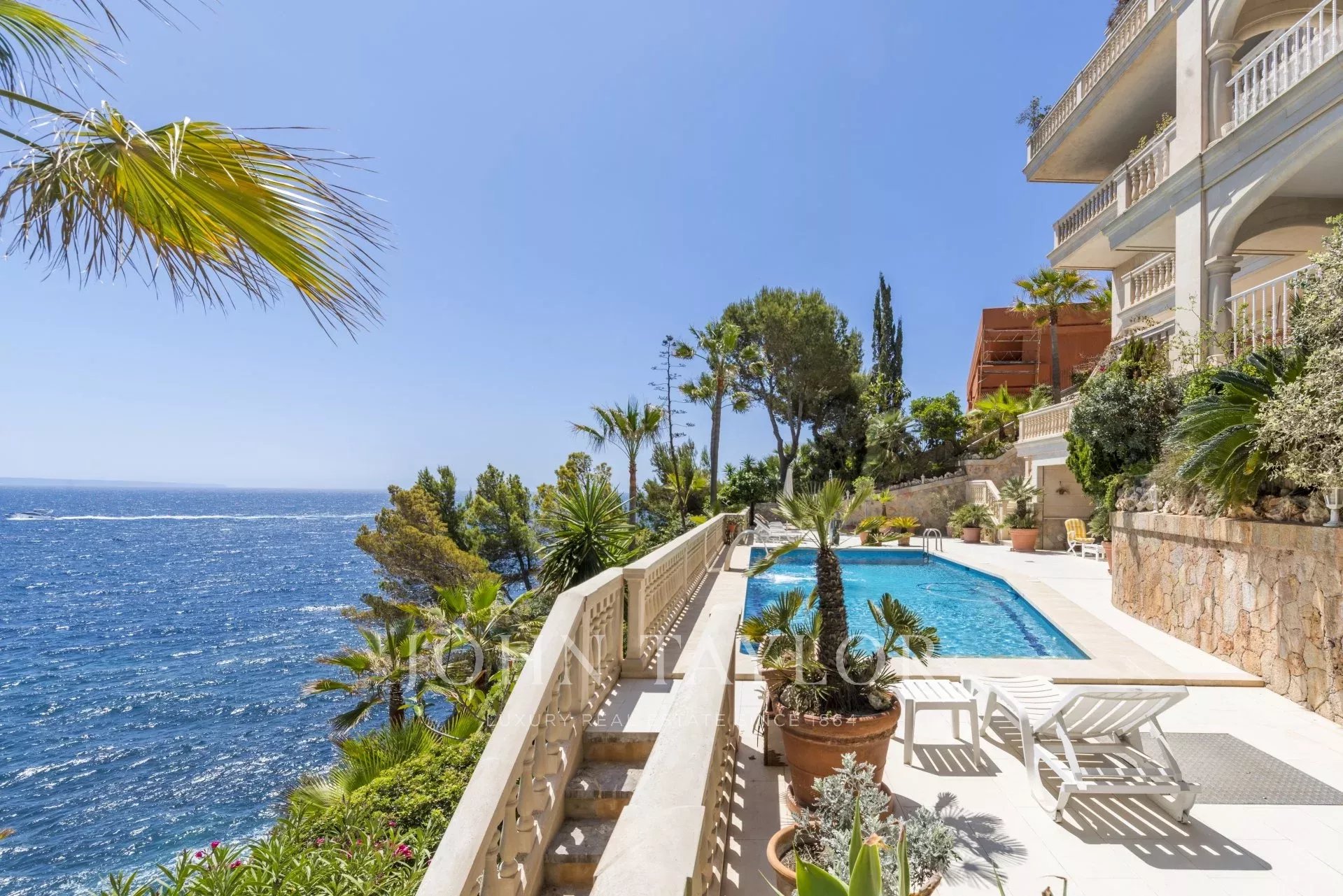 Maison de maître avec vue spectaculaire et accès direct à la mer à Cala Vinyas. Cette grande villa est située face à la mer dans l'urbanisation tranquille de Cala Vinyas et jouit de vues magnifiques sur la baie de Palma et l'île de Cabrera. Cette maison est très privilégiée car elle dispose d'un accès privé à une petite crique, où vous pourrez vous baigner dans les eaux cristallines de la mer. Elle est également idéale pour les amateurs de sports nautiques.