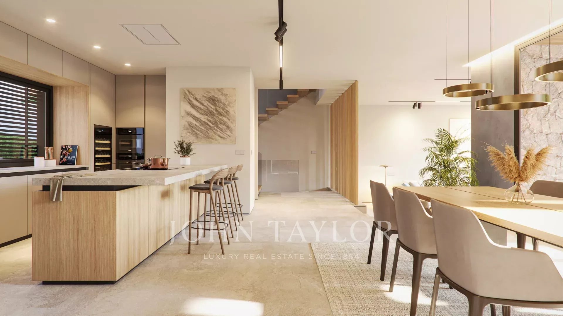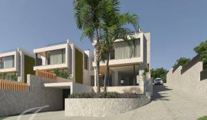 Chacune des quatre villas dispose d'une surface habitable généreuse de 300 mètres carrés, avec quatre chambres à coucher au dernier étage, chacune disposant d'une salle de bains privative et d'armoires encastrées. Au rez-de-chaussée, la distribution ouverte de la cuisine et de la salle à manger avec le salon sur un niveau séparé se connecte de manière transparente avec la terrasse généreuse et intime, parfaite pour recevoir. Le design moderne d'inspiration méditerranéenne est rehaussé par une façade en pierre, un jardin vertical et une menuiserie délicate, qui contribuent tous à l'aspect haut de gamme de ces nouvelles maisons.