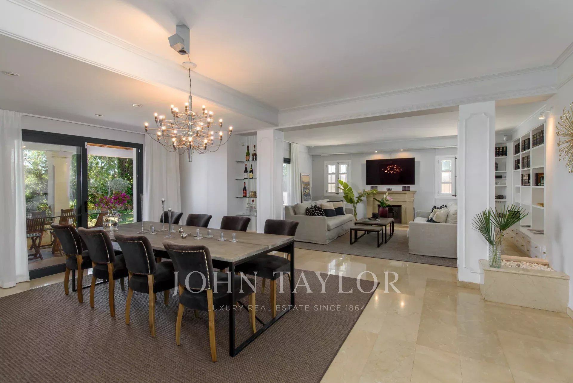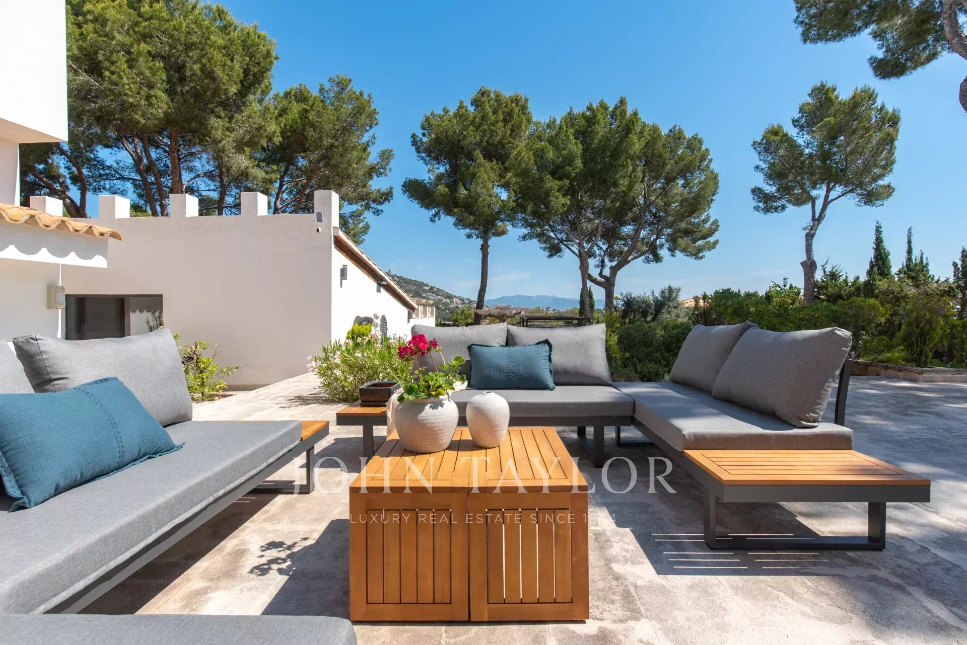 La villa se compose d'une entrée élégante, d'un salon spacieux et lumineux avec accès direct à l'espace extérieur, d'une cuisine moderne entièrement équipée, de six chambres et de quatre salles de bains, dont deux en suite. Son espace extérieur bien entretenu, orné d'une végétation méditerranéenne luxuriante et d'arbres qui apportent fraîcheur et ombre, accueille une piscine, coin idéal pour se détendre, et un porche avec espace barbecue, parfait pour des rassemblements inoubliables.