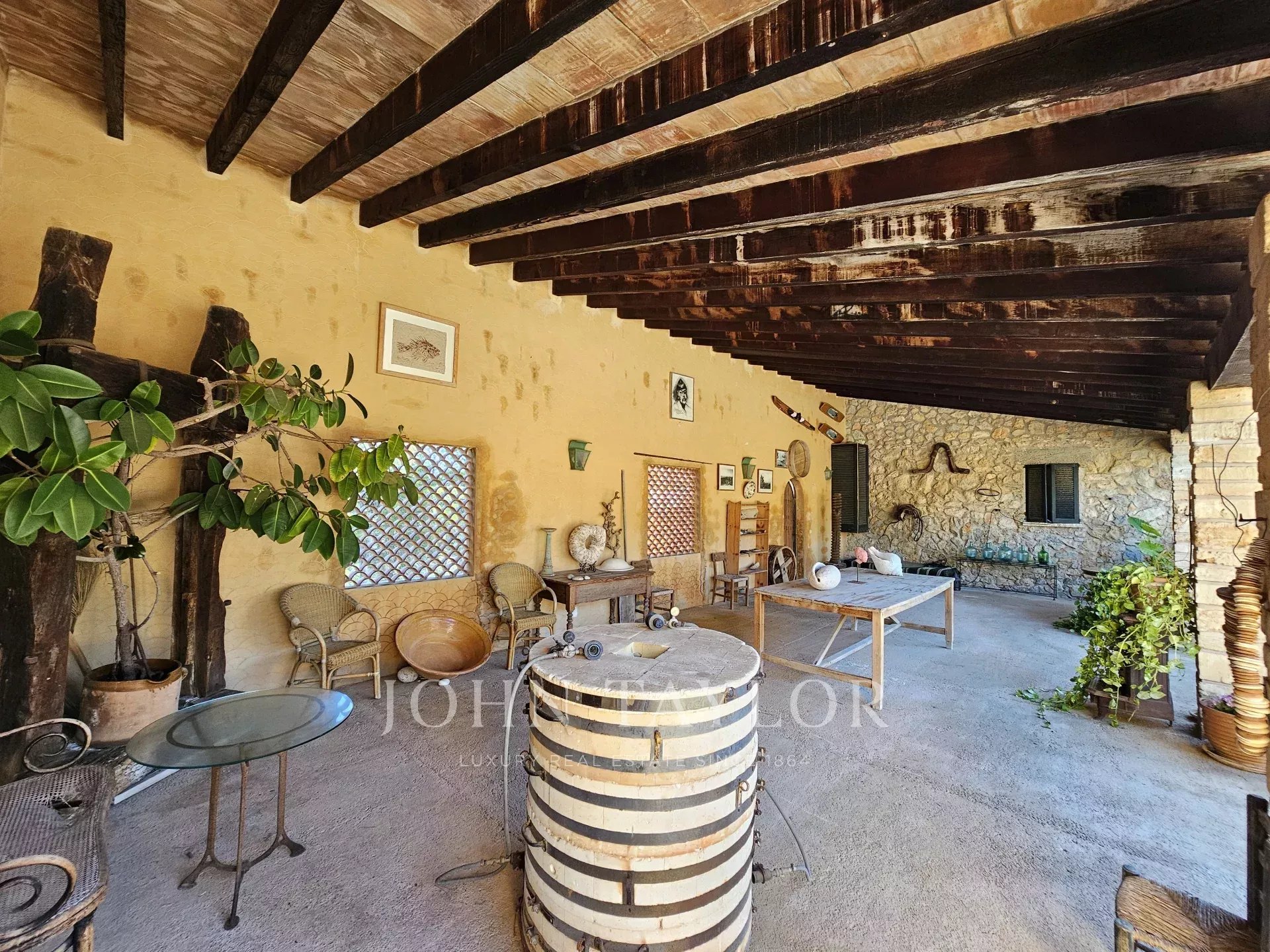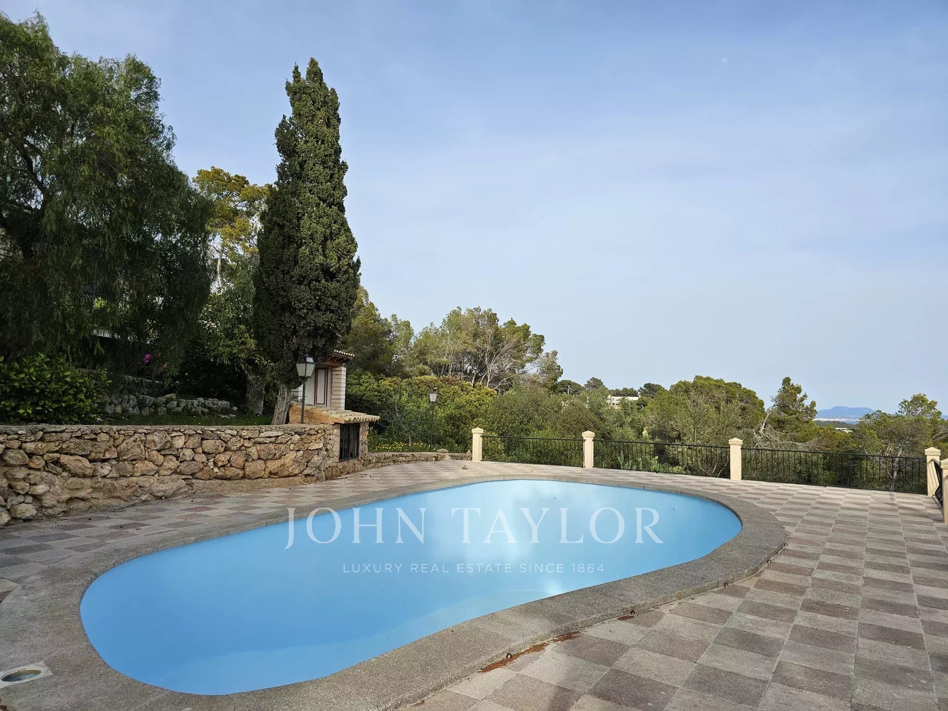Finca avec beaucoup de terrain et vue sur la mer près de Portals Nous. A seulement 5 minutes du célèbre Puerto Portals se trouve cette propriété de la Costa d'en Blanes à réformer. La finca se compose d'un corps principal avec salon, salle à manger et cuisine, d'une partie où se trouvent les chambres et d'une résidence pour les invités ou le personnel. Il y a également un patio confortable avec un porche. Il y a également une piscine et plusieurs terrasses.