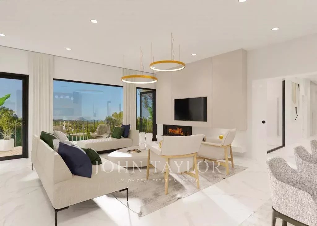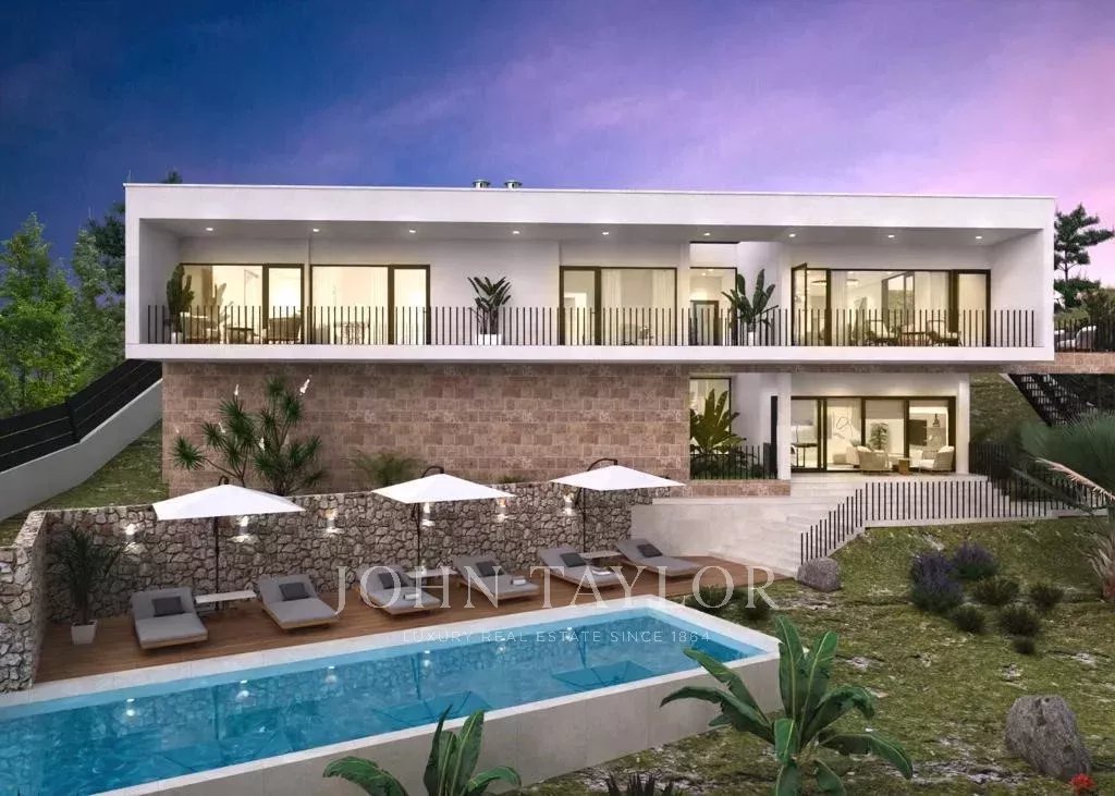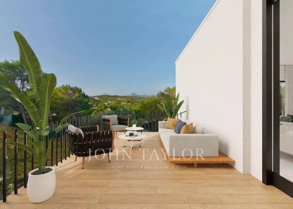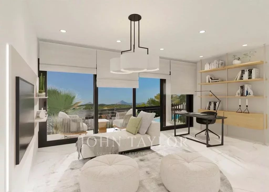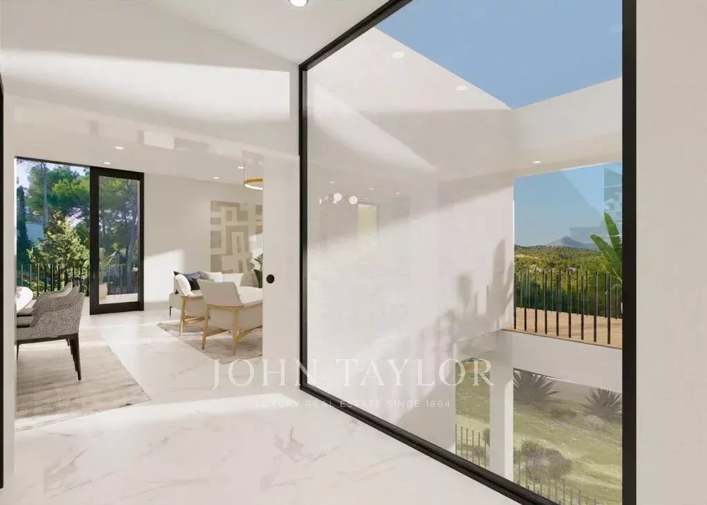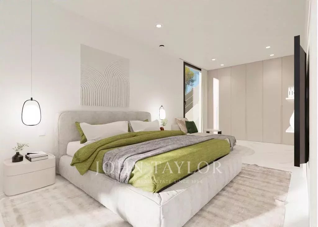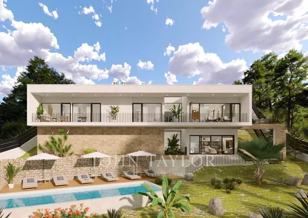 Villa moderne en construction à Costa de la Calma. Cette maison peut être livrée dans 2025. Elle est construite sur un terrain en pente en bordure d'une zone verte. Vous pourrez profiter de belles vues sur les pins et les montagnes. Les voitures sont garées au niveau de la rue et descendent ensuite pour accéder à la maison qui est située sur la pente naturelle du terrain. La maison se compose d'un salon/salle à manger, d'une cuisine entièrement équipée, d'une buanderie, d'un bureau, de 4 chambres et de 4 salles de bains. Il y aura plusieurs patios qui, avec les grandes fenêtres, donneront beaucoup de lumière à la maison. Les terrasses et le solarium à côté de la piscine vous permettront de profiter de la vie en plein air.