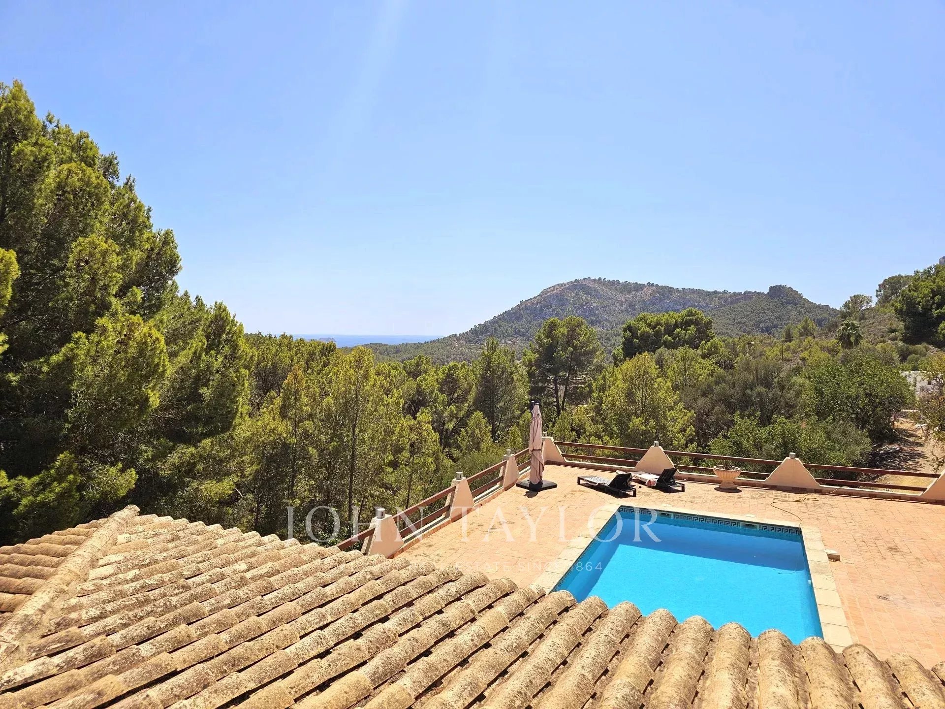 Construite en 1986 avec un solide savoir-faire, la propriété offre trois chambres spacieuses avec salle de bains, une chambre supplémentaire ou un bureau avec salle de bains, un chauffage central au fioul, la climatisation et un grand espace de rangement. La spacieuse terrasse orientée au sud offre une vue imprenable sur la mer et les montagnes, créant ainsi un cadre idéal pour la détente et les loisirs. Les deux piscines vous invitent à profiter du climat majorquin tout au long de l'année, tandis que l'agréable cheminée réchauffe les soirées plus fraîches. Situé dans un environnement tranquille, c'est une occasion unique d'acquérir une maison qui offre un confort immédiat et la possibilité de rénover selon les goûts personnels, créant une résidence exceptionnelle dans l'un des endroits les plus recherchés de Majorque.