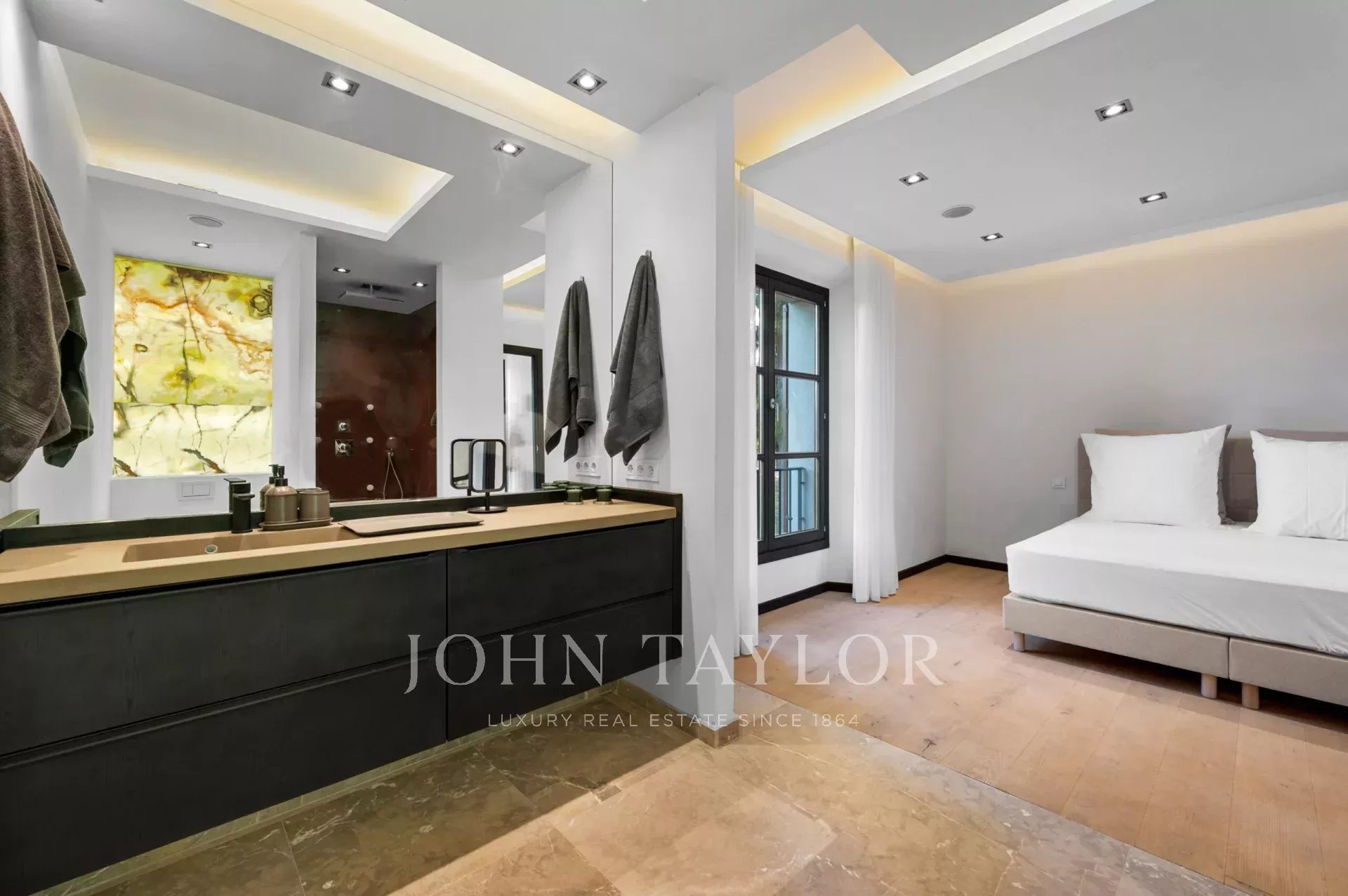 Cette propriété spectaculaire est située au cœur de la magnifique île de Majorque, à Montuïri. Elle offre une opportunité unique à la fois pour ceux qui recherchent une maison familiale luxueuse et pour ceux qui souhaitent faire un investissement judicieux dans le secteur de l'immobilier de luxe. La Finca, construite en 2008 et rénovée en 2023, dispose d'une licence de vacances depuis novembre 2018, ce qui en fait une option parfaite pour vivre et générer des revenus grâce aux locations de vacances. La surface construite est de 1 166 m², sur un terrain de 20 899 m², avec la maison principale occupant 537 m² répartis sur deux étages et un grand sous-sol. La maison comprend six chambres spacieuses, toutes équipées d'un réseau WLAN à haut débit et d'un système audio intelligent, ainsi que six salles de bains luxueuses. La maison dispose également d'un élégant bureau et d'une cave à vin en mezzanine. En plus de la maison principale, le domaine dispose d'un appartement d'amis séparé avec son propre salon, sa cuisine et sa salle de bains, idéal pour recevoir des amis et la famille en toute intimité. Tous les matériaux utilisés dans la construction de la maison sont haut de gamme, y compris les sols en pierre de Binissalem, et elle est équipée d'un système de climatisation, d'un chauffage par le sol et d'une pompe à chaleur, garantissant un confort optimal tout au long de l'année. Pour améliorer l'efficacité énergétique, la propriété dispose de 21 panneaux solaires, ce qui contribue à une faible consommation d'énergie. Elle dispose également d'un puits privé qui garantit un approvisionnement en eau indépendant. À l'extérieur, la propriété se distingue par son spectaculaire jardin paysager entouré de vastes terrasses, d'une luxueuse piscine et d'un lac artificiel qui ajoute une touche unique et relaxante à l'environnement. Il s'agit sans aucun doute d'un véritable joyau à Majorque, alliant modernité et tradition et offrant un environnement exclusif et privé.