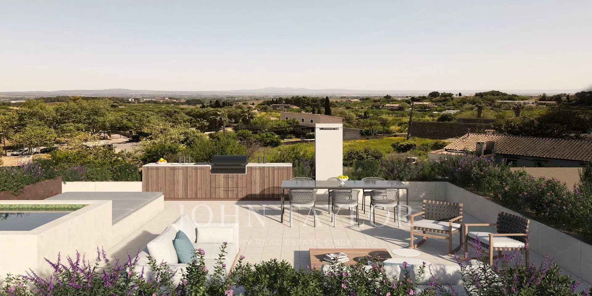 Dans l'une des zones les plus recherchées de l'île, Establiments, en raison de sa proximité avec Palma, de son environnement naturel, de sa tranquillité, de sa connectivité et de ses services, se trouve le terrain où sera construite cette belle maison. Ce nouveau projet sera réalisé par des promoteurs locaux qui ont une grande expérience et un succès avéré dans des projets antérieurs. Il s'agit ici d'une maison individuelle située sur un terrain avec jardin privé et piscine. L'espace extérieur est complété par une grande terrasse sur le toit avec une vue imprenable sur la campagne et même sur la mer. La maison dispose de 3 chambres à coucher, 3 salles de bains, un WC pour les invités, une buanderie, un parking pour 2 véhicules, ainsi qu'une cuisine ouverte, un salon et une salle à manger. Ses grands espaces intérieurs et extérieurs sont idéaux pour une utilisation quotidienne et pour partager avec la famille et/ou les amis. Le tout avec les meilleures qualités de matériaux et d'installations, d'appareils électriques, de sanitaires, etc. Il dispose d'un chauffage par le sol et d'une climatisation dans toutes les pièces. L'achèvement de la propriété est prévu pour le quatrième trimestre 2025.