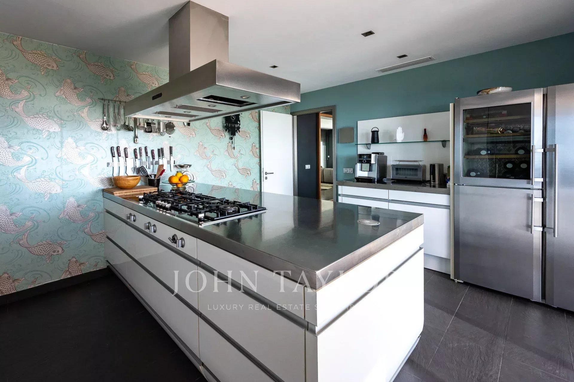 Récemment rénovée, la villa de 346 m² allie intérieurs élégants et vastes espaces extérieurs, conçus pour profiter pleinement de la lumière et du climat de Majorque. Le niveau principal comprend un salon lumineux avec cheminée, une suite parentale avec dressing et vue sur la mer, ainsi qu’une cuisine entièrement équipée — toutes les pièces ouvrant sur les terrasses.