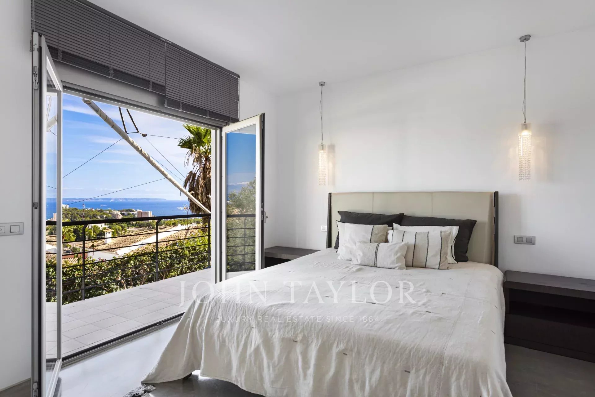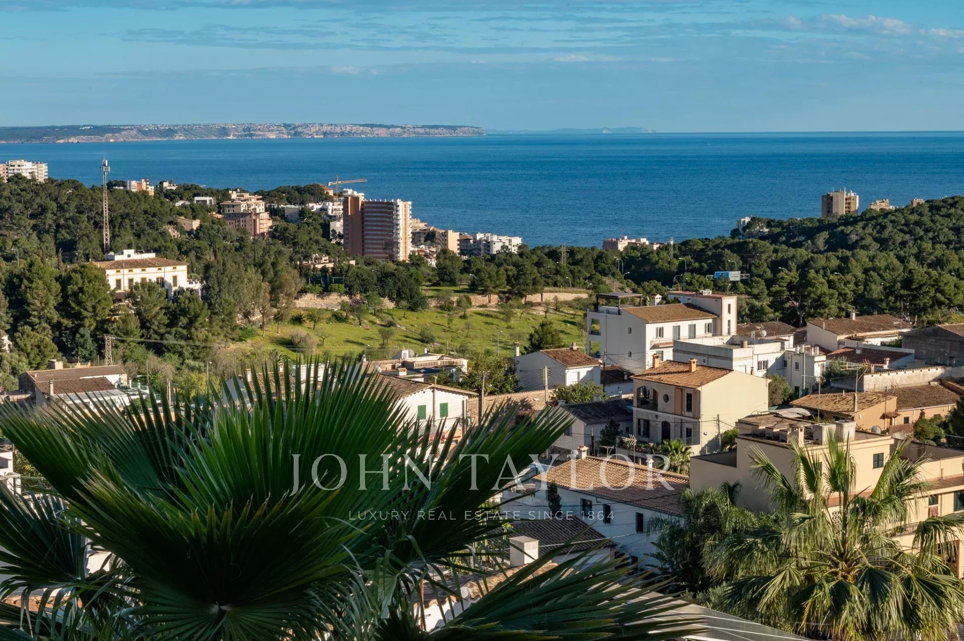 Située dans la partie haute de Génova, cette villa offre quelque chose de vraiment rare : une vue panoramique à couper le souffle sur la baie de Palma, le château de Bellver, l’île de Cabrera et la mer ouverte. Du lever du soleil à la clarté de la lune, le paysage se transforme sans cesse — un spectacle méditerranéen apaisant que l’on peut admirer depuis chaque terrasse.