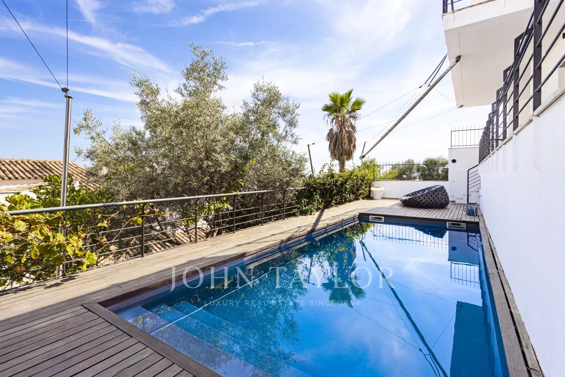 Avec des équipements modernes tels que la climatisation gainable, le chauffage central, le plancher chauffant dans les salles de bains et les panneaux solaires, c’est une maison conçue pour vivre toute l’année. Le jardin méditerranéen avec ses agrumes ajoute la touche finale — un rappel que la nature reste toujours présente, même si proche de la ville.