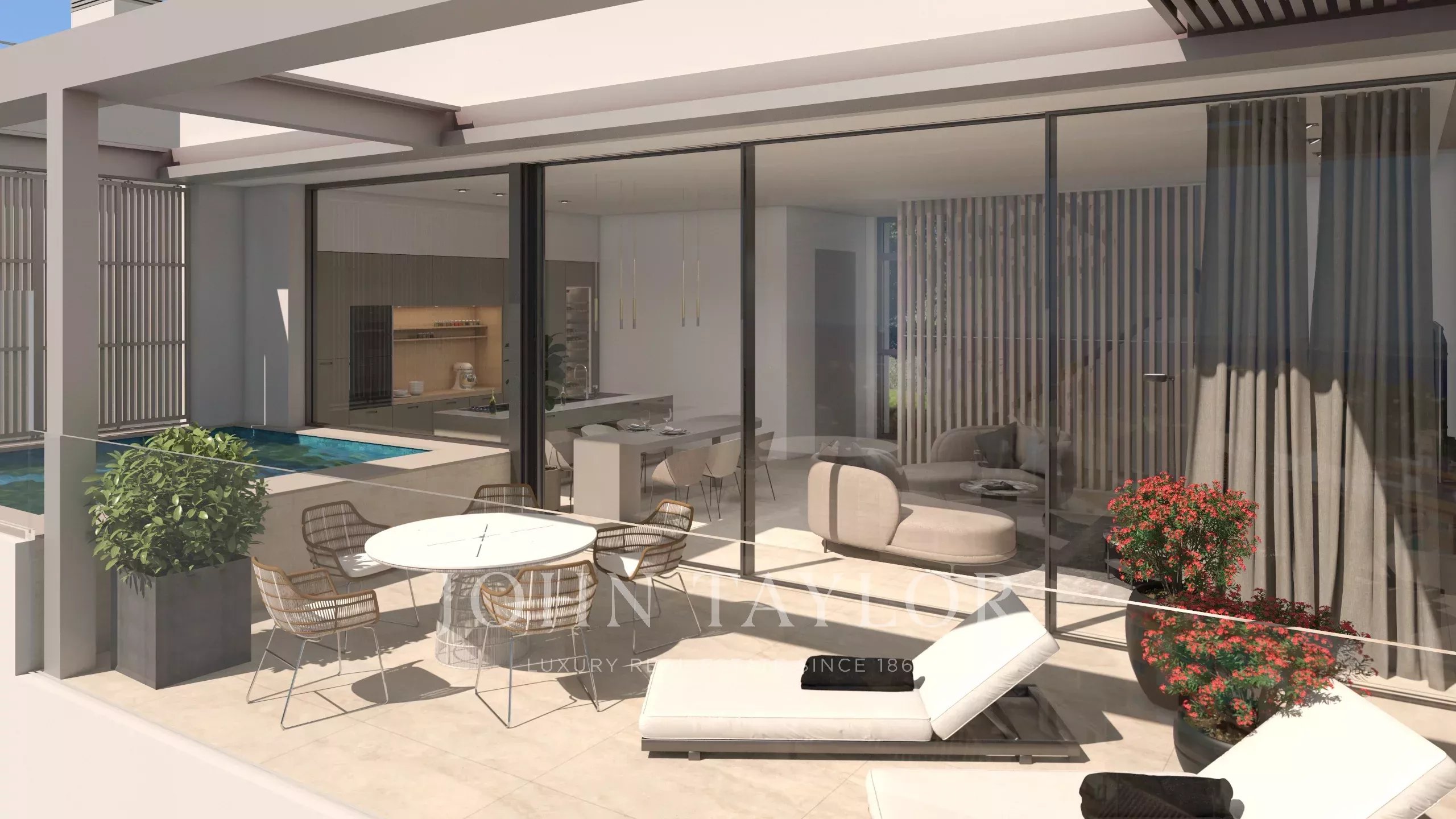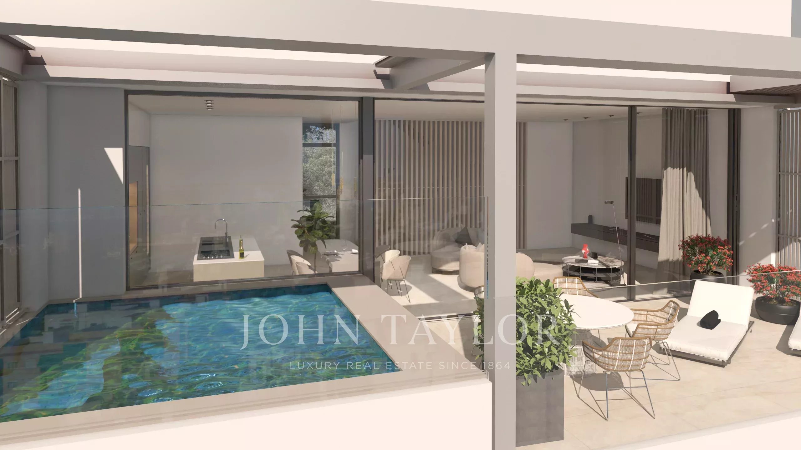 La propriété comprend une luxueuse suite parentale avec salle de bains privative et espace extérieur privé. De plus, il y a deux chambres pour la famille/les invités, chacune avec une salle de bain attenante. L'agencement a été soigneusement conçu pour offrir à la fois une vie de famille confortable et des conditions idéales pour accueillir des invités, avec des espaces flexibles qui peuvent également être utilisés comme un bureau à domicile ou une retraite privée. Des matériaux de haute qualité tels que la pierre naturelle, le parquet et des finitions haut de gamme rehaussent le caractère sophistiqué et intemporel de la résidence.