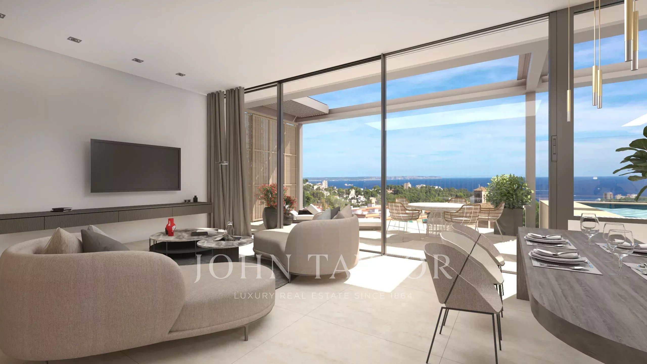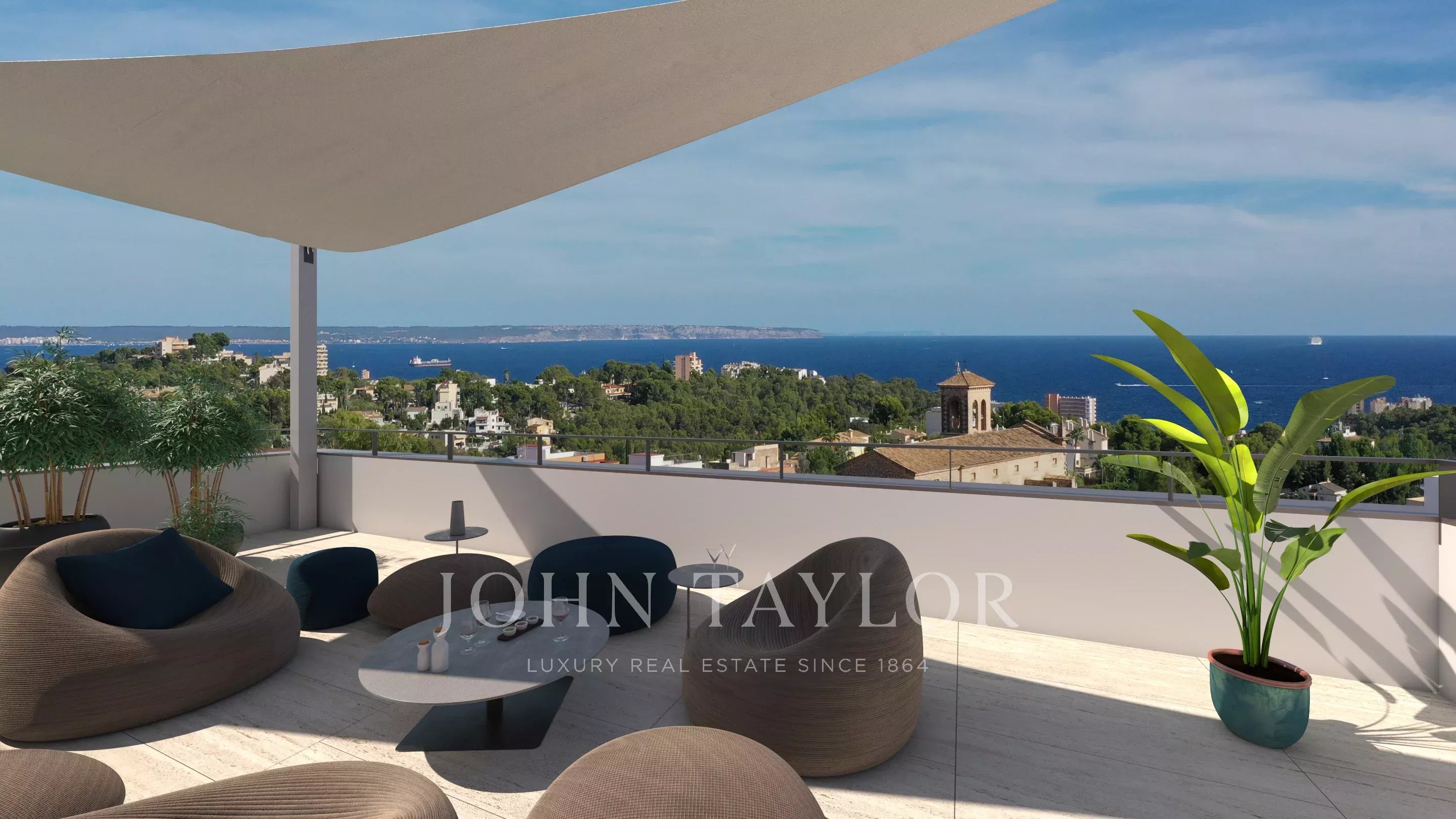 L'une des caractéristiques les plus remarquables de la villa est sa spectaculaire terrasse sur le toit, qui offre une intimité totale et une vue ininterrompue sur la baie. Cet espace extérieur exceptionnel constitue le cadre idéal pour se détendre, recevoir ou simplement profiter de la lumière et de l'atmosphère uniques qui caractérisent la vie à Majorque.