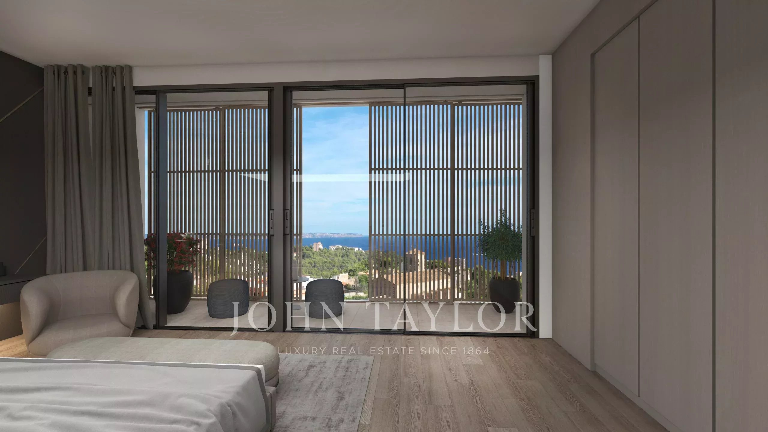 Perchée dans une position élevée et paisible au bout d'une impasse tranquille de Génova, cette exceptionnelle villa contemporaine offre des vues panoramiques à couper le souffle sur la baie de Palma. Conçue avec des lignes architecturales épurées et de généreuses fenêtres allant du sol au plafond, la propriété se fond parfaitement dans son environnement naturel, créant un sanctuaire raffiné et privé à quelques minutes seulement du centre animé de Palma.