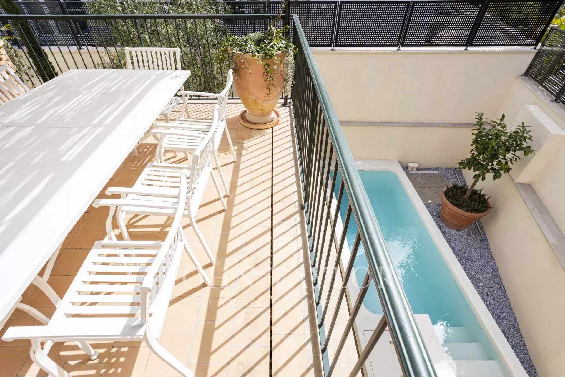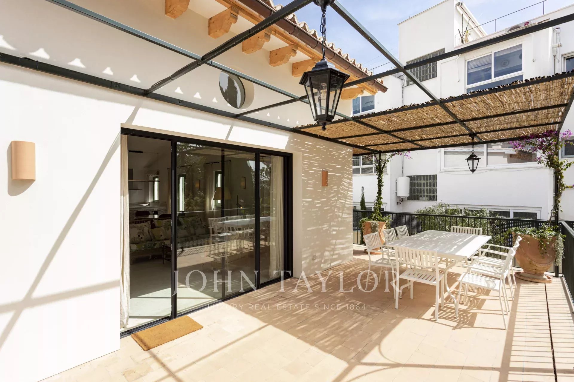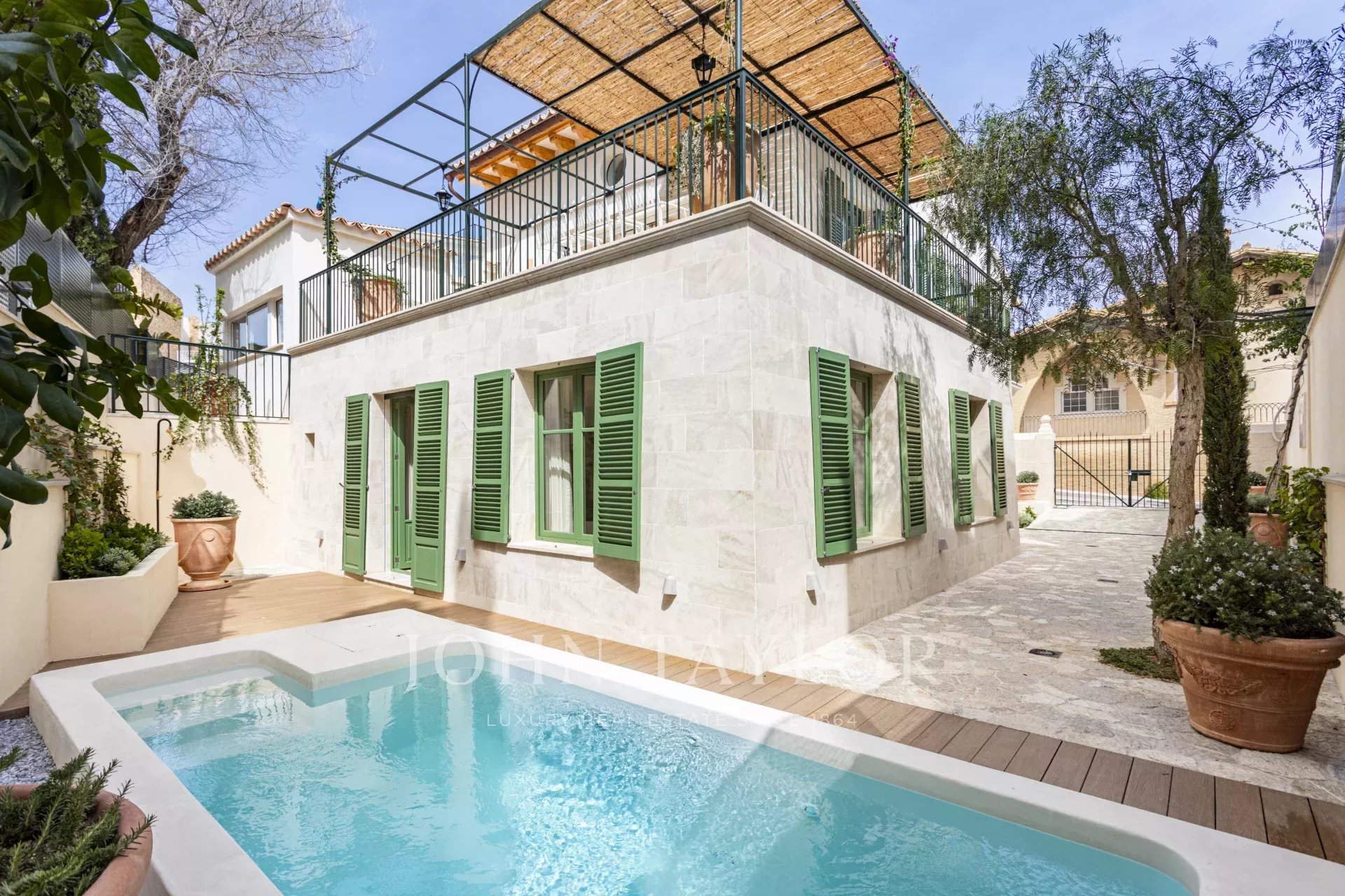 Cette maison spectaculaire située à San Agustín, Palma de Majorque, a été entièrement rénovée selon les normes de qualité les plus strictes. Située à côté de l'hôtel Maricel, l'un des endroits les plus exclusifs de la ville, cette propriété offre une combinaison parfaite de luxe, de confort et de technologie avancée. Avec 297 m² d'espace habitable entièrement rénové, la maison dispose de 2 chambres doubles et d'une chambre simple, toutes dotées de finitions de luxe. En outre, elle dispose de deux salons spacieux et lumineux conçus pour le confort et l'élégance, l'un d'entre eux étant doté d'une cuisine ouverte intégrée. Le grand garage de 54 m² peut être utilisé comme tel ou comme salle de sport, spa, salle de cinéma, ou tout autre espace supplémentaire selon vos besoins, et il dispose d'une allée supplémentaire et d'un parking privé. La propriété dispose également de deux terrasses extérieures et d'une terrasse sur le toit, cette dernière offrant une vue partielle sur la mer, ainsi que d'une magnifique piscine saline en microciment au rez-de-chaussée, offrant une oasis privée. La maison a été conçue avec des matériaux naturels haut de gamme tels que le bois de mélèze et d'iroko, le marbre Perlino et la pierre de Santanyi et Binissalem. Le carrelage des salles de bains, peint à la main en Italie, ainsi que l'utilisation de microciment, ajoutent une touche de sophistication et de style. En termes de confort et de technologie, la propriété est équipée d'un chauffage par le sol et d'un système de climatisation pour garantir une température parfaite à tout moment de l'année. L'efficacité énergétique est optimisée grâce à une pompe à chaleur pour l'eau chaude sanitaire, un adoucisseur d'eau et son propre système de surpression. En outre, la propriété comprend un système domotique avancé pour l'éclairage et la climatisation, ainsi que la pré-installation d'une alarme, d'un chargeur électrique et d'un système d'irrigation automatique pour maintenir le jardin parfaitement entretenu.