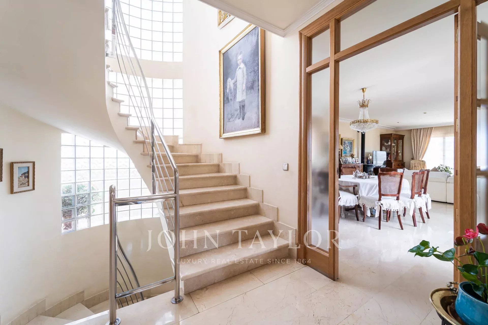 La propriété bénéficie d'un emplacement calme dans l'un des quartiers résidentiels les plus attrayants de Palma, Son Dureta. À quelques minutes de certaines des meilleures écoles de Majorque et du centre de Palma, la propriété offre beaucoup d'espace pour toute la famille et de belles vues panoramiques sur la ville et la cathédrale. Construite en 2000 par les propriétaires actuels, la villa est distribuée sur 3 étages, au rez-de-chaussée se trouvent le salon-salle à manger et la cuisine, tous deux avec un accès direct à une grande terrasse, d'où vous pouvez accéder à la piscine et au jardin. Le deuxième étage dispose de 4 chambres à coucher, 3 salles de bains et une deuxième grande terrasse avec accès à la suite parentale. Le sous-sol, très lumineux et spacieux, dispose d'un garage pour 4 voitures et d'un espace supplémentaire séparé, idéal pour un bureau, une salle de sport ou même un espace pour les invités, car cet étage dispose également d'une salle de bain complète.