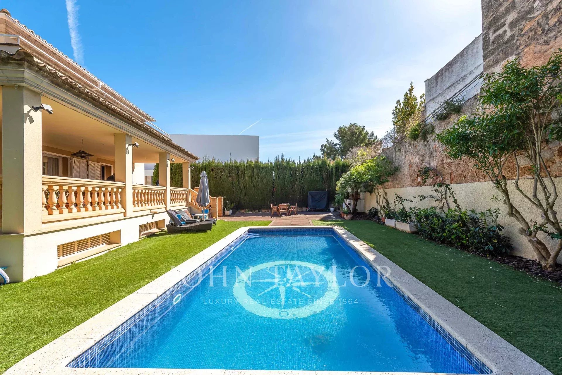 Maison individuelle spacieuse et accueillante dans un quartier privilégié de Palma, Son Puig. A proximité de trois terrains de golf réputés, d'écoles nationales et internationales renommées, d'un accès facile aux routes principales et à seulement 10 minutes du centre de Palma.
