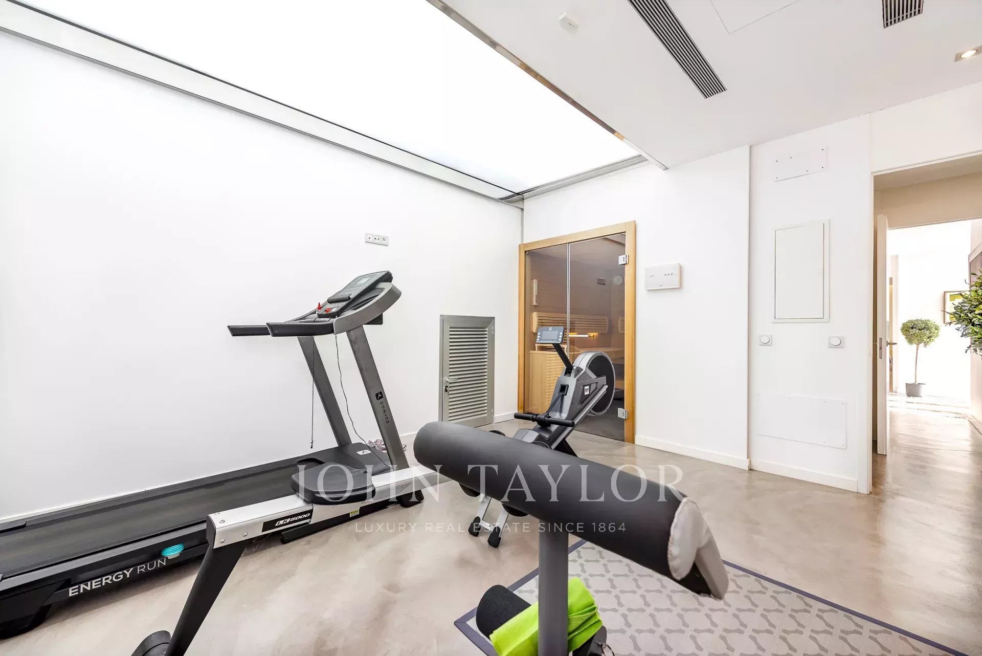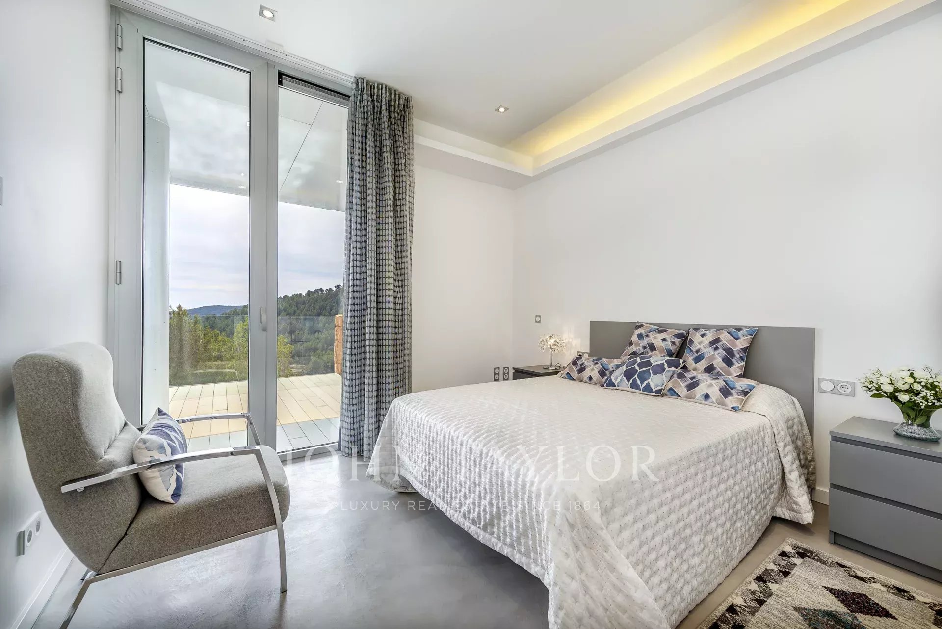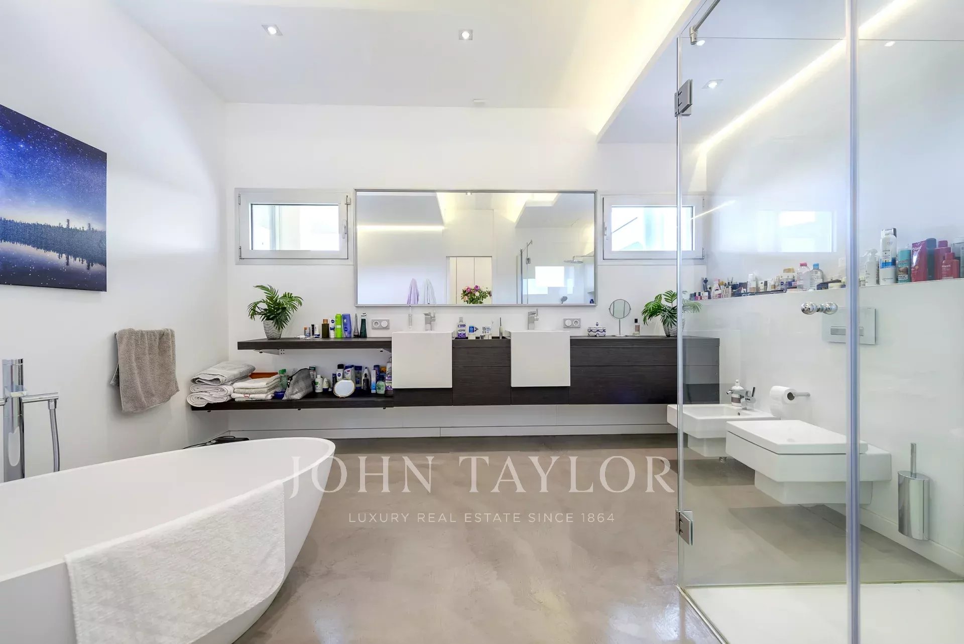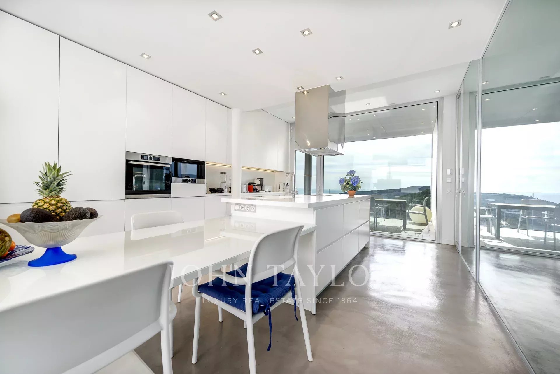 Cette superbe propriété, située dans une rue calme se terminant en cul de sac, offre une expérience de vie unique. Avec des vues panoramiques sur la mer et les montagnes, chaque coin de cette villa a été conçu pour apporter tranquillité et beauté. La villa dispose de 5 chambres et de 5 salles de bains, offrant un espace ample et confortable pour la vie de tous les jours et pour recevoir des invités. En outre, elle dispose d'un studio pour ceux qui recherchent un espace privé pour travailler à domicile, d'une salle de cinéma et d'une salle de sport entièrement équipée pour rester en forme sans quitter la maison. Détendez-vous et revitalisez-vous dans le sauna de la propriété, ou profitez de moments de sérénité dans l'espace chill out avec des vues magnifiques, parfaites pour profiter des couchers de soleil spectaculaires et la villa dispose d'une piscine à débordement. La modernité et l'efficacité énergétique sont des éléments clés de cette propriété, comme les panneaux solaires, le chargeur de voiture électrique, l'adoucisseur d'eau et le système d'osmose. Le système domotique facilite le contrôle et la gestion de la maison, tandis que l'ascenseur permet d'accéder à toutes les zones. Le chauffage/refroidissement par le sol assure un confort optimal à toutes les saisons de l'année, créant une atmosphère douillette et agréable dans tous les coins de la villa.