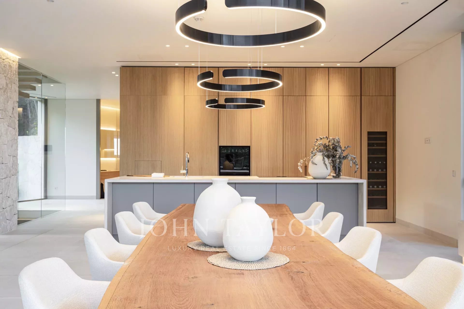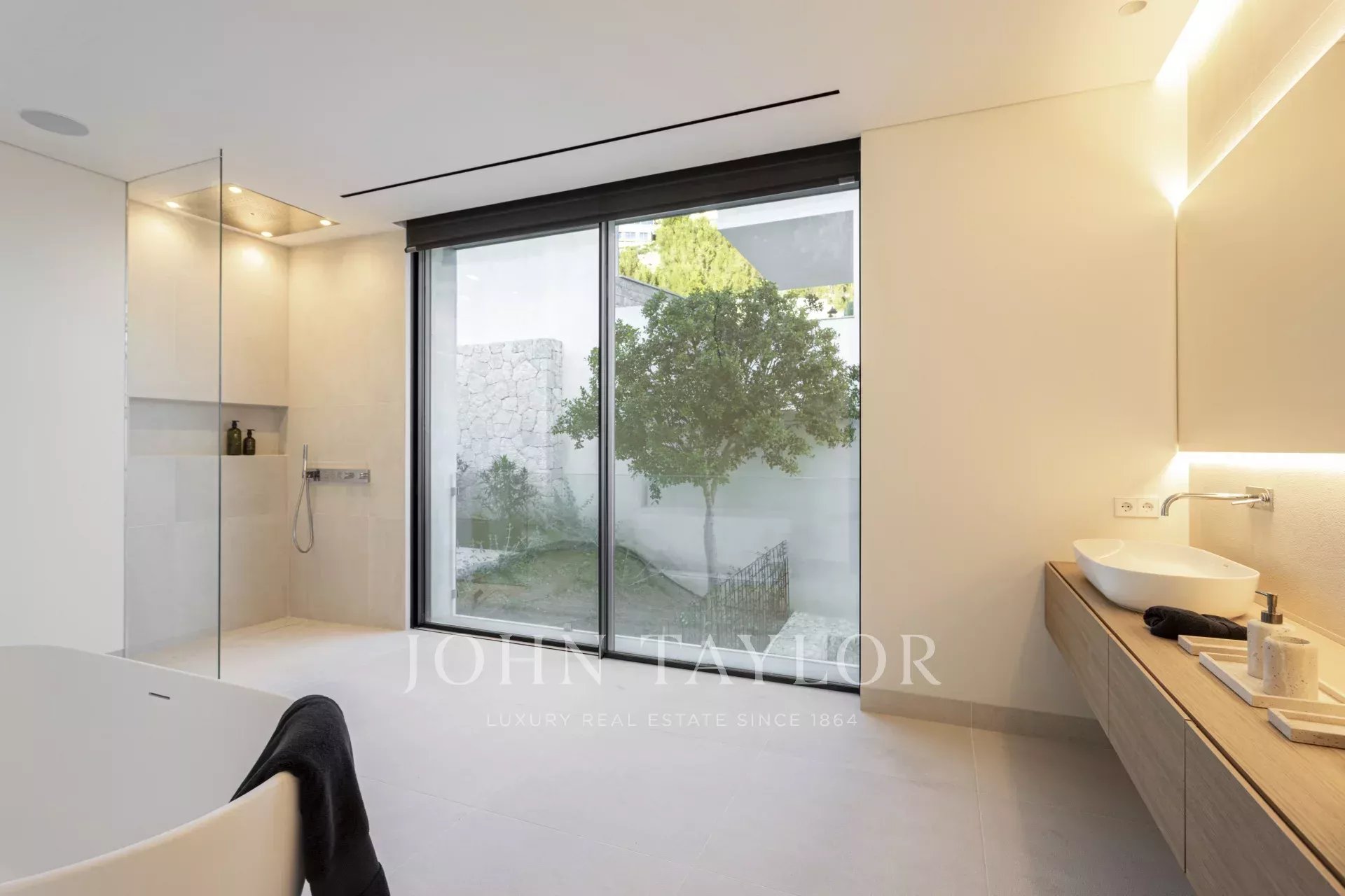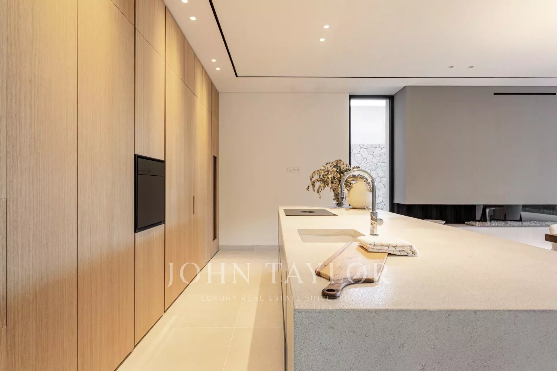 Spécifications haut de gamme : Chauffage par le sol alimenté par une pompe à chaleur. Climatisation Daikin avec contrôle individuel des pièces. Système de sécurité avancé avec détecteurs de mouvement et de fenêtres. Système audio intégré, sol en pierre naturelle et parquet en chêne dans les chambres. Ascenseur KONE pour un accès sans effort à tous les niveaux. Une cheminée au gaz et deux places de parking dans le garage.