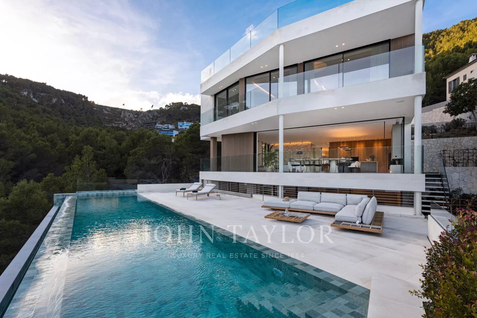 Son Vida - l'incarnation du style de vie luxueux à Majorque - a été mentionné pour la première fois au 13ème siècle. Le château mentionné est aujourd'hui un hôtel célèbre. Le site était à l'origine une zone agricole et a été développé par la famille Vida. Aujourd'hui, il s'agit d'une communauté fermée comprenant plusieurs terrains de golf, deux hôtels cinq étoiles et un large éventail de propriétés magnifiques offrant une vue imprenable sur les montagnes environnantes et la baie de Palma. Elle a attiré des visiteurs célèbres et des membres de la famille royale et a été la résidence de célébrités, d'amateurs de golf et d'architecture. Il est facile d'accéder à toutes les commodités telles que les événements culturels, les cinémas, les magasins, les centres sportifs et médicaux, et il n'est qu'à un jet de pierre de la capitale Palma. Les plages célèbres et leurs clubs se trouvent à une courte distance en voiture et l'aéroport n'est qu'à 15 minutes, ce qui rend la ville attrayante pour les navetteurs. Son Vida est divisé en deux parties, l'une plus récente et l'autre plus ancienne. Dans le nouveau Son Vida, vous trouverez de superbes villas à l'architecture puriste et moderne et, dans la partie plus ancienne, des villas de style méditerranéen plus classique autour des terrains de golf. Il y en a donc pour tous les goûts dans la sélection de propriétés exclusives de cette enclave unique.