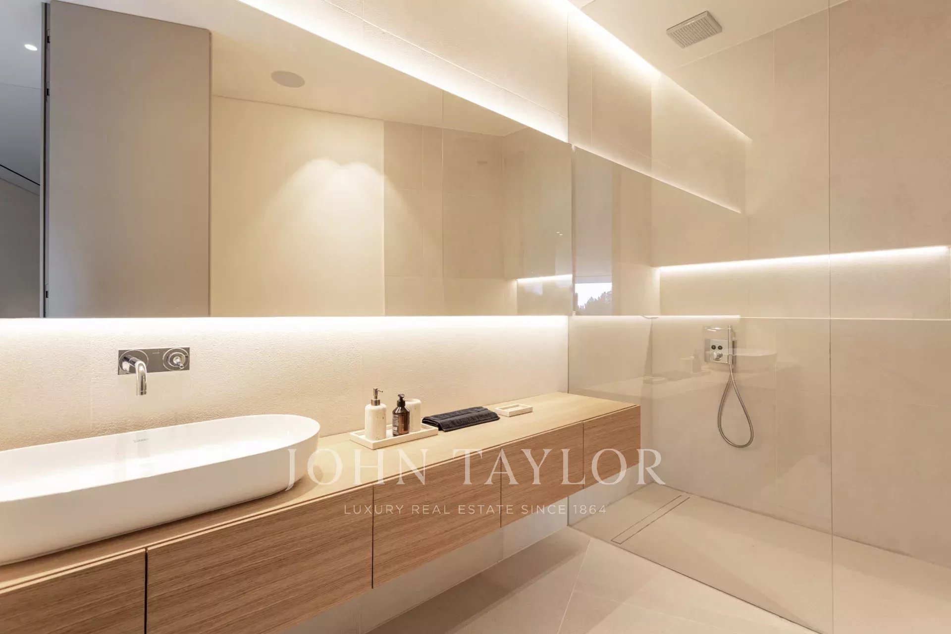 Le demi sous-sol : Un niveau naturellement éclairé comprenant une chambre double avec salle de bain attenante, une cave à vin climatisée, une buanderie et une pièce spacieuse de 50 m² parfaite pour une salle de sport.