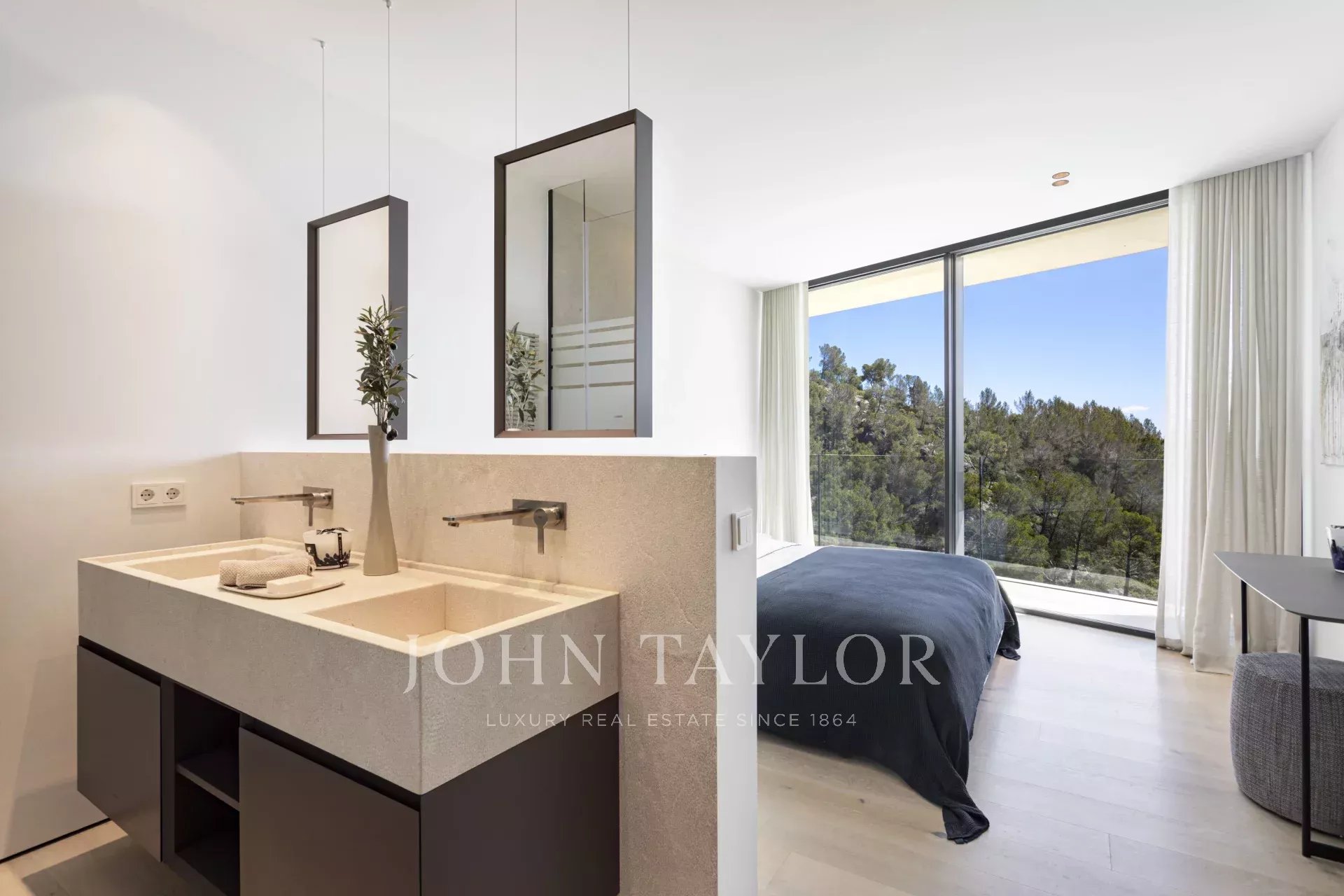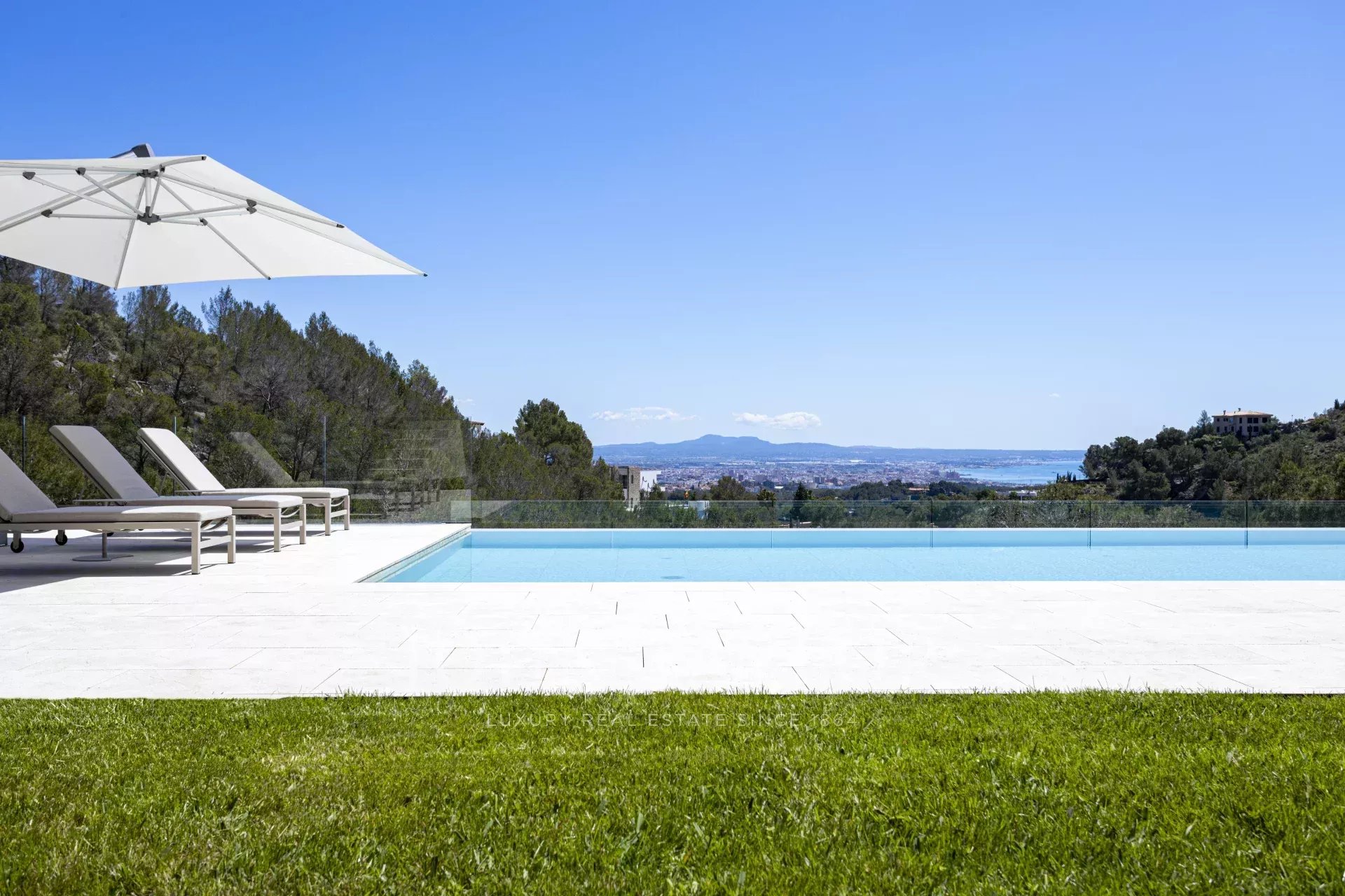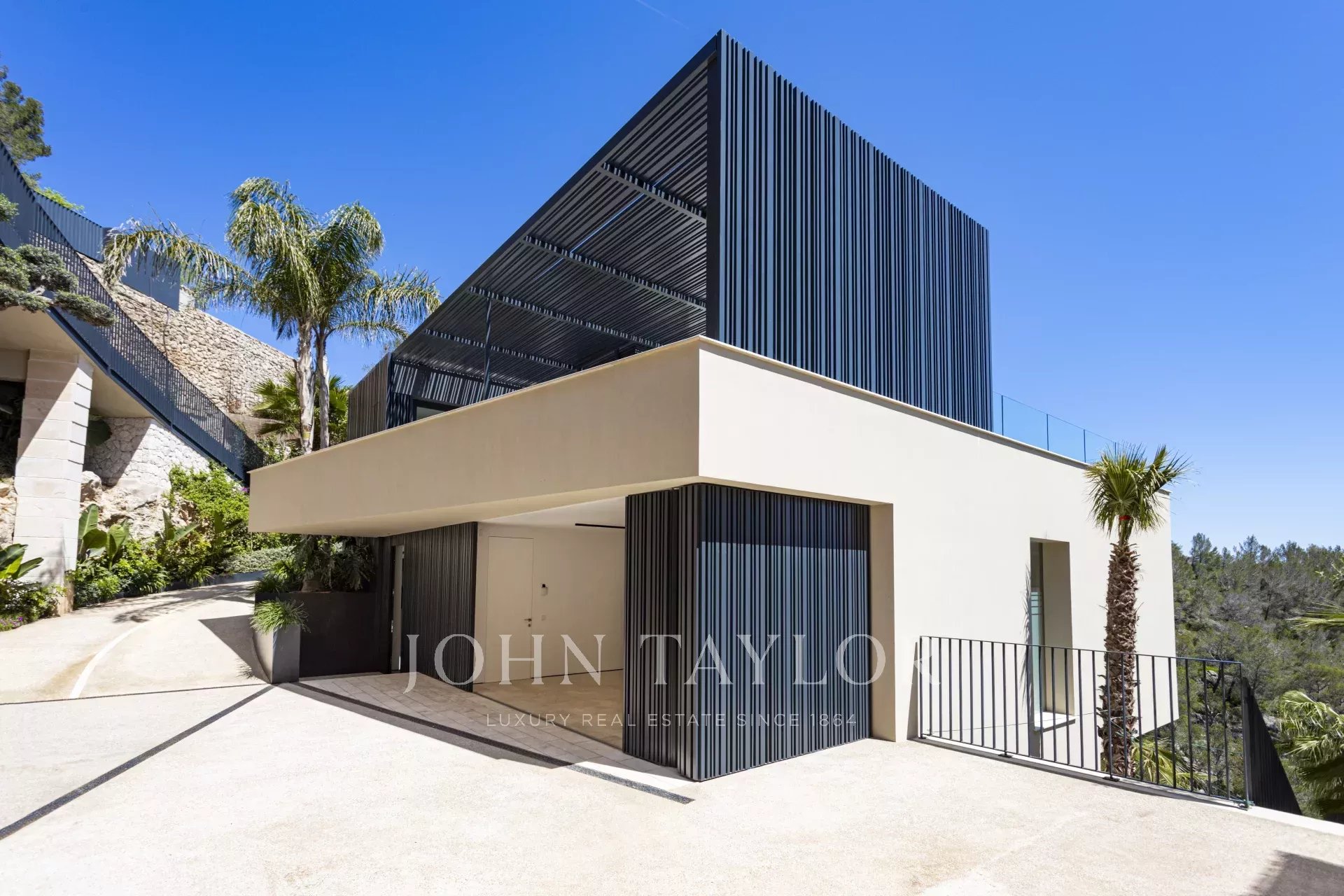 Nous vous présentons cette villa de luxe exclusive nouvellement construite à Son Vida, l'un des quartiers résidentiels les plus prestigieux de Palma de Majorque. Conçue pour offrir un maximum de confort et de style, cette propriété unique combine une architecture contemporaine avec des matériaux haut de gamme et des vues spectaculaires sur la mer et la ville. Depuis son emplacement surélevé, cette impressionnante villa offre des vues panoramiques s'étendant du bleu de la Méditerranée à la ligne d'horizon de Palma. Le salon ouvert avec cheminée s'intègre harmonieusement à la cuisine ouverte et à la salle à manger, parfaites pour les réunions et les occasions spéciales. En outre, une kitchenette fonctionnelle offre un espace de rangement et de travail supplémentaire. L'espace bien-être comprend un élégant sauna et un espace polyvalent idéal pour une salle de sport privée, faisant de cette villa un véritable havre de détente et de confort. Le jardin paysager manucuré entoure une grande piscine privée, idéale pour profiter du climat majorquin tout au long de l'année. La villa comprend 5 chambres spacieuses et 6 salles de bains complètes, toutes conçues dans un style sophistiqué et avec des finitions de haute qualité. Il y a un appartement séparé pour les invités avec son propre salon, sa cuisine, sa chambre et sa salle de bains : l'équilibre parfait entre l'intimité et l'hospitalité. La propriété comprend une magnifique terrasse sur le toit avec des vues panoramiques et la possibilité d'installer une cuisine extérieure, idéale pour les repas en plein air au coucher du soleil. Il y a également un ascenseur et un monte-charge pour faciliter l'accès entre les étages. La villa est vendue entièrement meublée avec du mobilier design de Terraza Balear, réputé pour son élégance et son confort. La villa dispose d'un garage privé pour deux véhicules, ainsi que d'un parking extérieur supplémentaire, garantissant suffisamment d'espace pour les résidents et les invités.