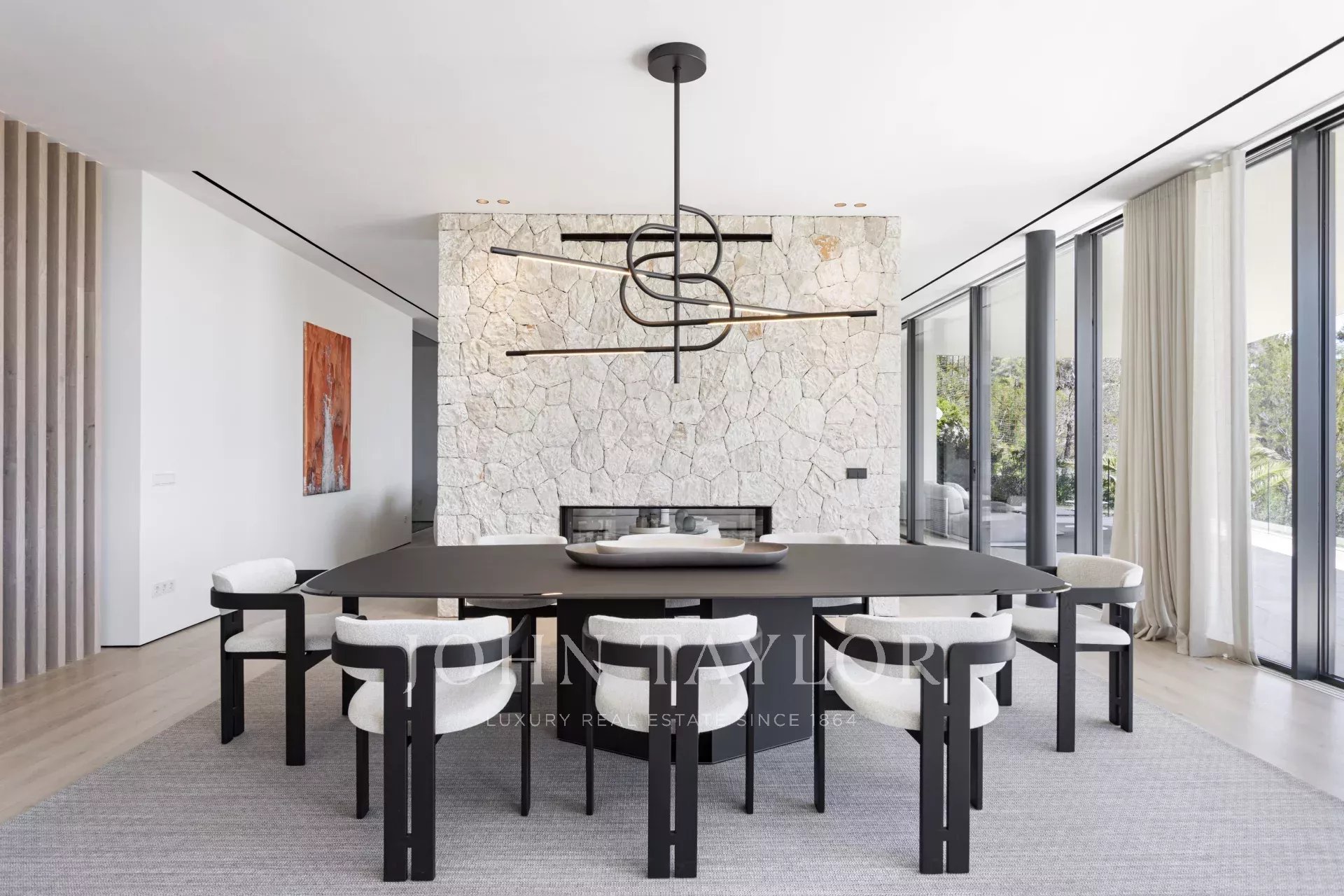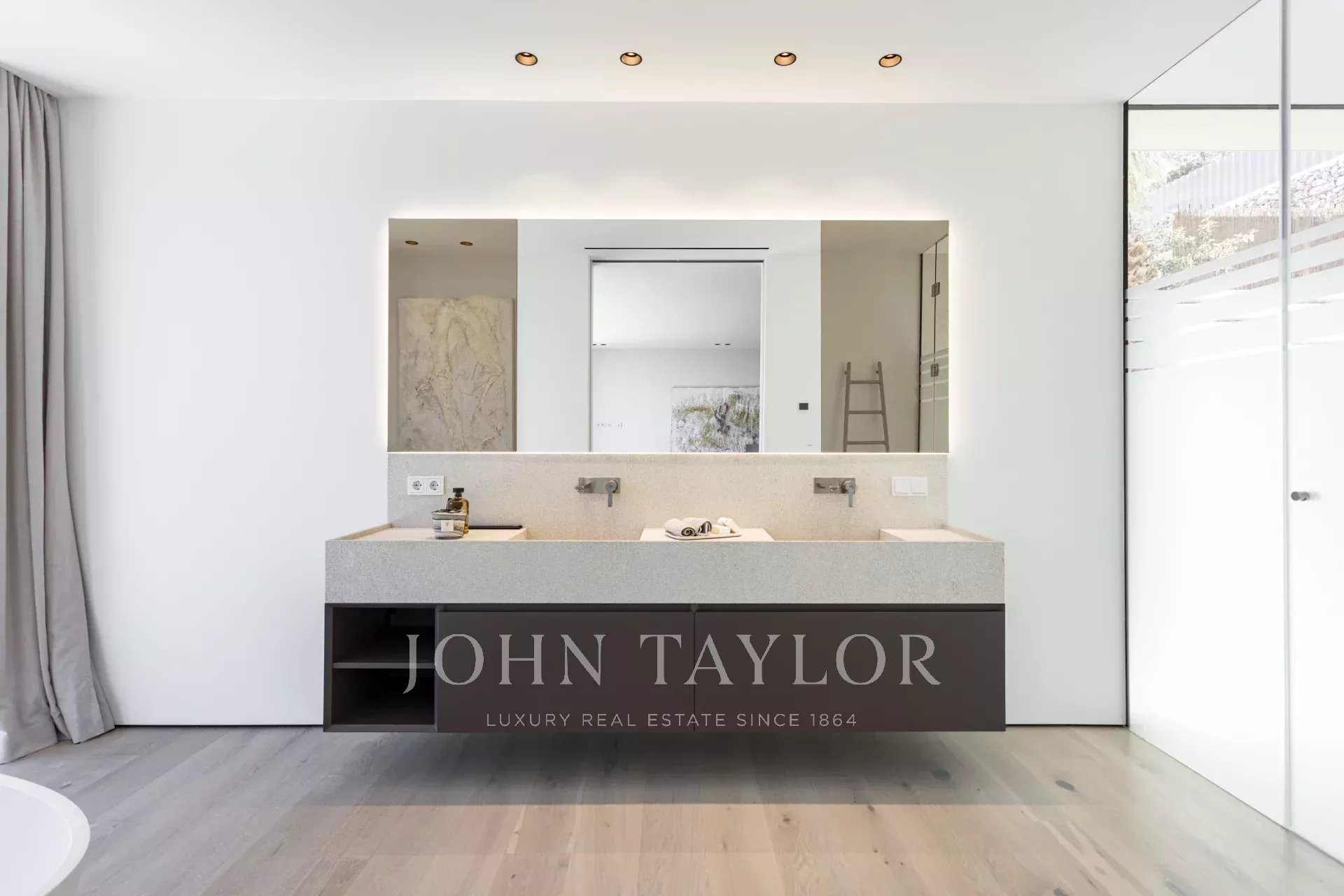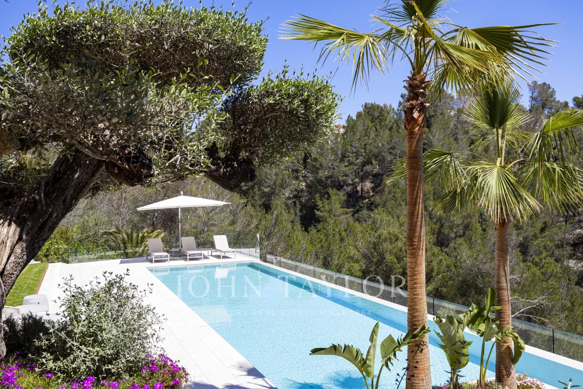 Nous vous présentons cette villa de luxe exclusive nouvellement construite à Son Vida, l'un des quartiers résidentiels les plus prestigieux de Palma de Majorque. Conçue pour offrir un maximum de confort et de style, cette propriété unique combine une architecture contemporaine avec des matériaux haut de gamme et des vues spectaculaires sur la mer et la ville. Depuis son emplacement surélevé, cette impressionnante villa offre des vues panoramiques s'étendant du bleu de la Méditerranée à la ligne d'horizon de Palma. Le salon ouvert avec cheminée s'intègre harmonieusement à la cuisine ouverte et à la salle à manger, parfaites pour les réunions et les occasions spéciales. En outre, une kitchenette fonctionnelle offre un espace de rangement et de travail supplémentaire. L'espace bien-être comprend un élégant sauna et un espace polyvalent idéal pour une salle de sport privée, faisant de cette villa un véritable havre de détente et de confort. Le jardin paysager manucuré entoure une grande piscine privée, idéale pour profiter du climat majorquin tout au long de l'année. La villa comprend 5 chambres spacieuses et 6 salles de bains complètes, toutes conçues dans un style sophistiqué et avec des finitions de haute qualité. Il y a un appartement séparé pour les invités avec son propre salon, sa cuisine, sa chambre et sa salle de bains : l'équilibre parfait entre l'intimité et l'hospitalité. La propriété comprend une magnifique terrasse sur le toit avec des vues panoramiques et la possibilité d'installer une cuisine extérieure, idéale pour les repas en plein air au coucher du soleil. Il y a également un ascenseur et un monte-charge pour faciliter l'accès entre les étages. La villa est vendue entièrement meublée avec du mobilier design de Terraza Balear, réputé pour son élégance et son confort. La villa dispose d'un garage privé pour deux véhicules, ainsi que d'un parking extérieur supplémentaire, garantissant suffisamment d'espace pour les résidents et les invités.