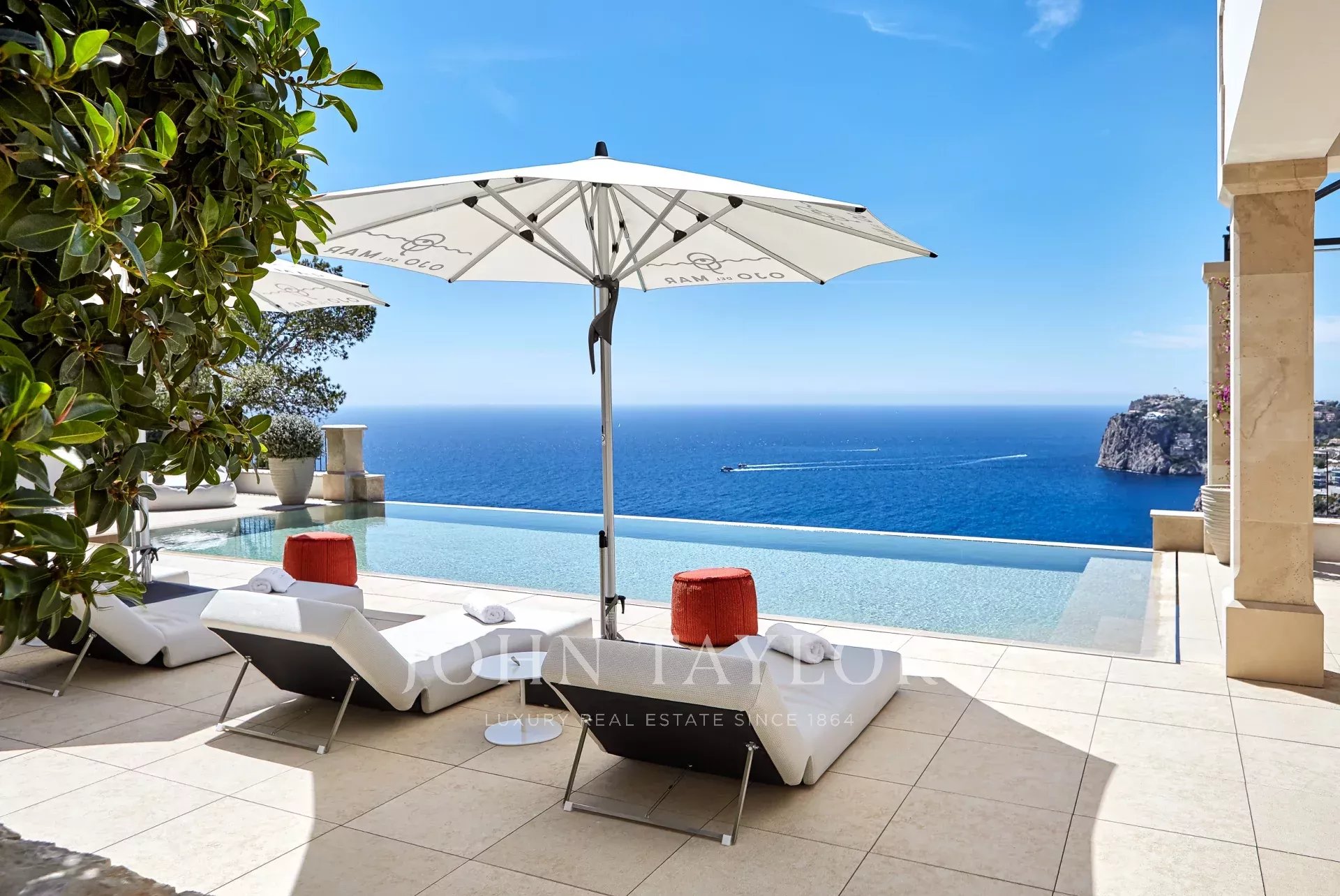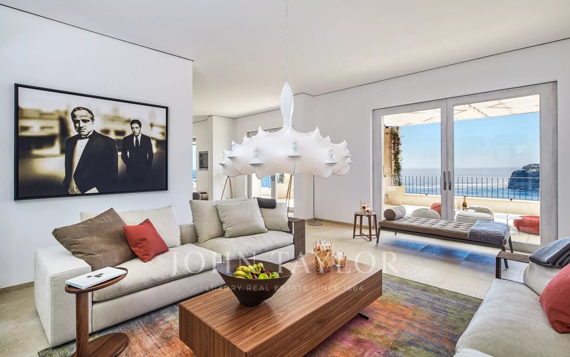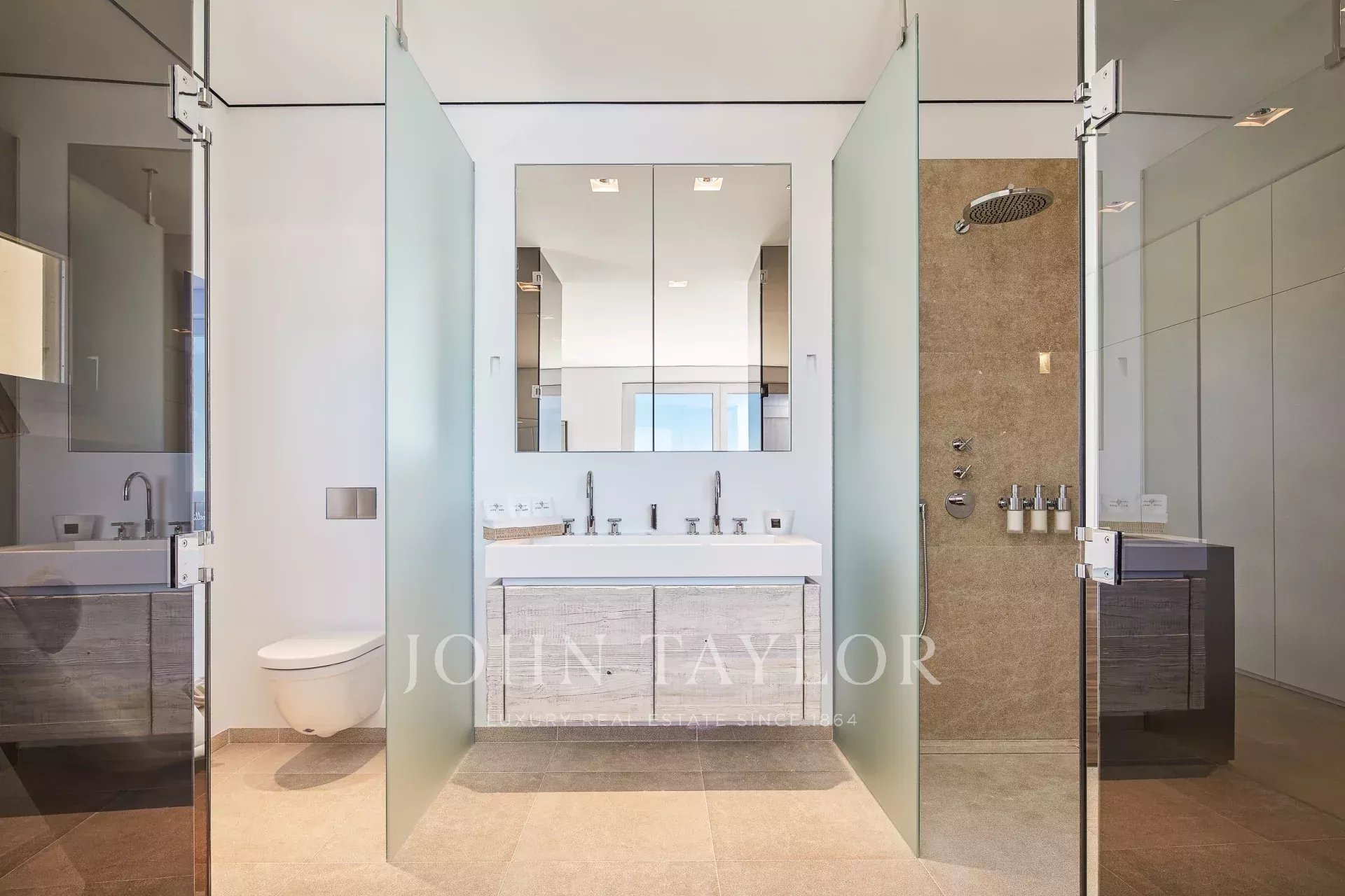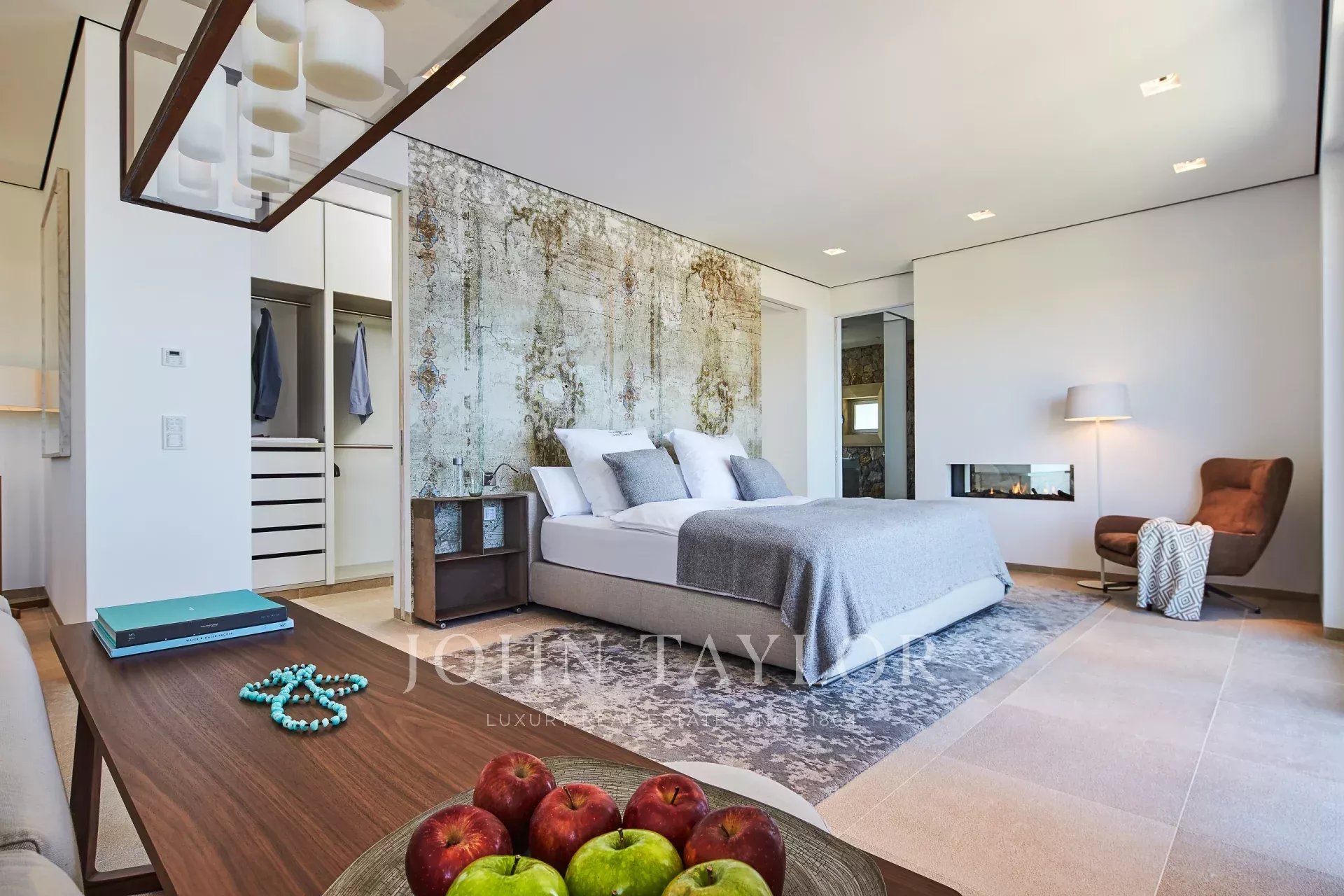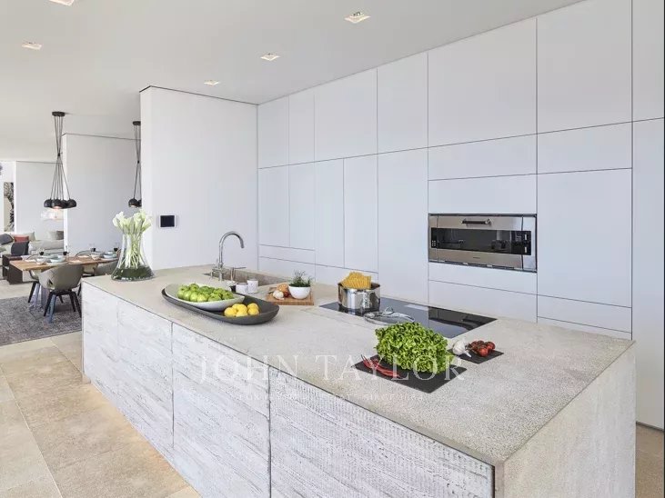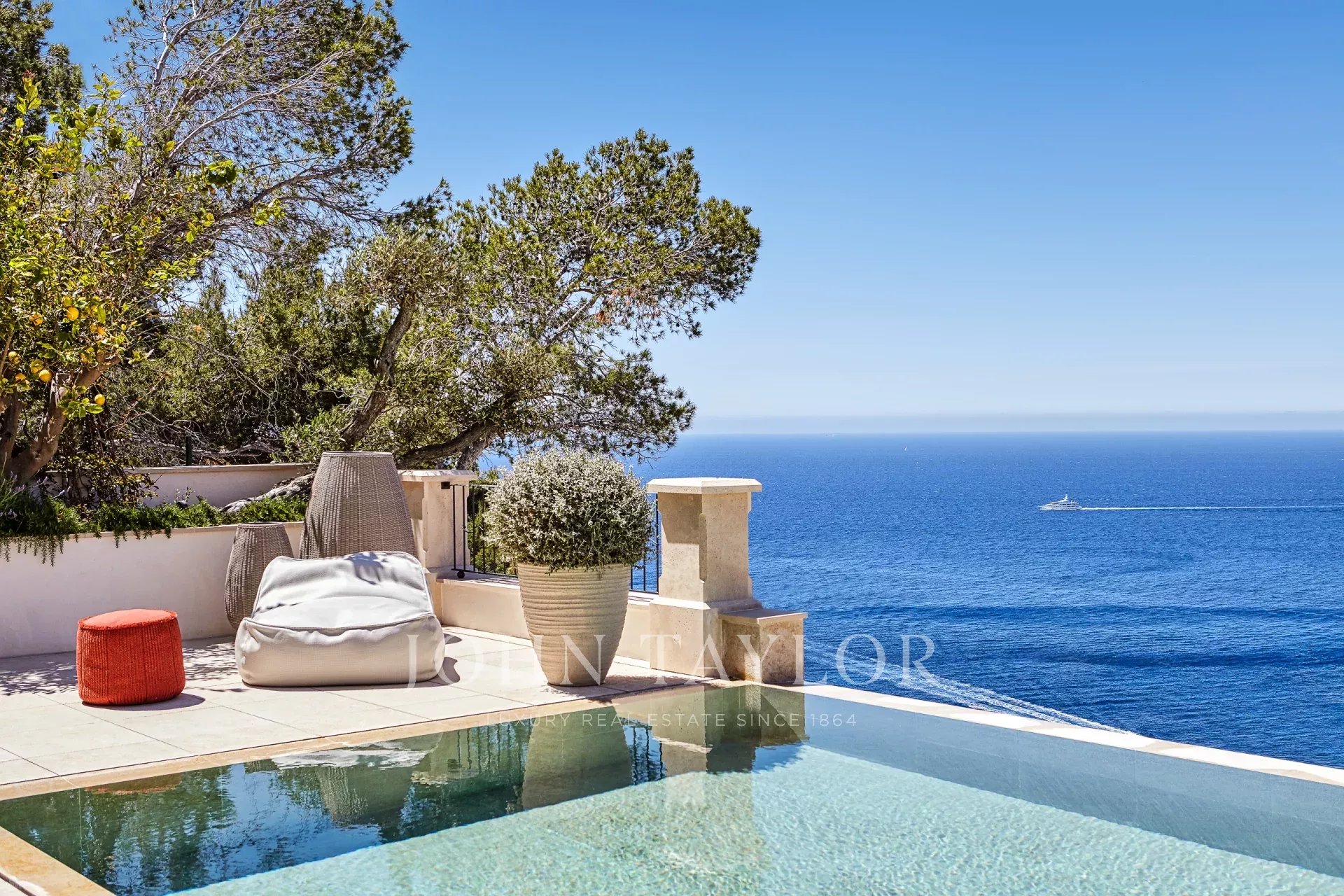 Cette luxueuse propriété est située dans un endroit recherché au-dessus de la baie de Cala Llamp et offre des vues panoramiques sur la mer à couper le souffle. La villa a une surface construite de 700m2 sur trois niveaux. Au rez-de-chaussée, un élégant hall d'entrée mène au salon de télévision, au salon, à la salle à manger et à la cuisine. L'espace de vie spacieux se prolonge à travers les pergolas sur les terrasses, où se trouvent deux cuisines extérieures avec des grilles de barbecue et une grande table à manger, ainsi qu'une salle de bains. La piscine à débordement de 60 m2 est un autre point fort. L'espace extérieur est conçu pour vous permettre de profiter parfaitement du climat méditerranéen. L'étage supérieur est accessible par l'ascenseur ou par l'escalier élégamment éclairé, où se trouve le coin nuit. Il se compose de deux chambres avec salle de bains privative et d'une confortable suite parentale. Cette dernière se compose d'une antichambre, d'un espace de couchage spacieux et d'une luxueuse salle de bains avec baignoire dans la baie vitrée. Au sous-sol, en plus du garage de 100m2, qui offre de l'espace pour au moins 5 voitures, il y a une bodega, une zone de fitness avec sauna, un home cinéma, une chambre de service avec salle de bain en-suite, une autre salle de bain, une buanderie, une salle de service et une salle de stockage. La propriété sera vendue avec le mobilier.