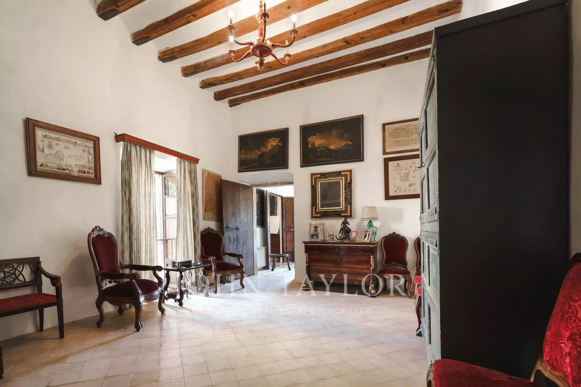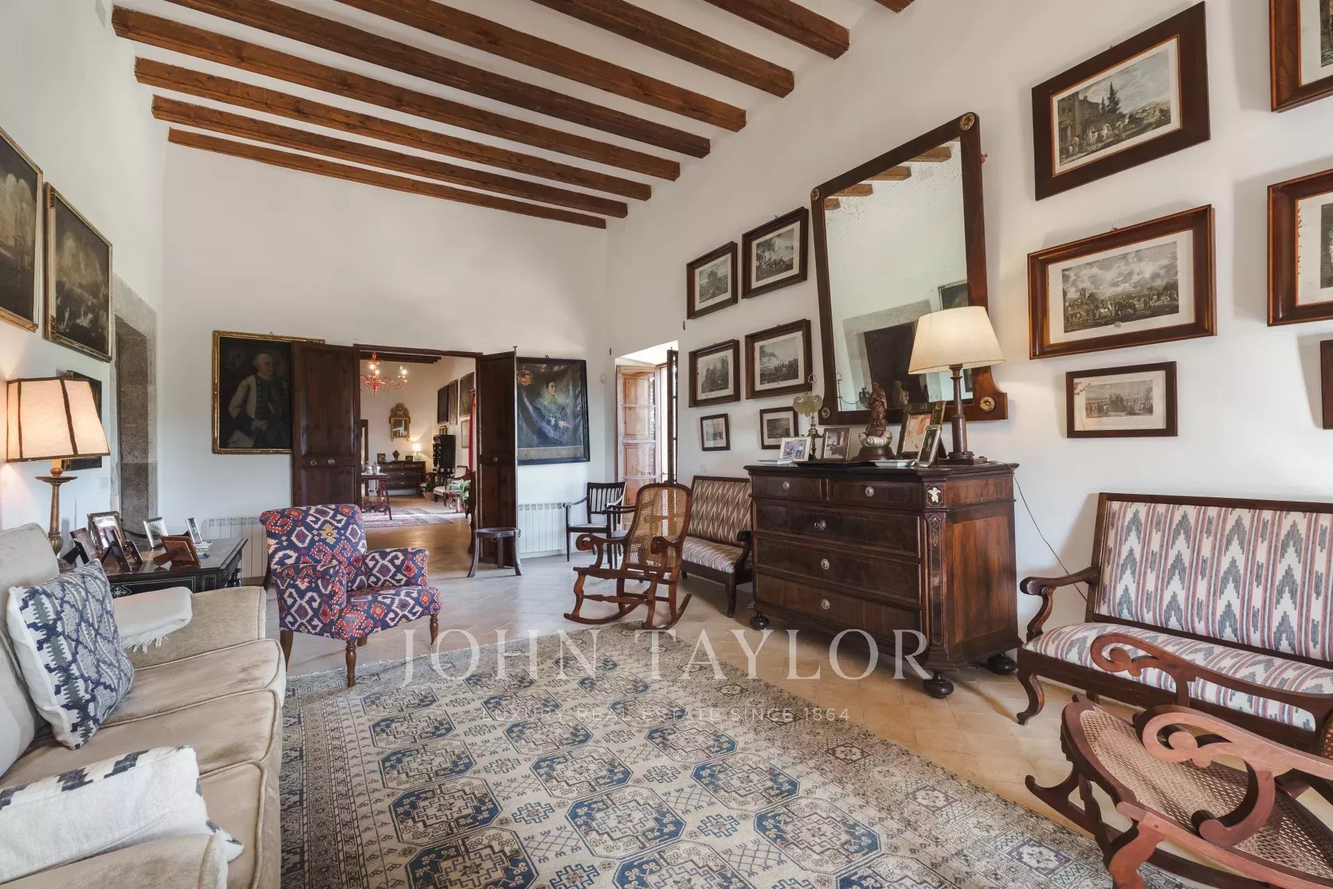 Une finca rustique traditionnelle située dans un cadre naturel privilégié, à quelques minutes de Palma. Cette propriété exclusive dispose de plus d'un million de mètres carrés de terrain, comprenant une forêt de pins, des bois, des caroubiers et des terres agricoles. Avec plus de 1 800 m² construits, cette propriété majorquine offre une intimité et une tranquillité totales dans une enclave entourée de montagnes, idéale pour les amoureux de la nature et de la vie paisible à la campagne. La Possessió, partiellement rénovée, se compose d'une maison principale, d'une maison de gardien "l'amo" et d'un appartement indépendant. En outre, elle dispose de plusieurs terrasses, de jardins, d'une belle cour intérieure, d'une tafona dans son état d'origine, d'une chapelle, d'une citerne et d'écuries, autant d'éléments qui reflètent l'essence authentiquement majorquine. Au total, elle compte 11 chambres, 9 salles de bains et 3 cuisines, avec un grand potentiel d'extension et de rénovation dans les espaces qui restent à réformer. Située à quelques minutes de Palma, cette propriété est une occasion unique pour ceux qui cherchent à acheter une grande propriété authentique à Majorque, avec une situation privilégiée, entourée par la nature et un accès facile à la ville. La Possessió offre un cadre idéal pour profiter de la vie à la campagne avec tout le confort moderne. Si vous voulez une Finca à vendre à Majorque qui combine histoire, charme et intimité, cette Possessió majorquine est le choix parfait. Contactez-nous pour plus d'informations ou pour planifier une visite de cette propriété exclusive à Majorque !