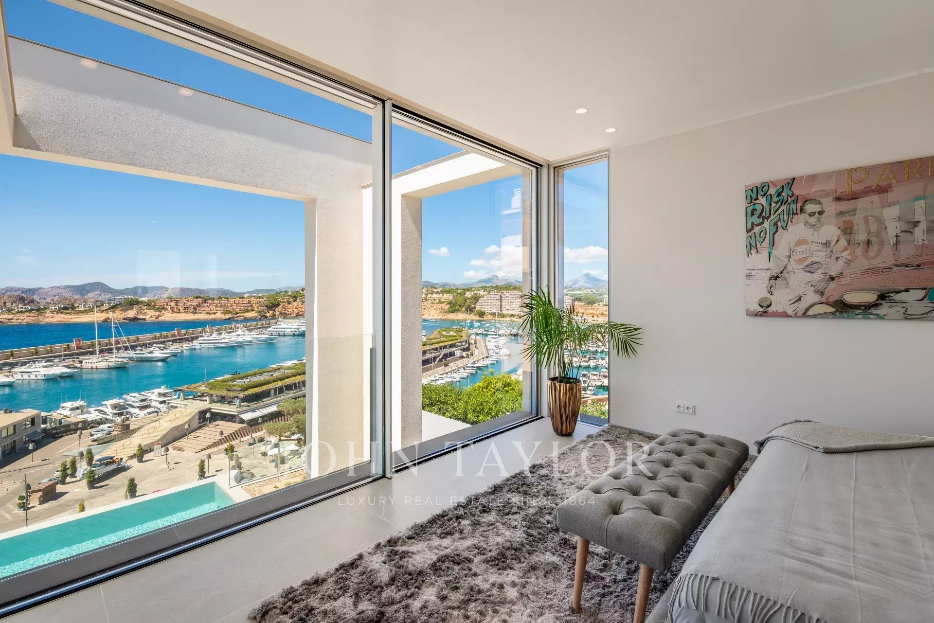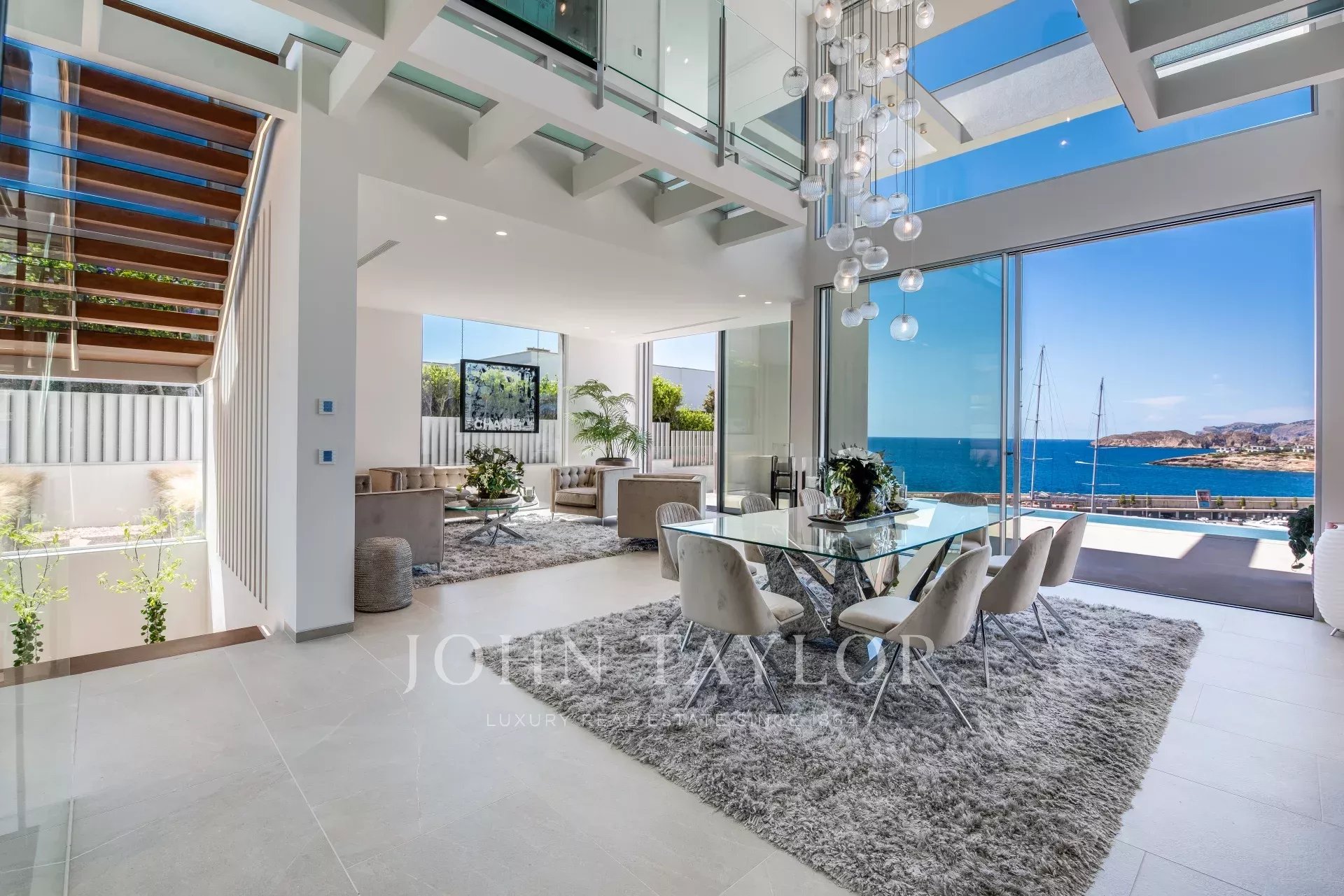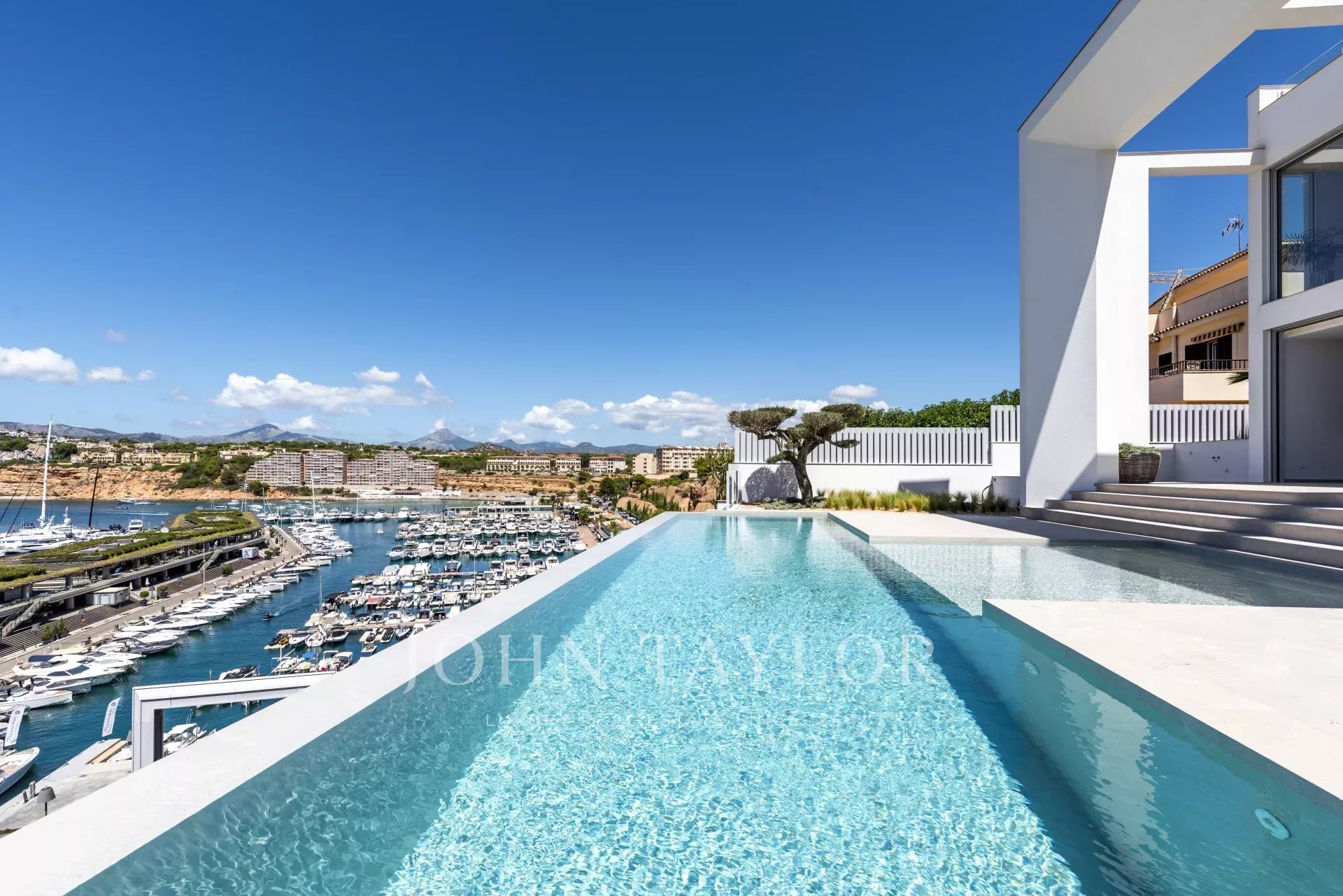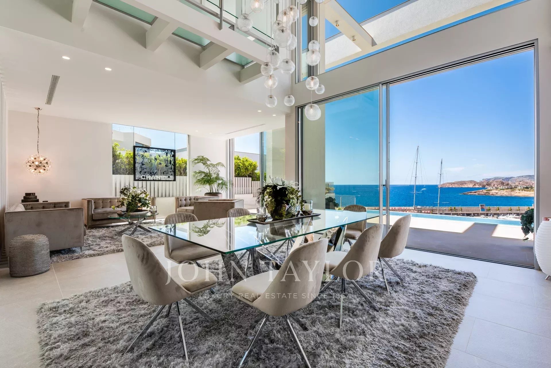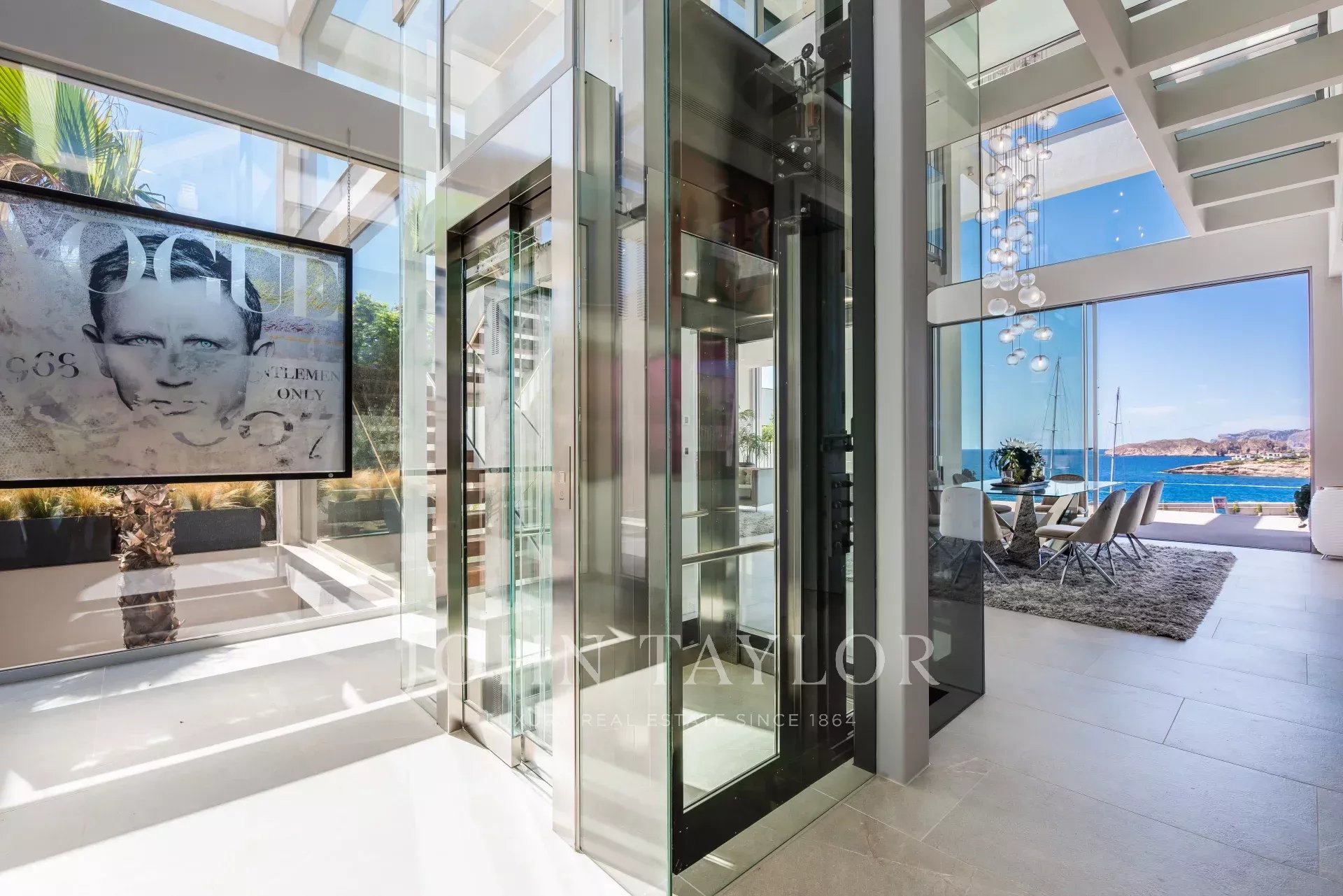 Cette villa ultramoderne est située dans le port de Port Adriano à Santa Ponsa. Le style architectural unique avec d'immenses façades vitrées vous donne de la liberté. Cette œuvre d'art architecturale est répartie sur 3 niveaux reliés par un ascenseur en verre, ainsi que des couloirs en verre, etc. Cette architecture unique a pour but d'apporter toute la lumière méditerranéenne dans cette villa. Cette villa dispose de 4 chambres doubles, chacune avec une salle de bain en-suite, un salon baigné de lumière, une cuisine ouverte avec des équipements de pointe, une salle de fitness, un home cinéma, une salle de vin, un garage et des places de parking pour 2 voitures ne sont que quelques-unes des caractéristiques de cette villa unique.