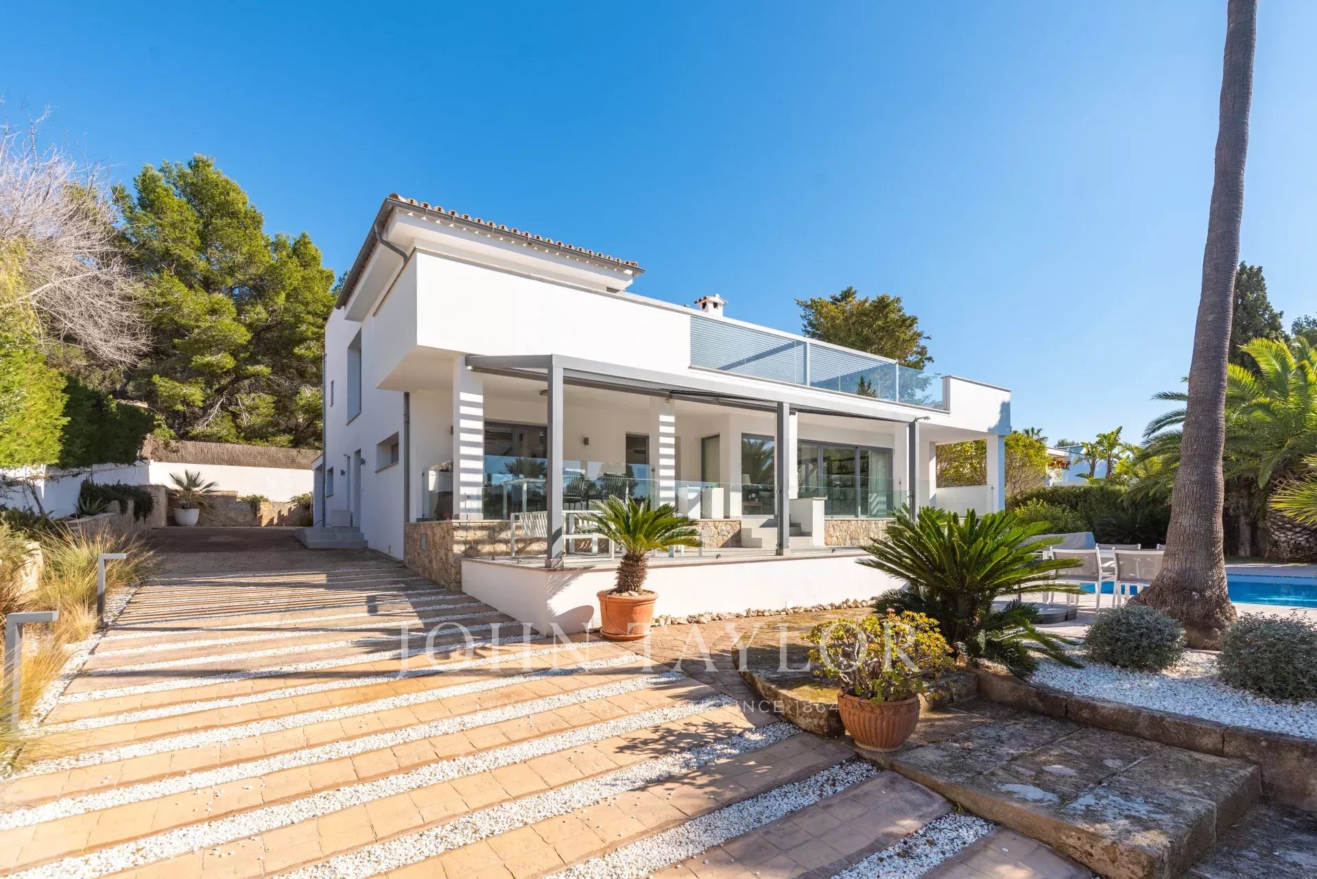 Nova Santa Ponsa, un véritable trésor caché dans le sud-ouest de Majorque. Cette zone privilégiée est un havre de paix pour ceux qui recherchent un style de vie élégant dans un environnement naturel. À Nova Santa Ponsa, on est immédiatement séduit par le cadre idyllique. Les magnifiques villas haut de gamme s'élèvent majestueusement, offrant des vues panoramiques sur la mer et la végétation luxuriante environnante. Le cœur de Nova Santa Ponsa bat dans son impressionnant port de plaisance, Port Adriano. Conçu par le célèbre architecte Philippe Starck, ce port de classe mondiale accueille des yachts de luxe exclusifs. Les plages cristallines vous invitent à vous détendre, à pratiquer des sports nautiques ou à déguster un cocktail dans l'un des élégants bars de plage. Les amateurs de golf se sentiront au paradis à Nova Santa Ponsa, qui compte certains des terrains de golf les plus prestigieux de l'île. Nova Santa Ponsa offre un large éventail de services de qualité tels que des restaurants gastronomiques, des boutiques exclusives, des spas de luxe et d'excellentes installations sportives. Elle est également stratégiquement située à proximité d'autres zones d'intérêt, comme la ville historique de Palma, où vous pourrez profiter d'une variété d'activités culturelles, de shopping et de divertissement.