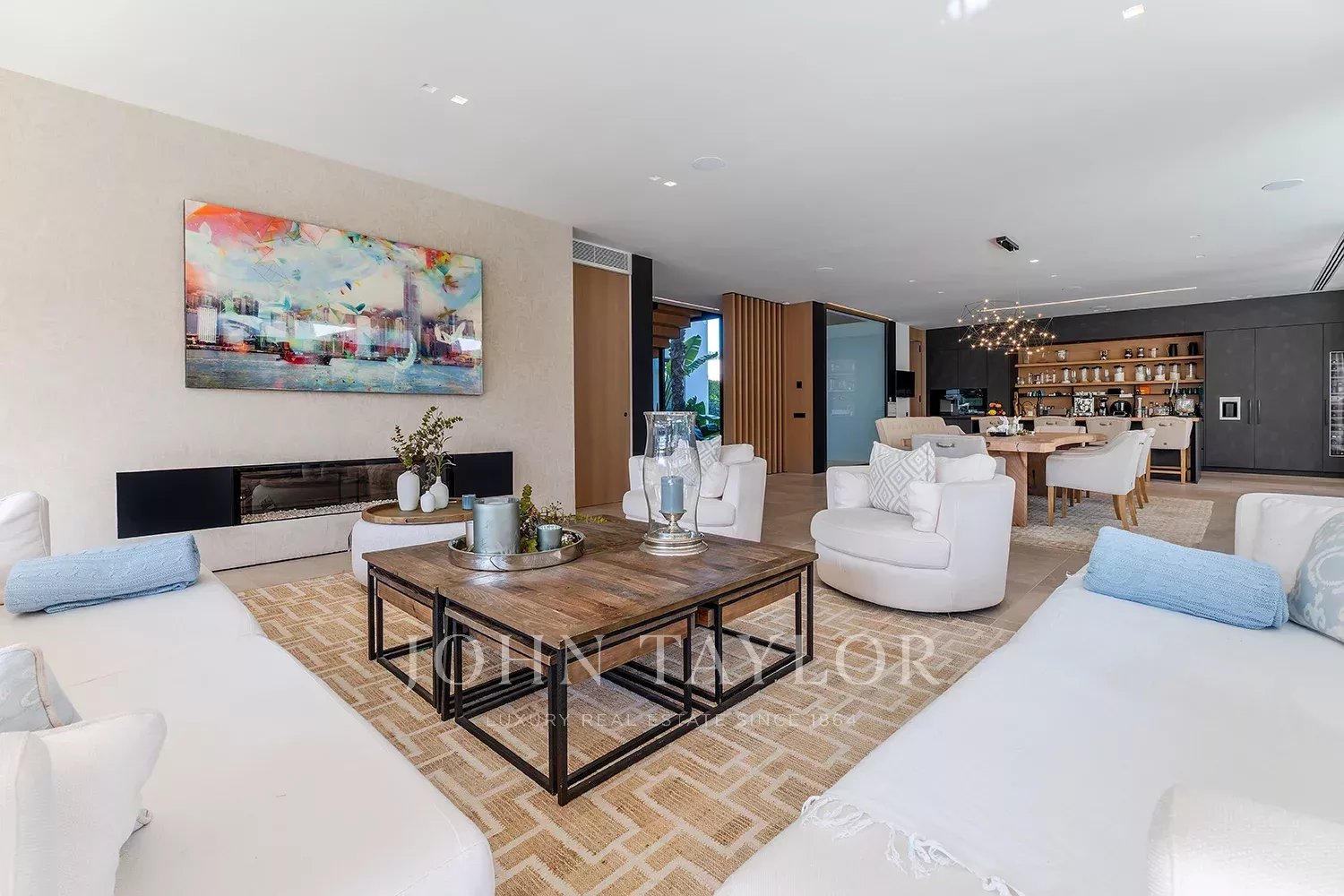Découvrez cette majestueuse villa de luxe, située en première ligne du parcours de golf Nova Santa Ponsa. Cette superbe propriété a tout pour plaire : de vastes espaces de vie et de divertissement à l'intimité et aux vues sereines sur les terrains de golf impeccablement entretenus. Avec une construction de haute qualité, des plafonds hauts, des salles de bains en marbre et des sols en pierre naturelle, cette villa offre un style de vie luxueux et relaxant. Avec ses six chambres généreuses, ses multiples salons et espaces de divertissement, ses piscines intérieure et extérieure, son centre de bien-être complet, sa salle de cinéma, sa cave à vin et bien plus encore, cette propriété redéfinit le concept d'exclusivité. Située dans un quartier résidentiel exclusif et à quelques minutes seulement des marinas de Port Adriano et de Puerto Portals, "Mila" est une oasis de paix parfaitement connectée.