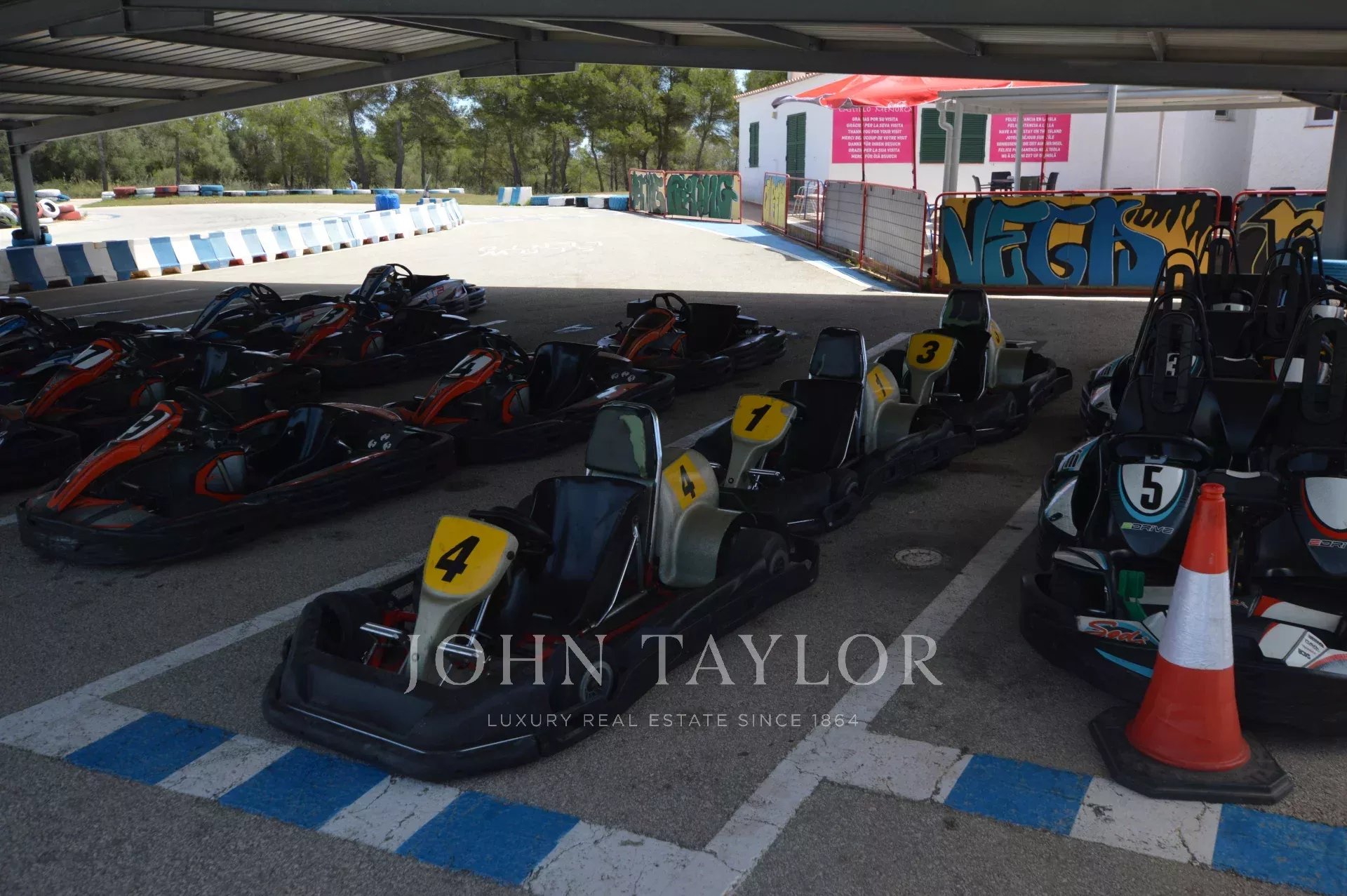 Ce centre de divertissement se compose d'une maison, deux magasins, un bar-restaurant, un circuit de karting, des piscines, un mini-golf, un jardin avec des jeux pour enfants à l'extérieur et une salle d'exposition intérieure.