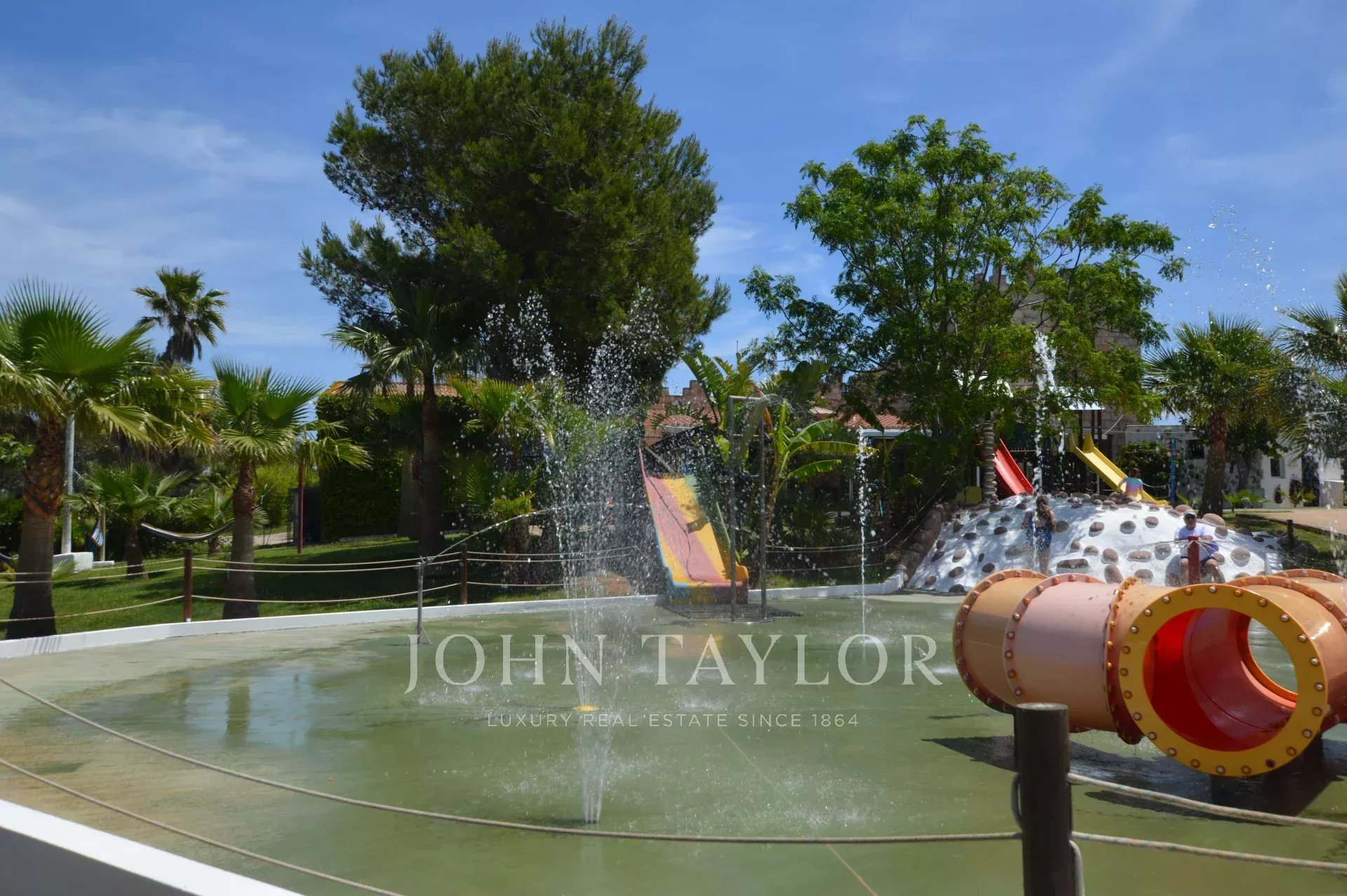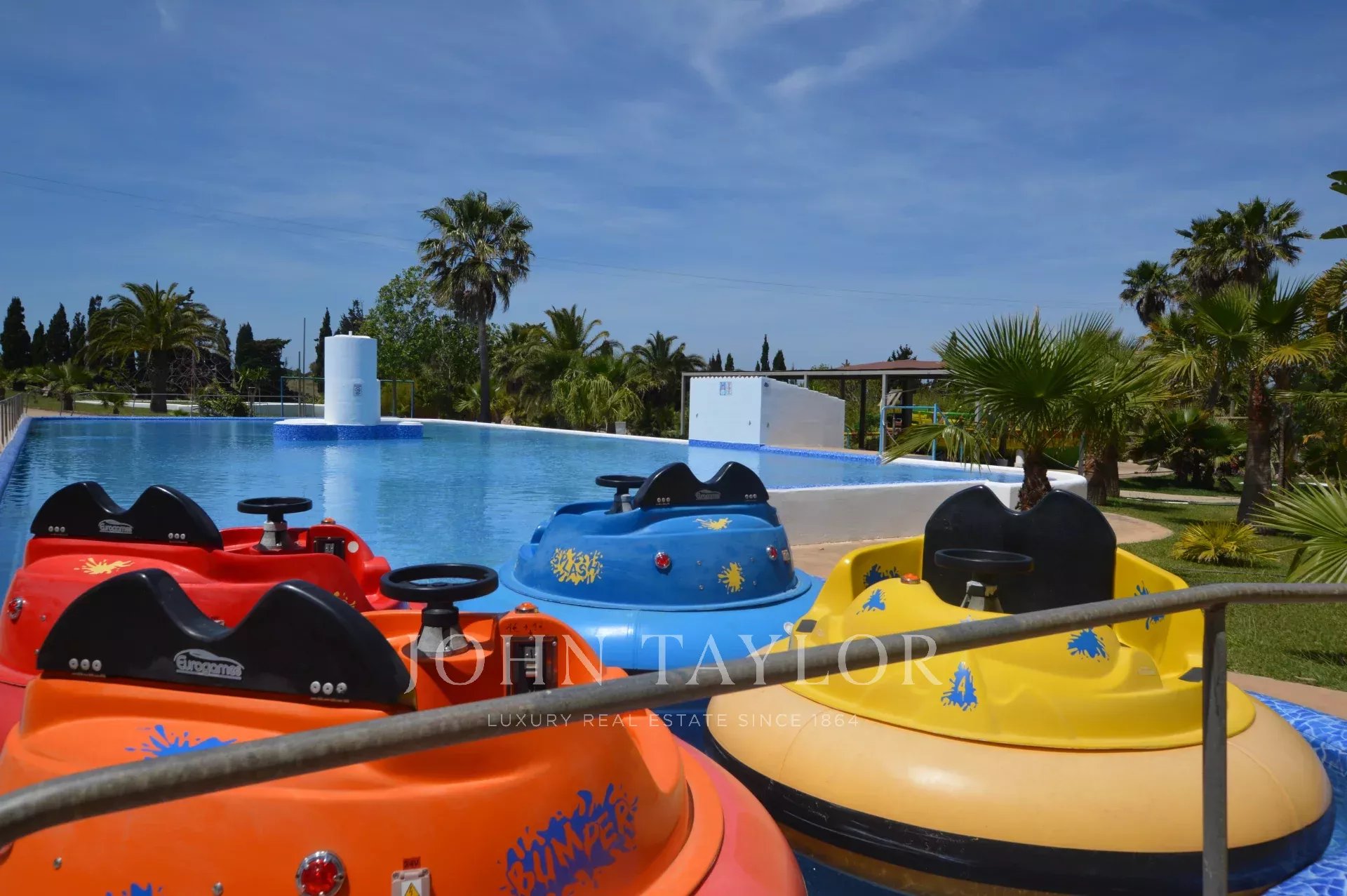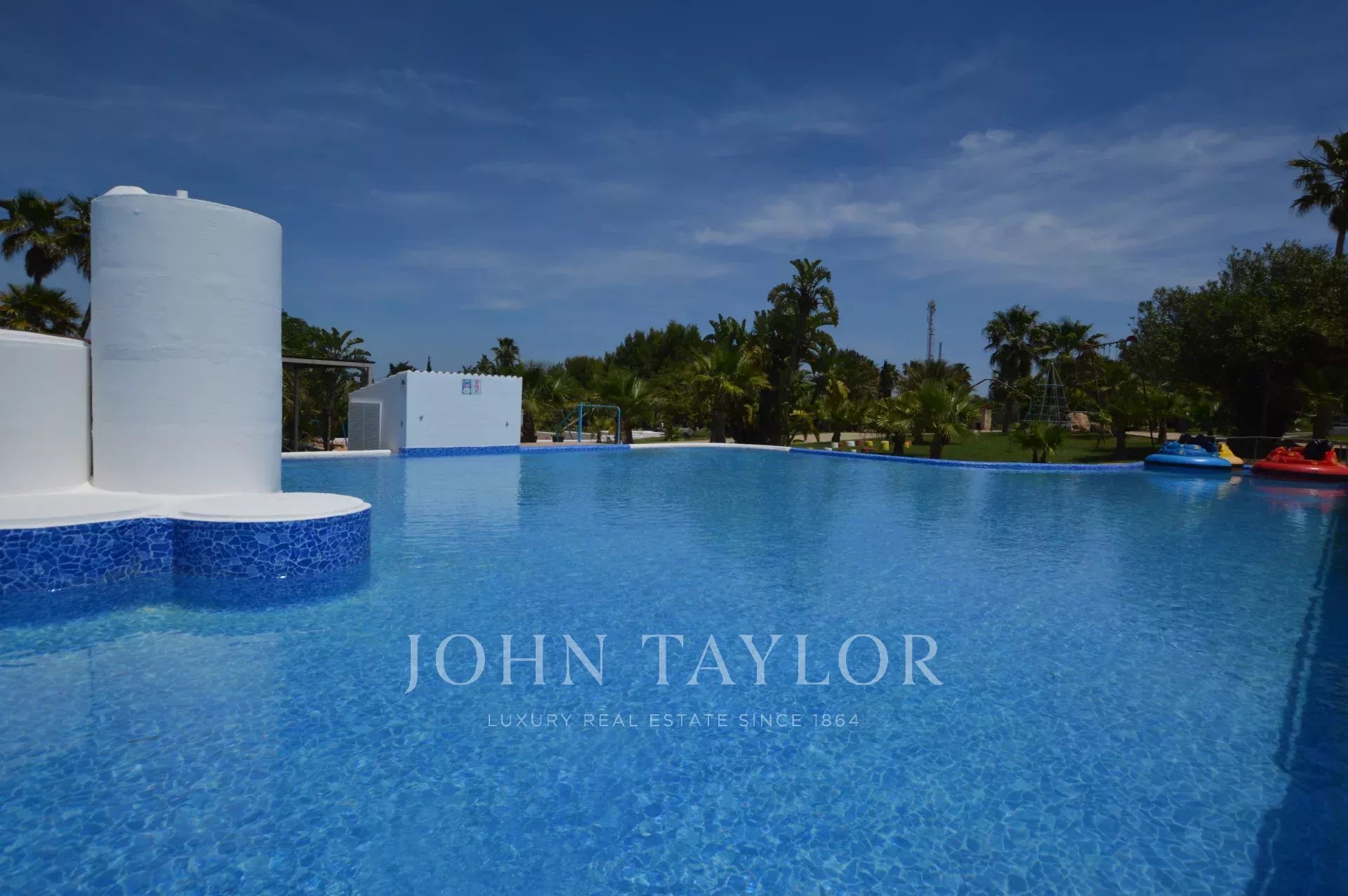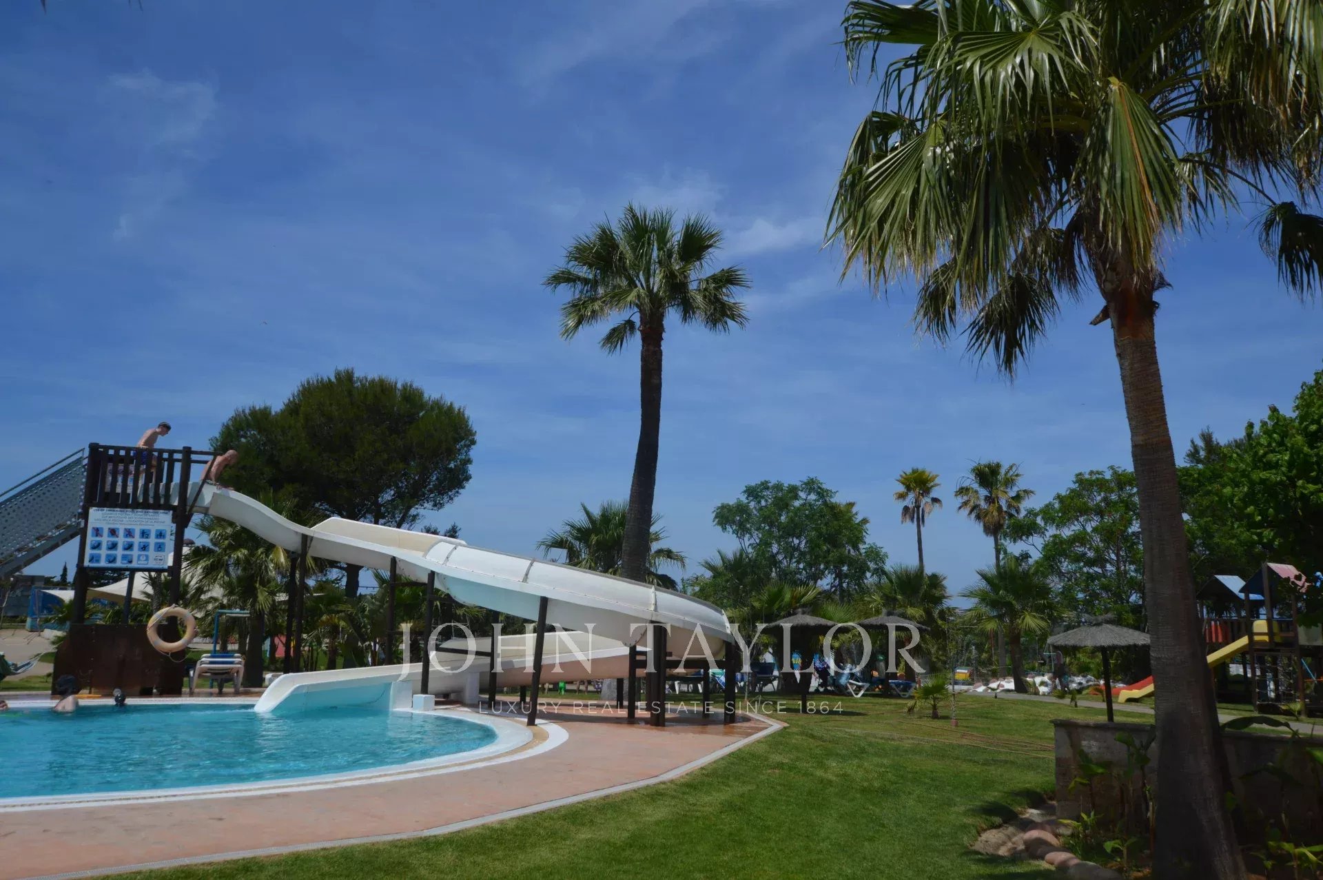 La piscine sportive, d'une profondeur de 1,20 m à 1,80 m, idéale pour les adultes qui souhaitent s'amuser au soleil, comprend un toboggan aquatique qui ajoute du piquant à l'expérience aquatique.